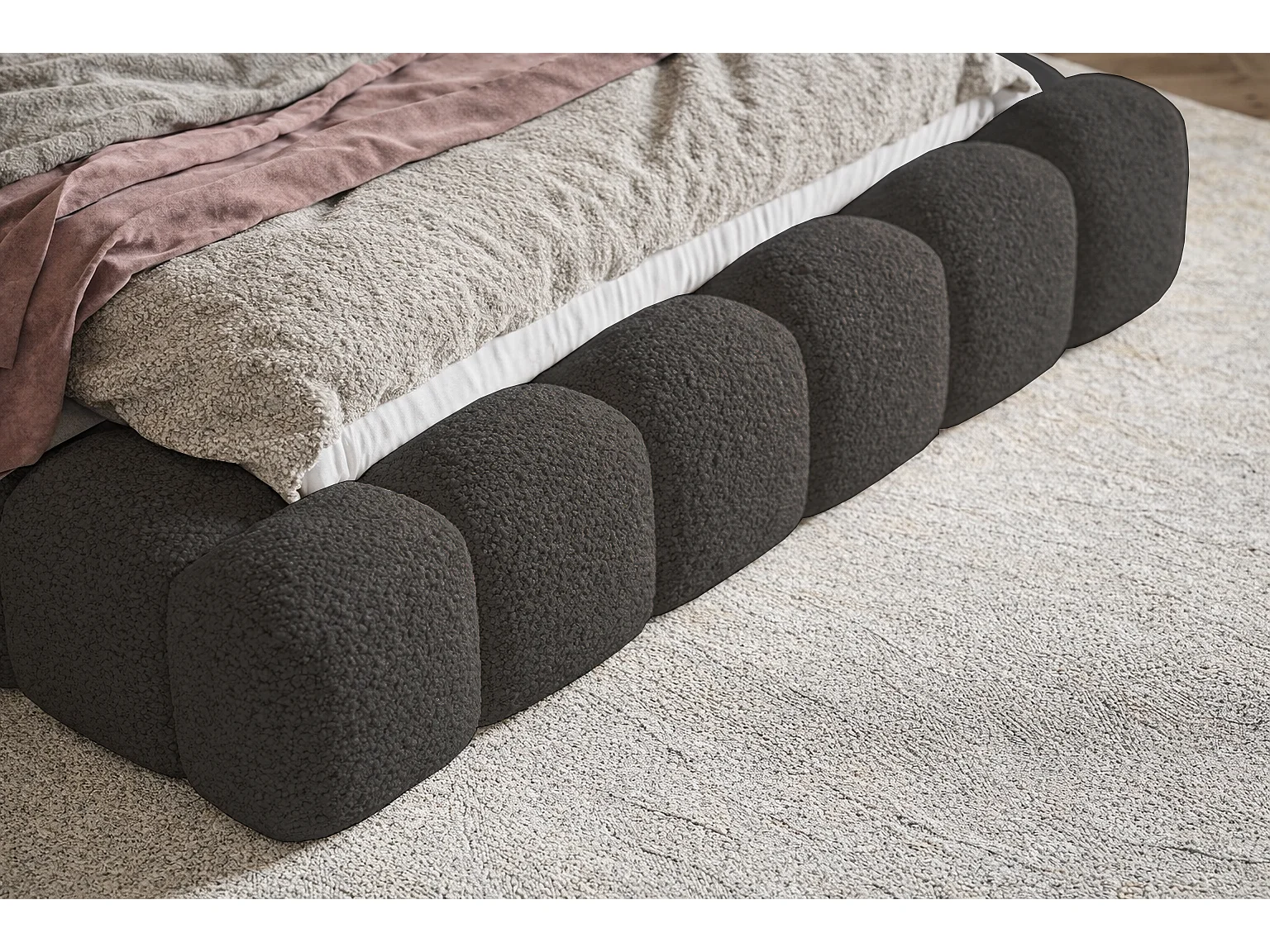 Łóżko tapicerowane 160x200 Madeno - gruba pianka, pojemnik, stelaż - tkanina boucle, czarny (Catch Me 27)