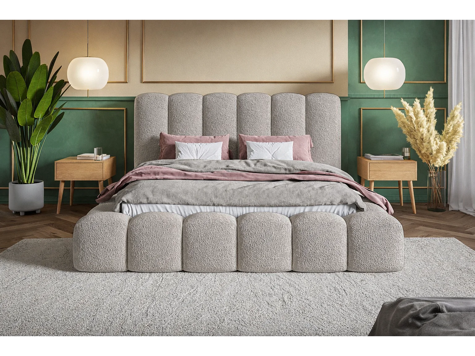 Łóżko tapicerowane 160x200 Madeno - gruba pianka, pojemnik, stelaż - tkanina boucle, jasny szary (Catch Me 24)