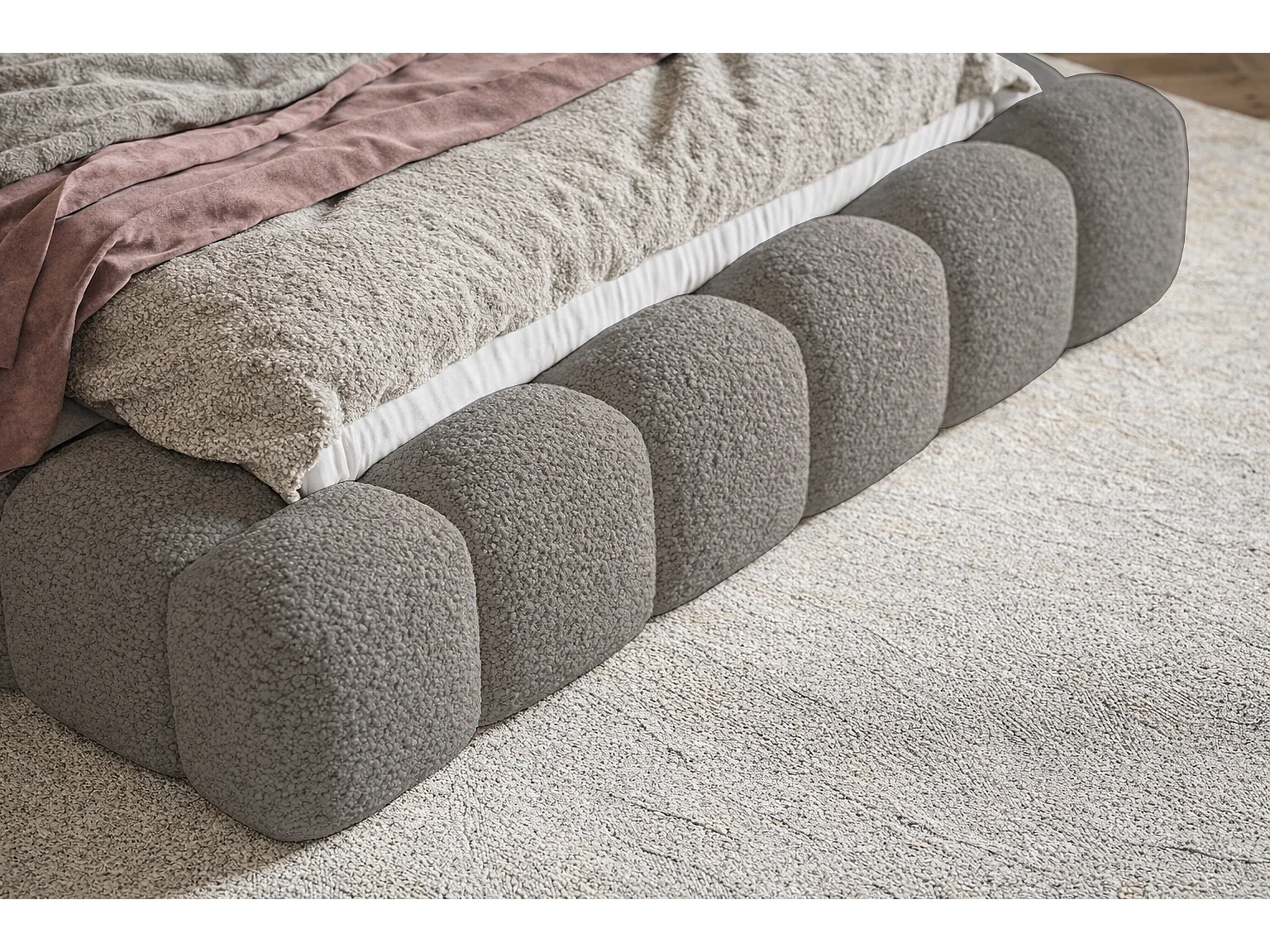Łóżko tapicerowane 160x200 Madeno - gruba pianka, pojemnik, stelaż metalowy - tkanina boucle, szary (Catch Me 25)