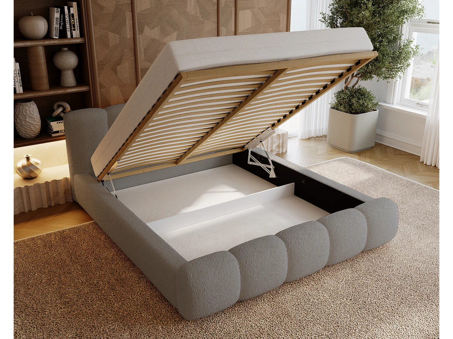 Łóżko tapicerowane 180x200 cm Ravello - łóżko z pojemnikiem, tkanina boucle jasny szary (Lambi 11)