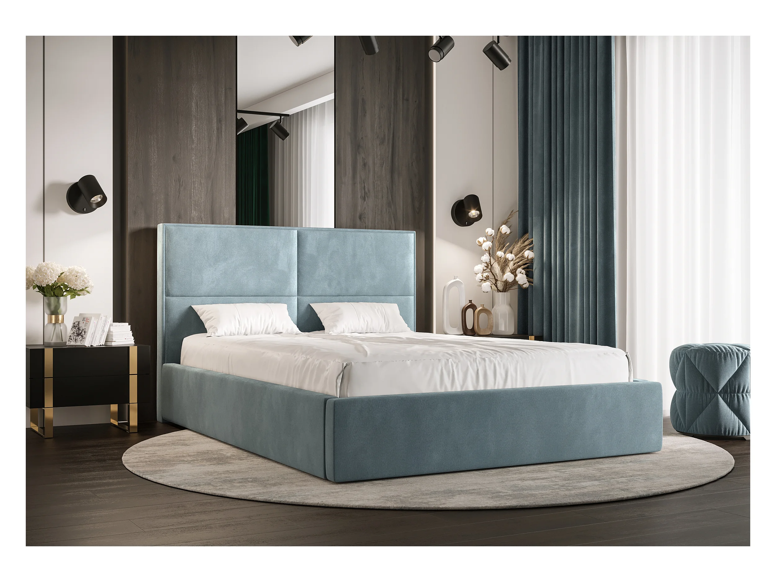 BEDANTE Łóżko kontynentalne KIDA 160x200 Curio 74 Niebieski Łóżko małżeńskie Łóżko hotelowe Sypialnia Materac Topper Schowek
