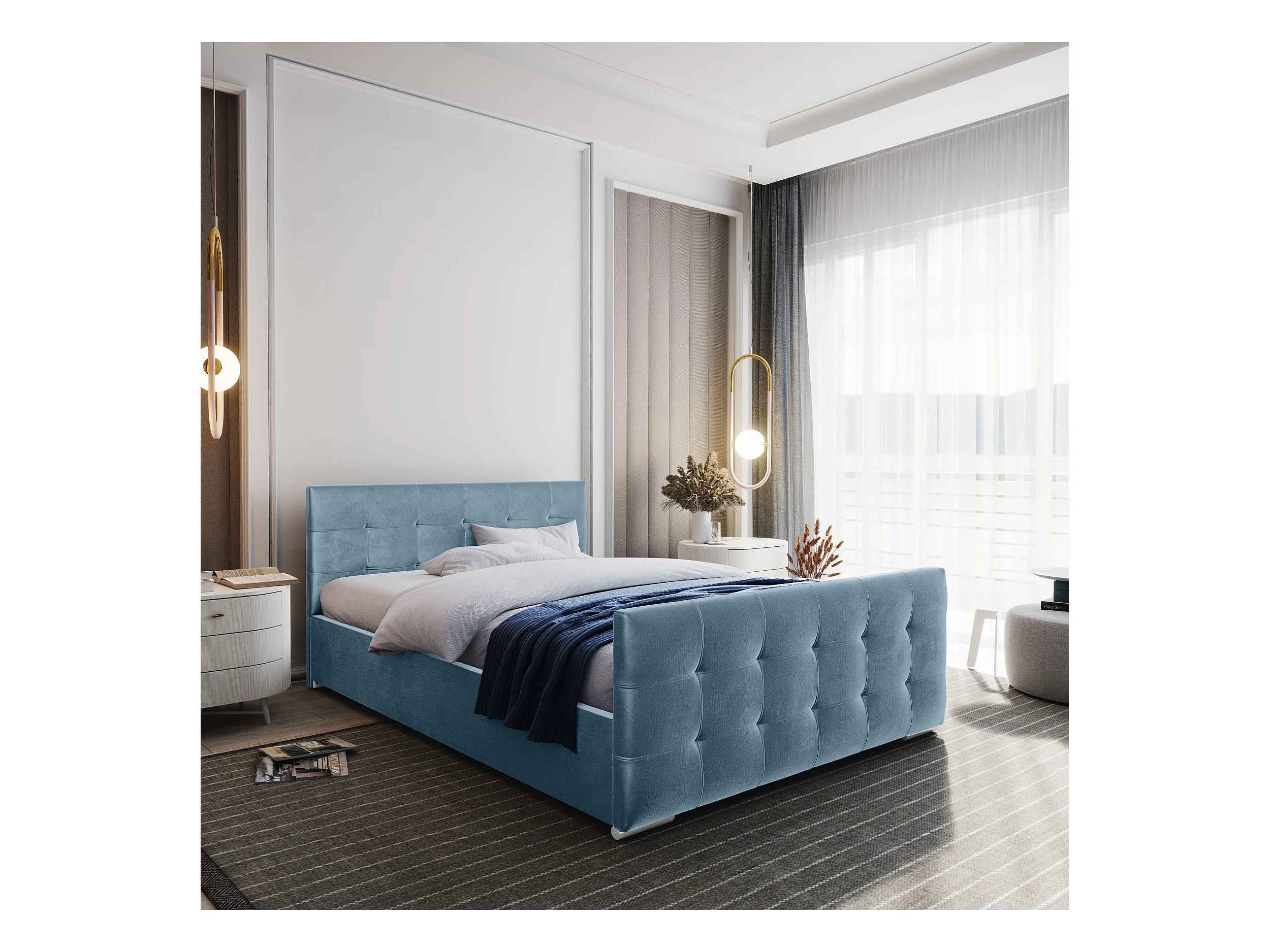 BEDANTE Łóżko kontynentalne KIDA 160x200 Curio 74 Niebieski Łóżko małżeńskie Łóżko hotelowe Sypialnia Materac Topper Schowek