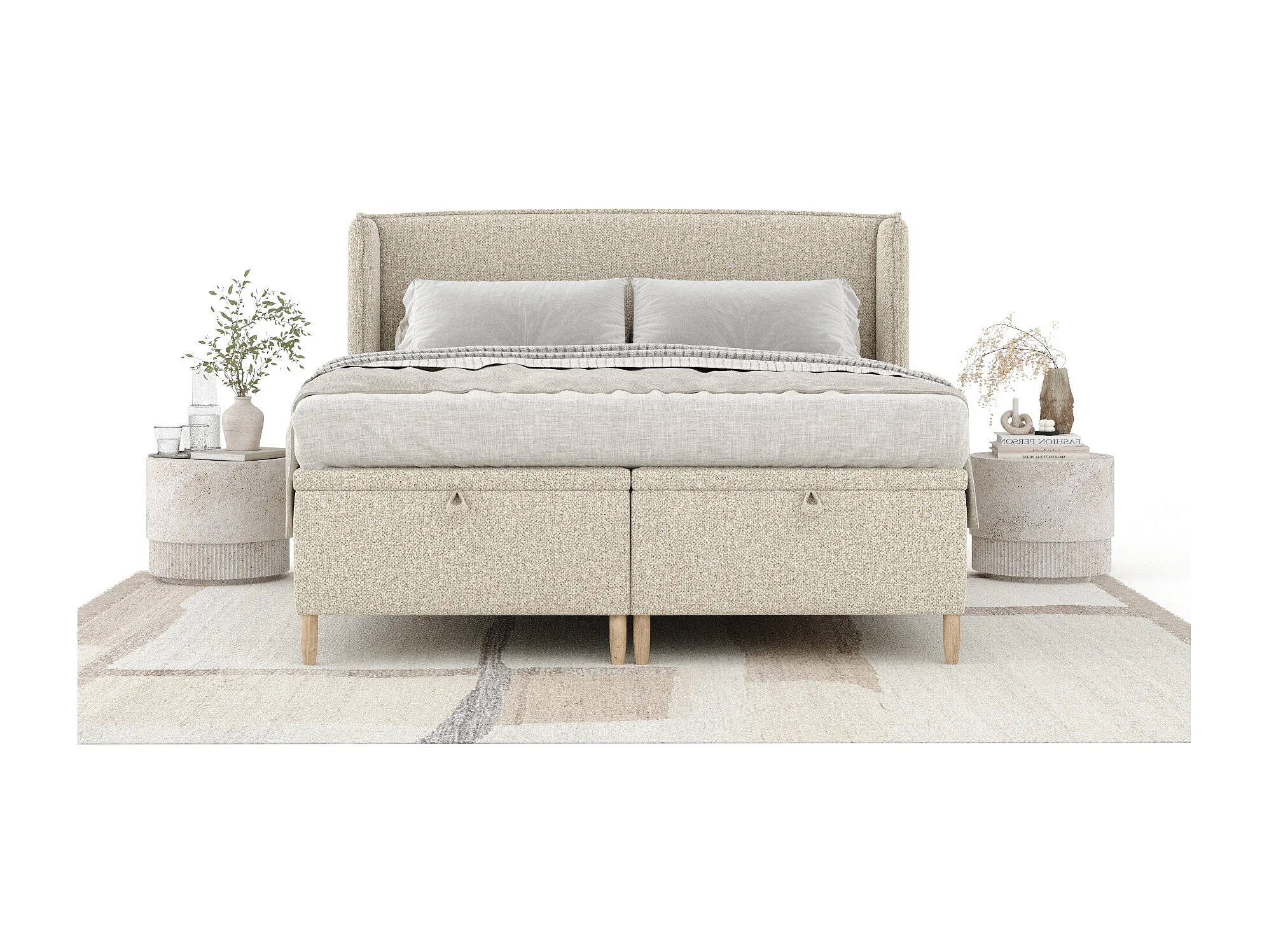 Łóżko tapicerowane w tkaninie boucle Ritual - 140 x 200 cm - beżowy