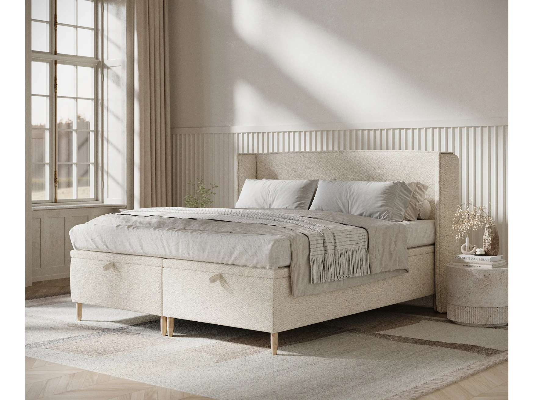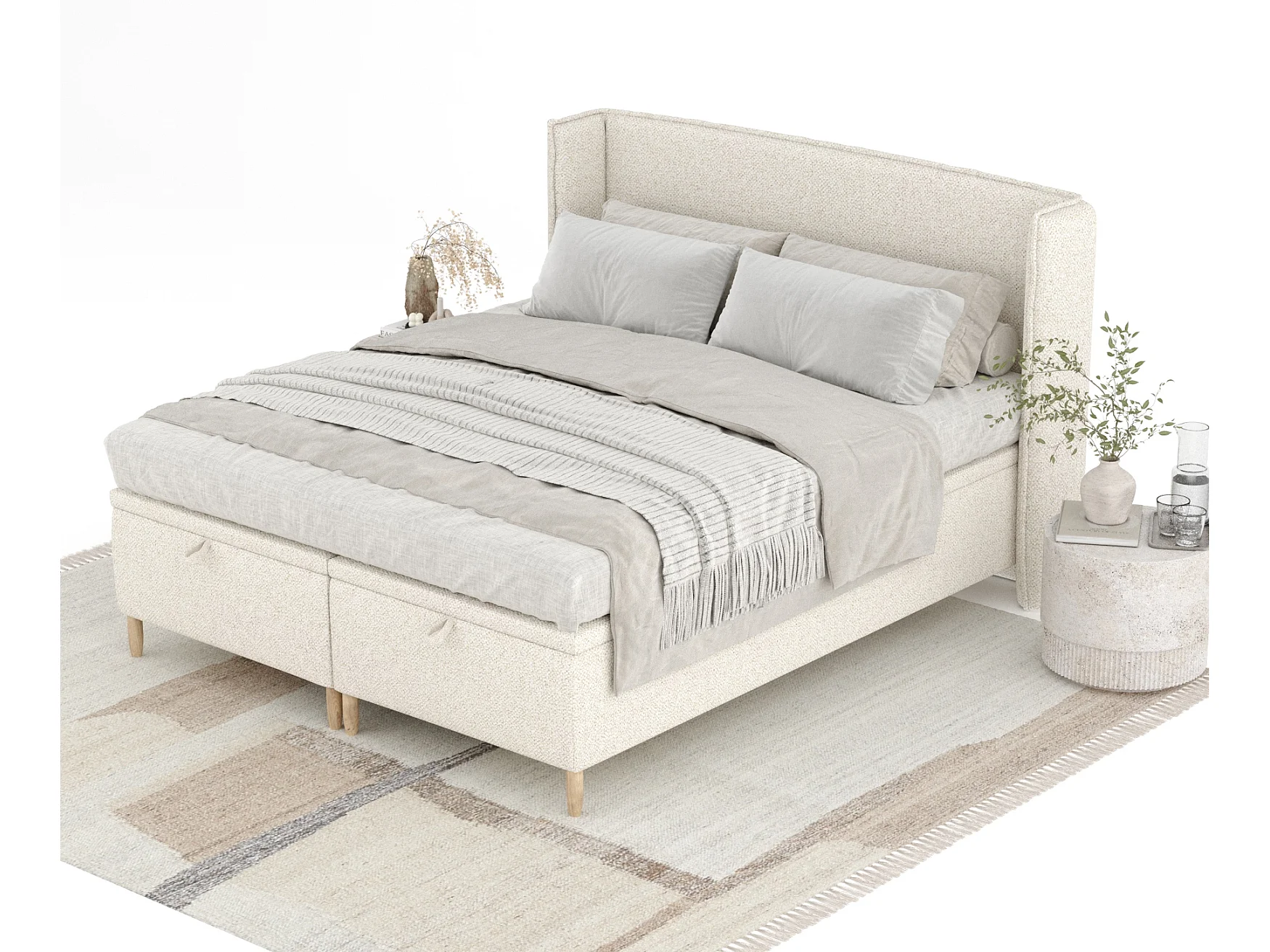 Łóżko tapicerowane w tkaninie boucle Ritual - 140 x 200 cm - kremowy