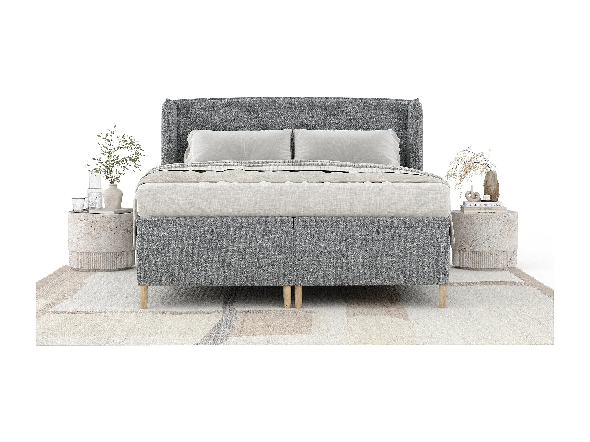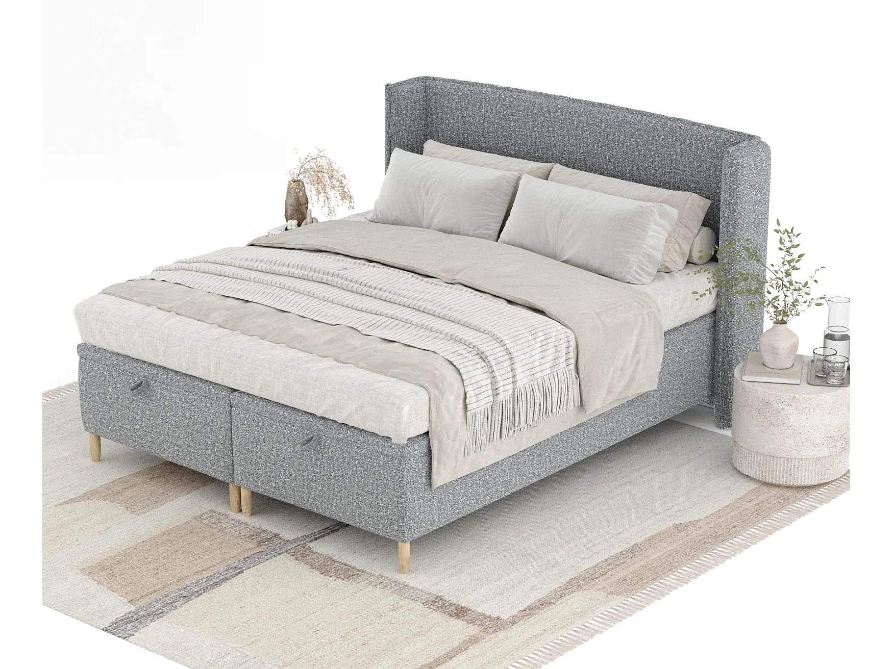 Łóżko tapicerowane w tkaninie boucle Ritual - 140 x 200 cm - szary