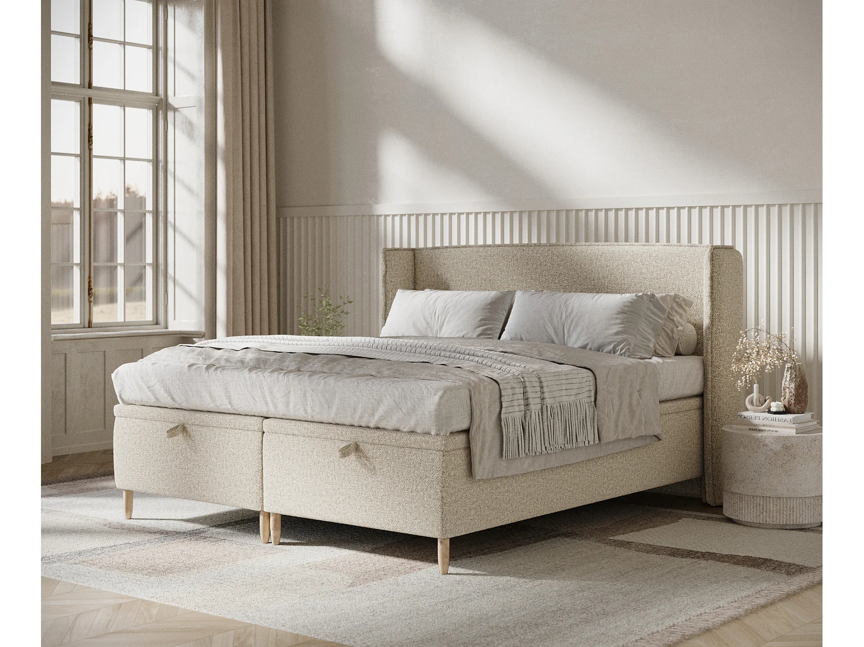Łóżko tapicerowane w tkaninie boucle Ritual - 160 x 200 cm - beżowy