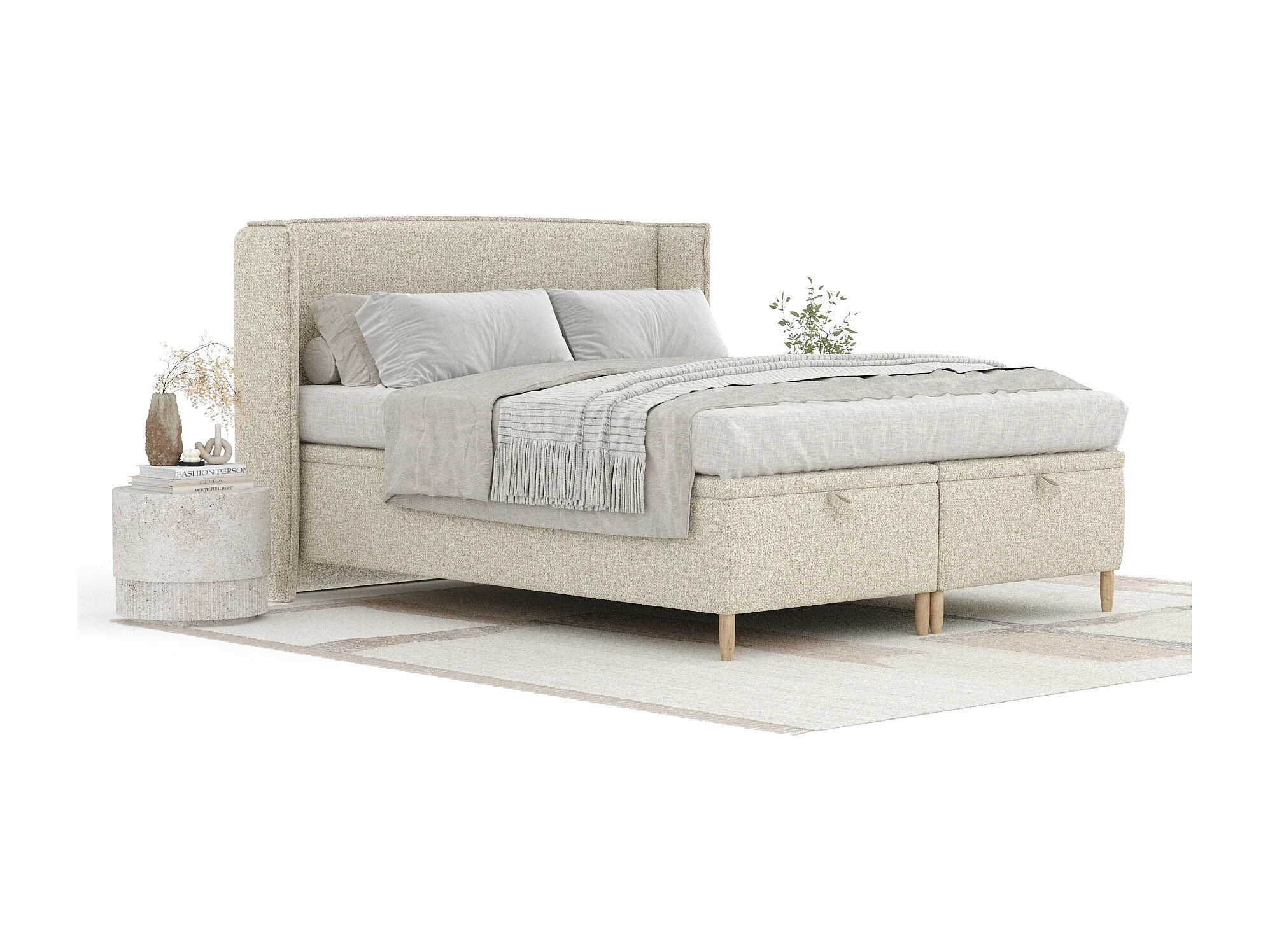 Łóżko tapicerowane w tkaninie boucle Ritual - 180 x 200 cm - beżowy