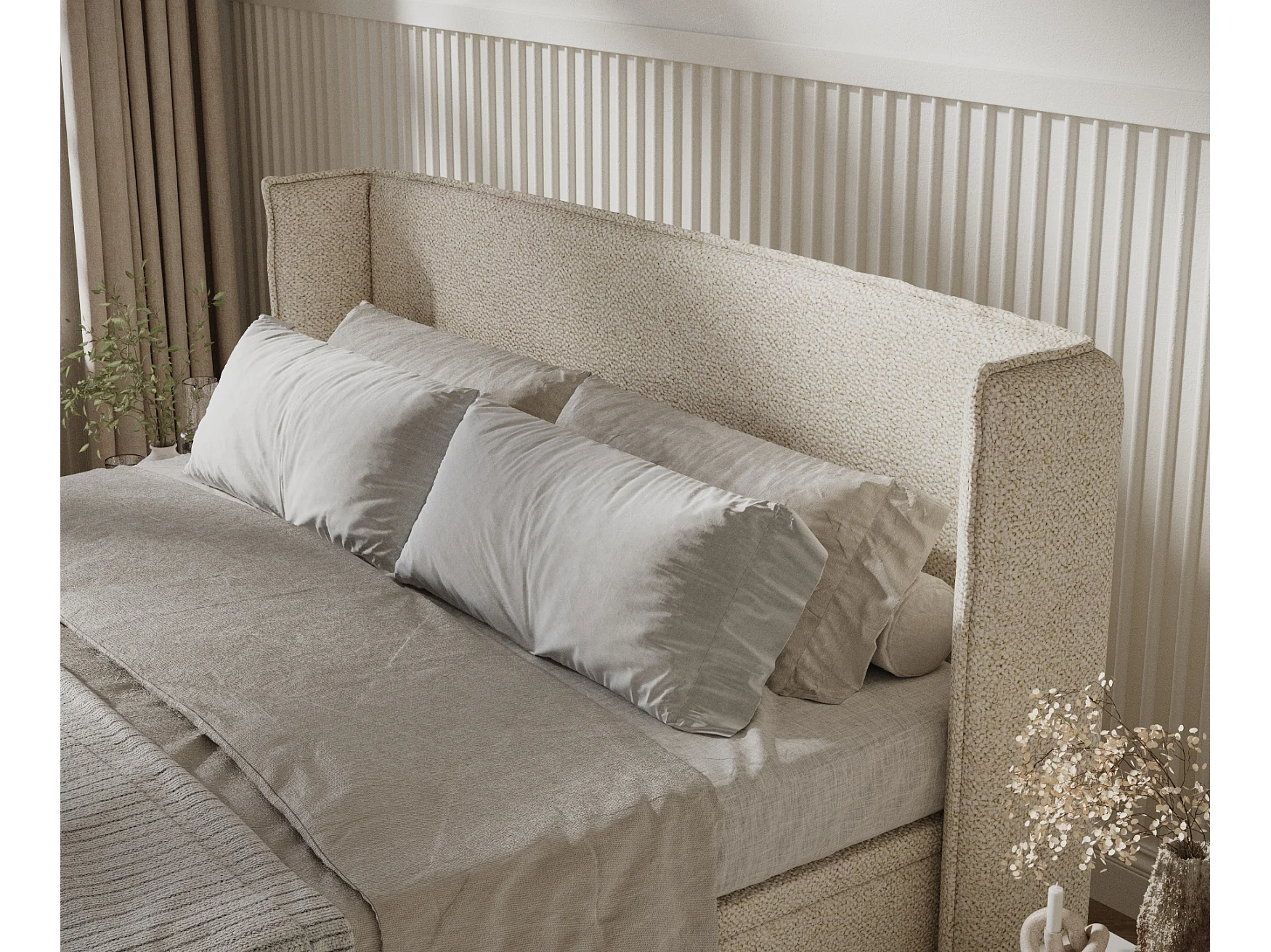 Łóżko tapicerowane w tkaninie boucle Ritual - 180 x 200 cm - kremowy