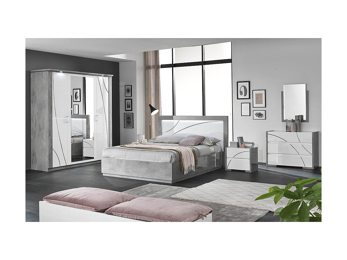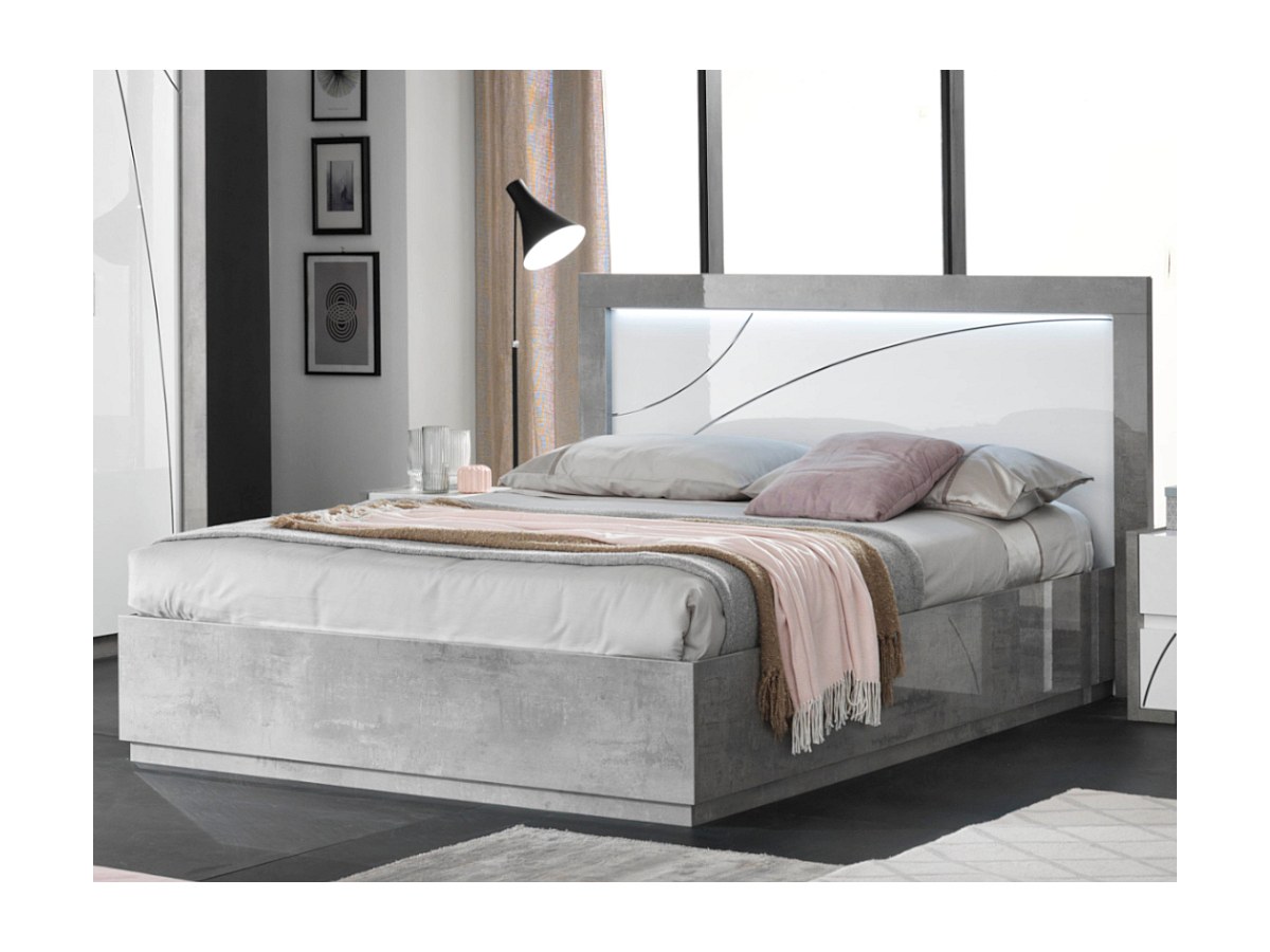 Łóżko URAM – 160 × 200 cm – oświetlenie LED – kolor: biały lub szary lakierowany