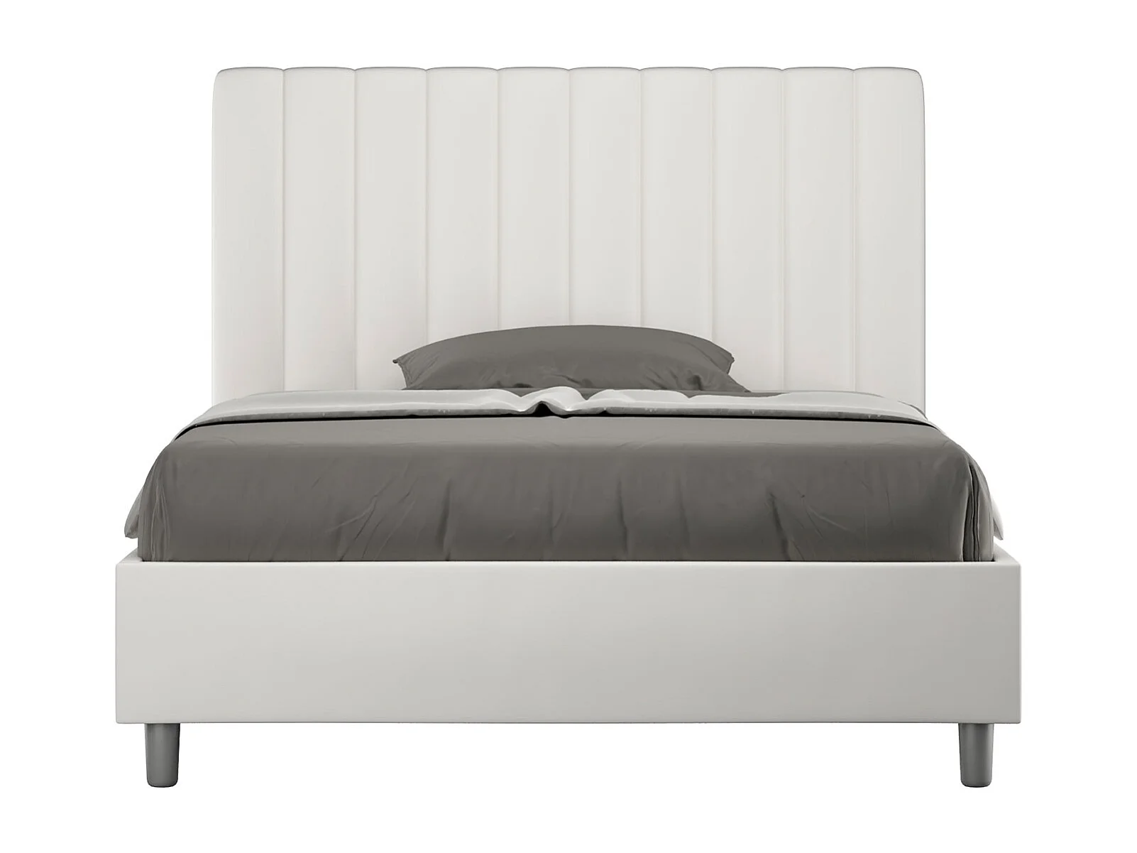 Łóżko wyposażone w stelaż z listwami tapicerowane 120x210 sztucznej skóry biały Agueda