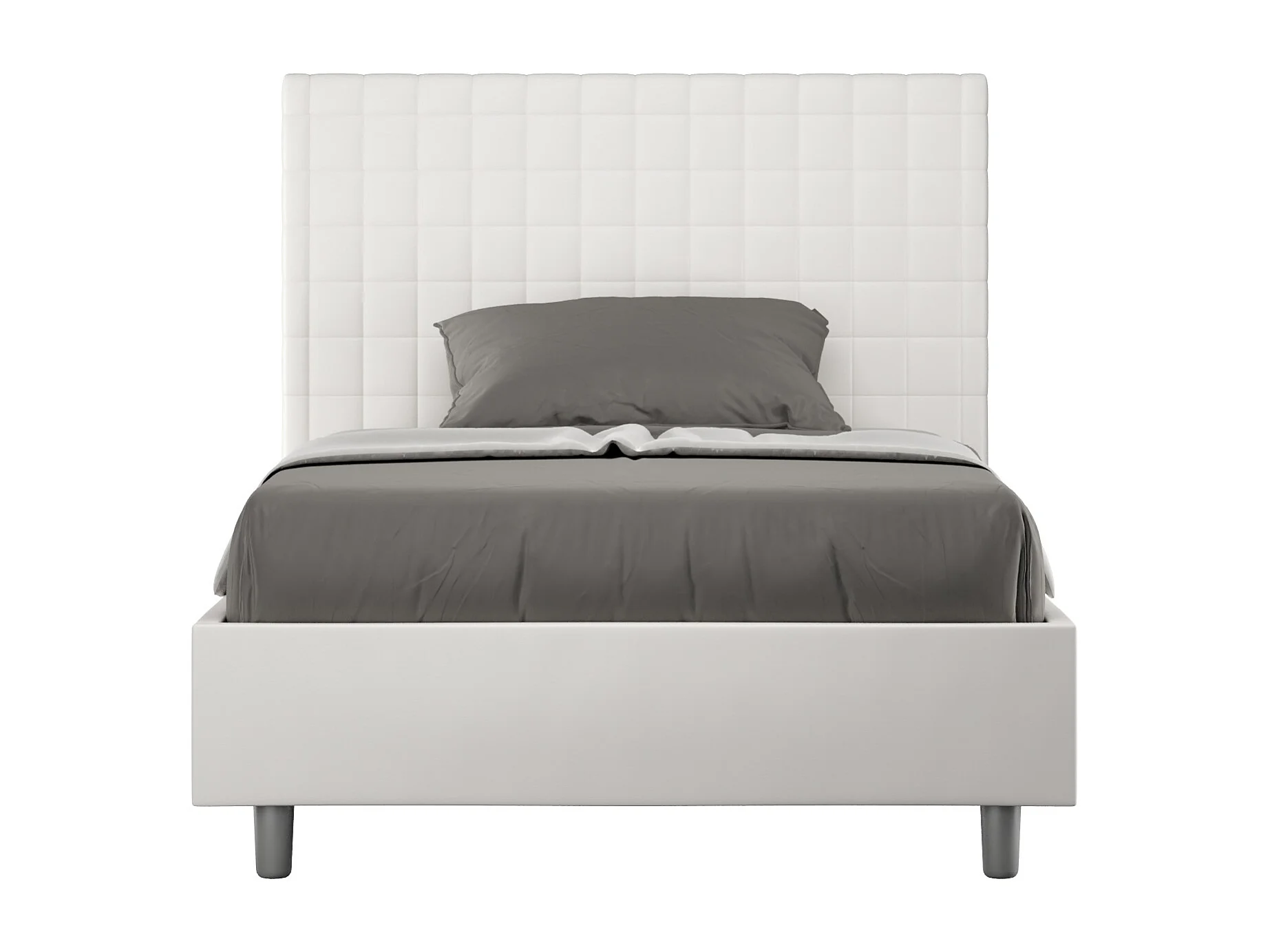 Łóżko wyposażone w stelaż z listwami z pojemnikiem tapicerowane 140x190 sztucznej skóry biały Sunny