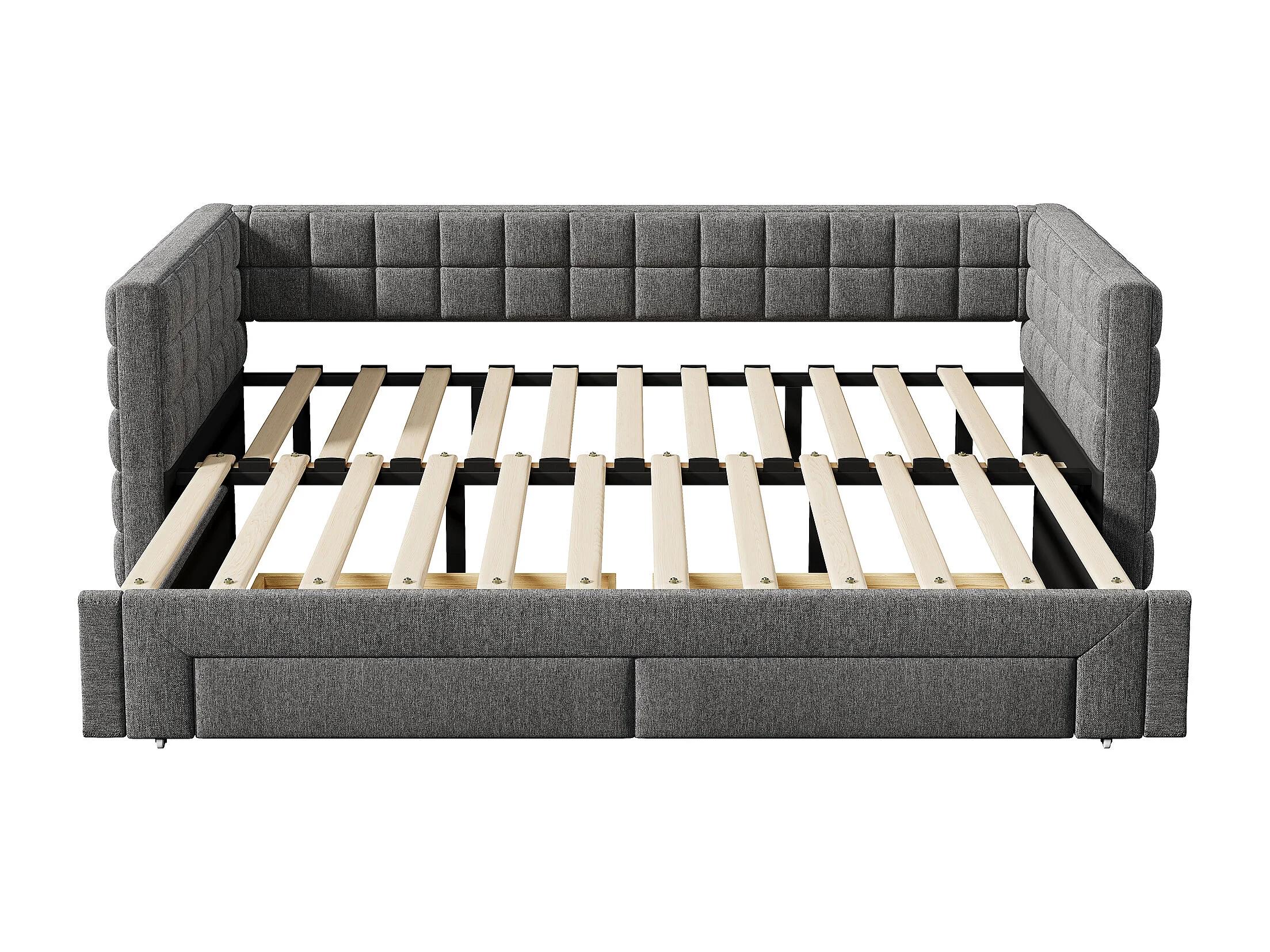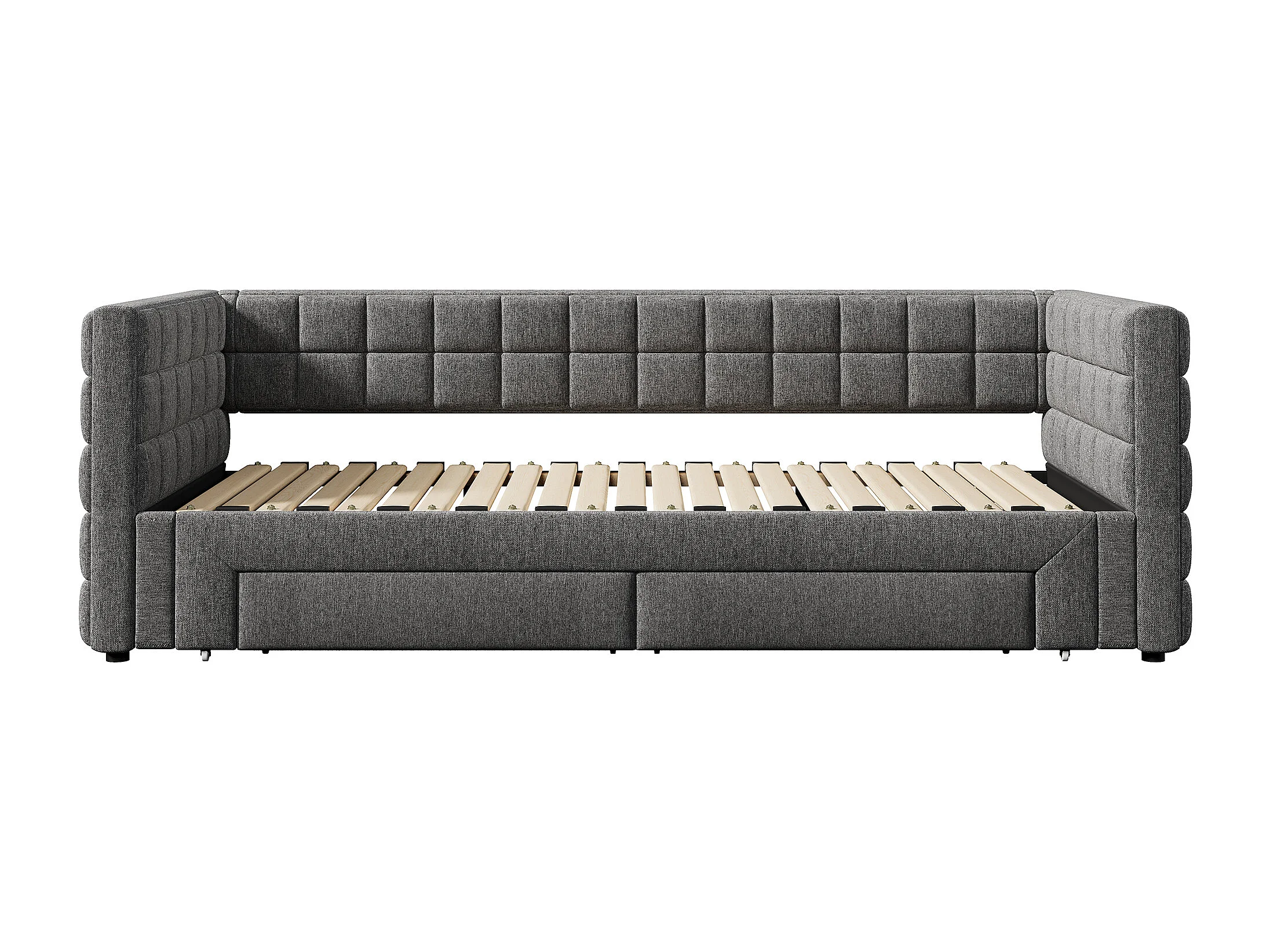 Łóżko banquette 90x200cm z drewna - z łóżkiem wysuwanym 90x190cm i 2 szufladami - z gniazdem USB - Szary