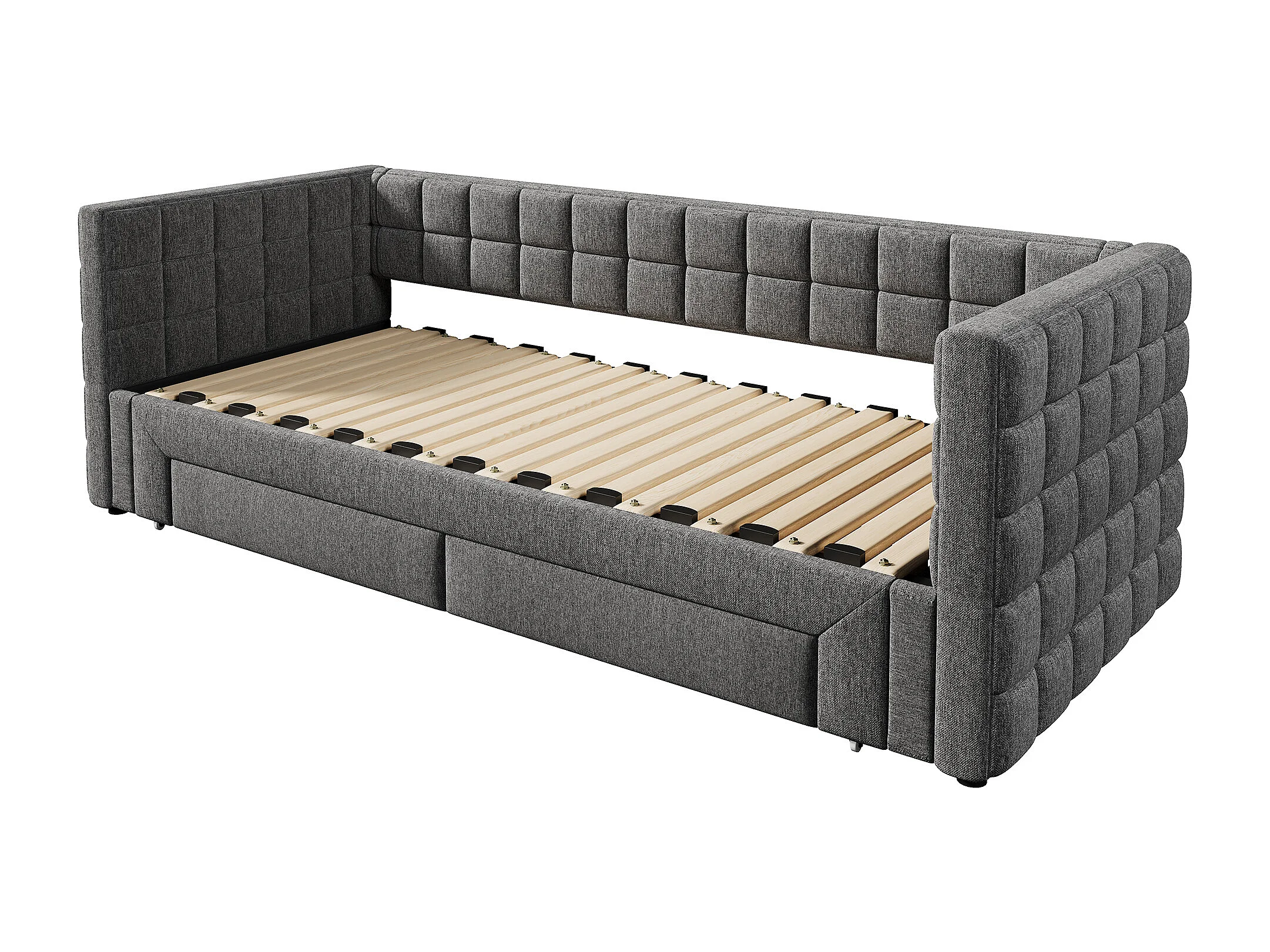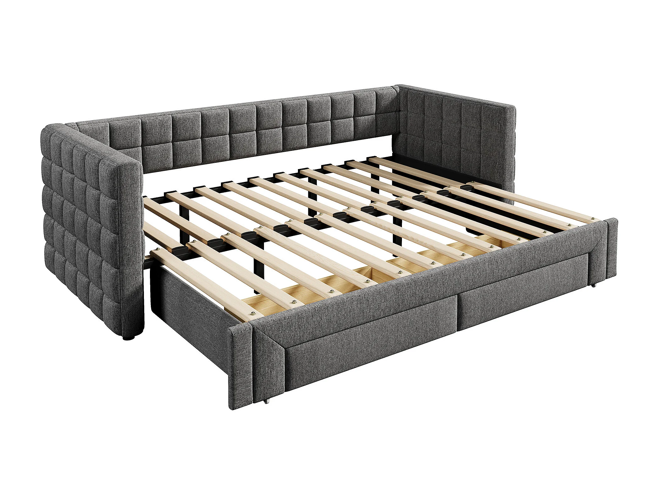 Łóżko dzienne 90x200 cm - Łóżko wysuwane z listwowym stelażem - szary aksamit - bez materaca