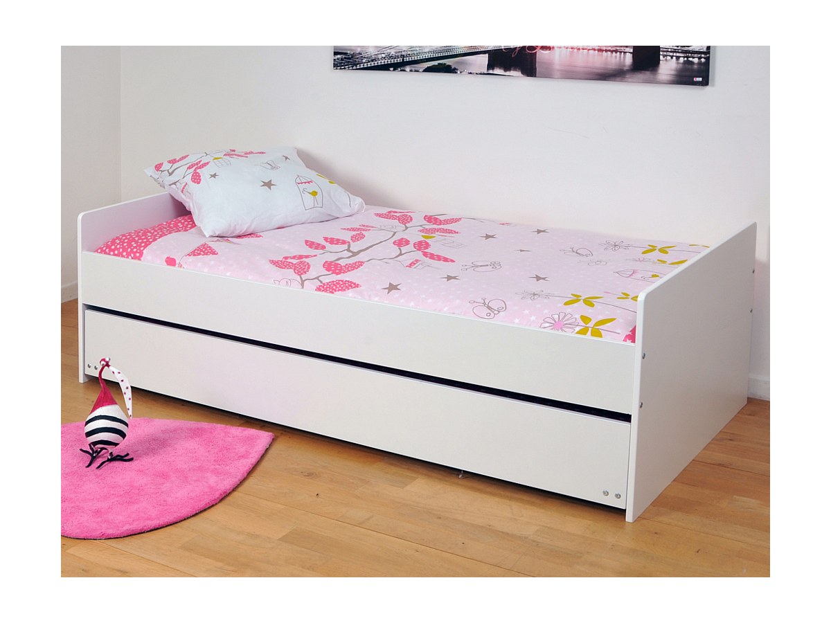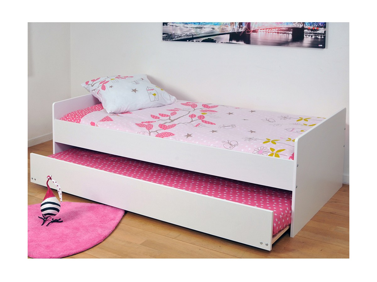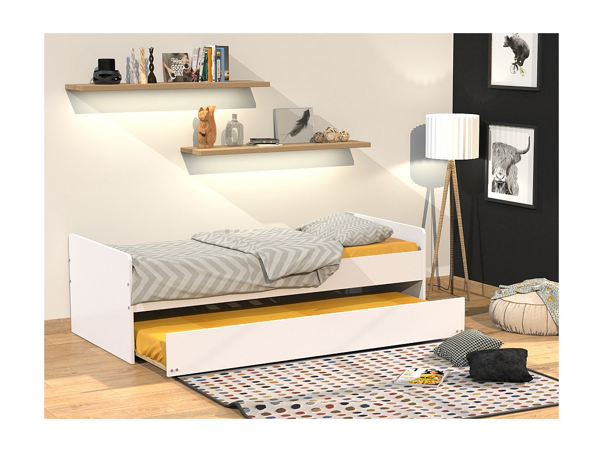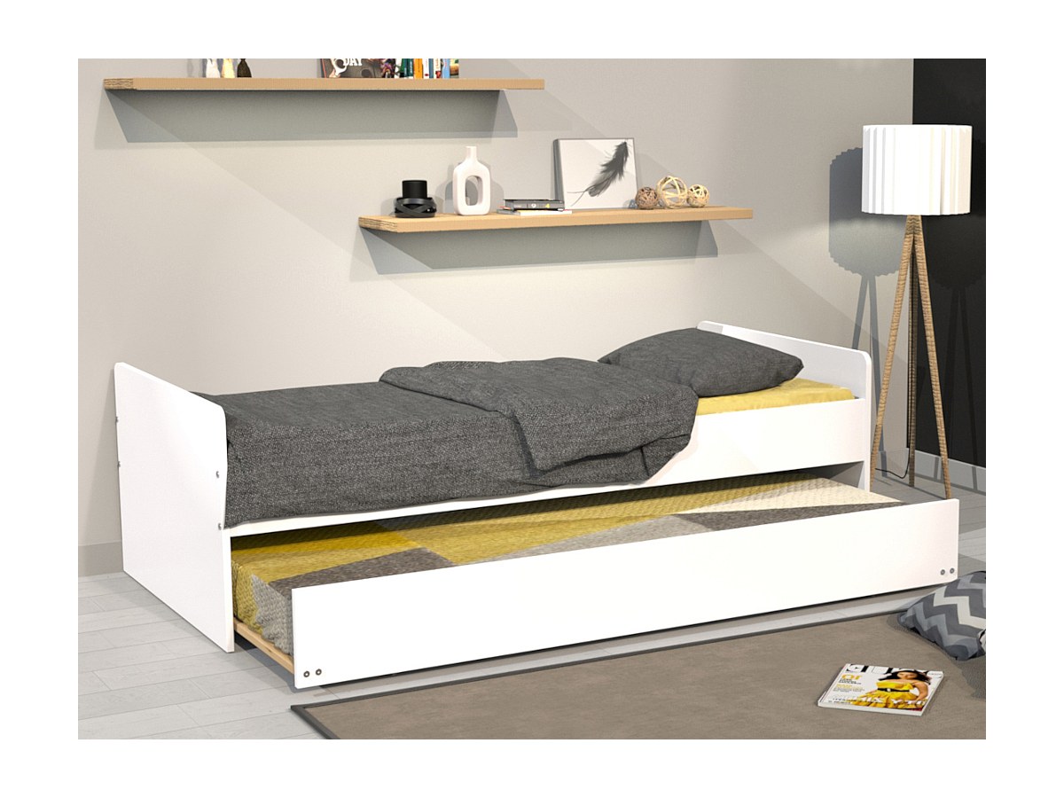 Łóżko wysuwane NOLANE – 90 × 190 cm – lakier matowy w kolorze białym