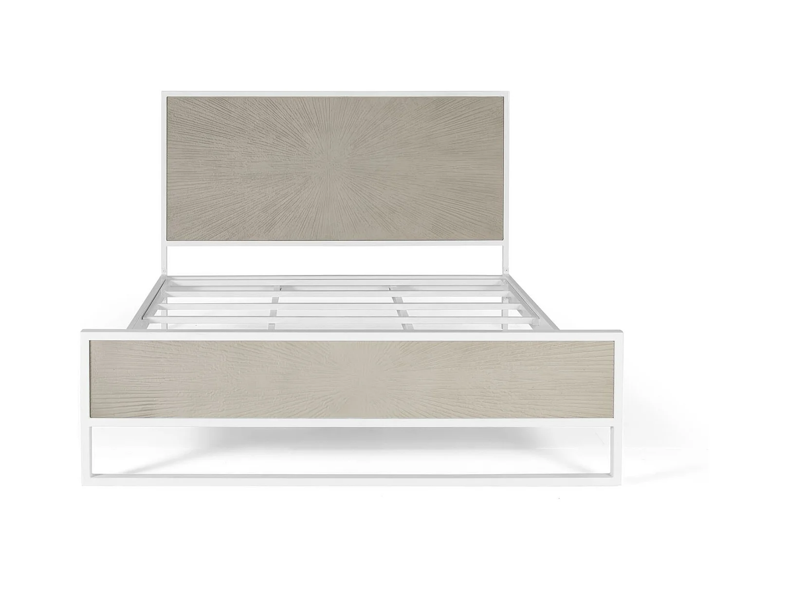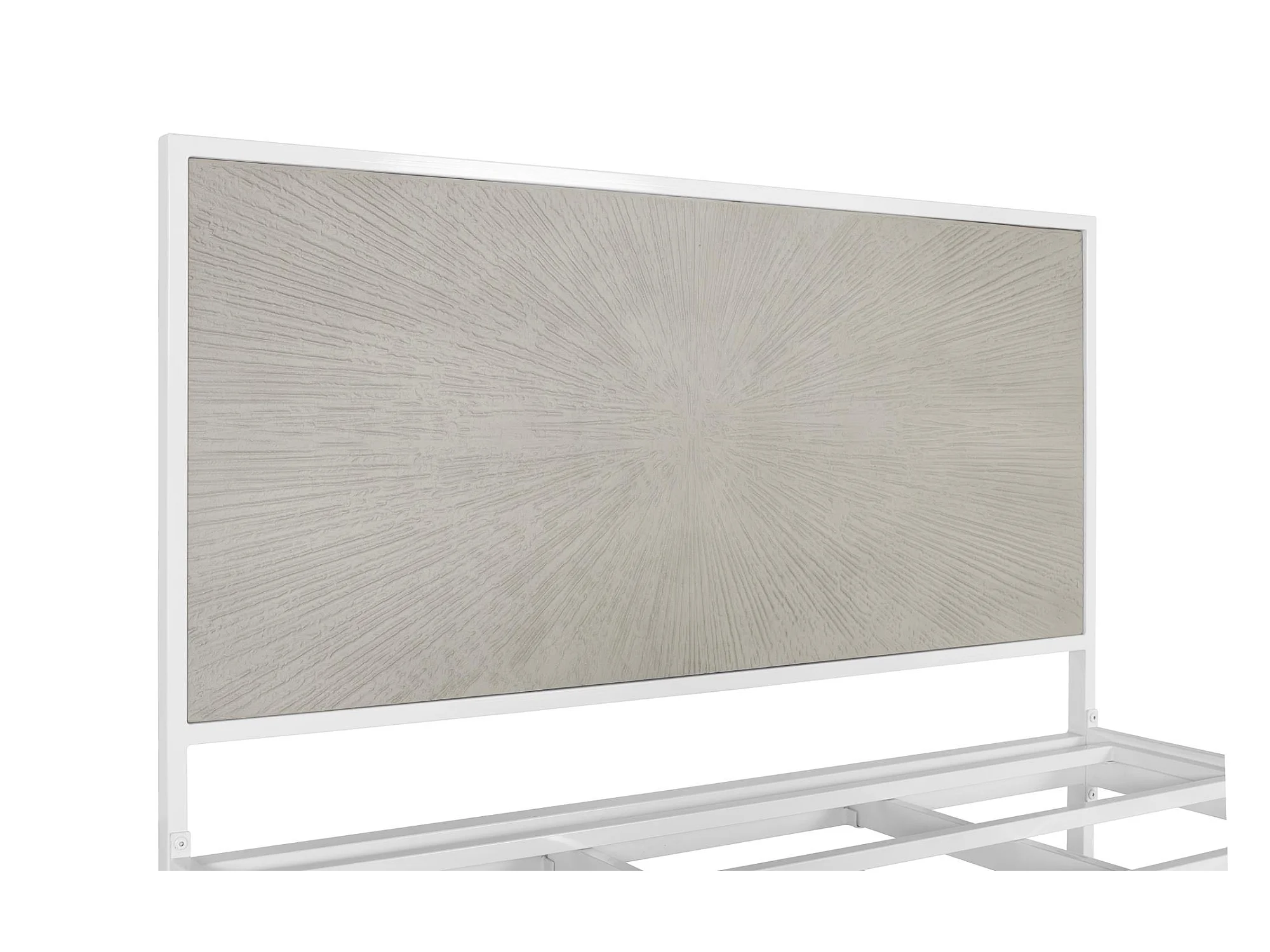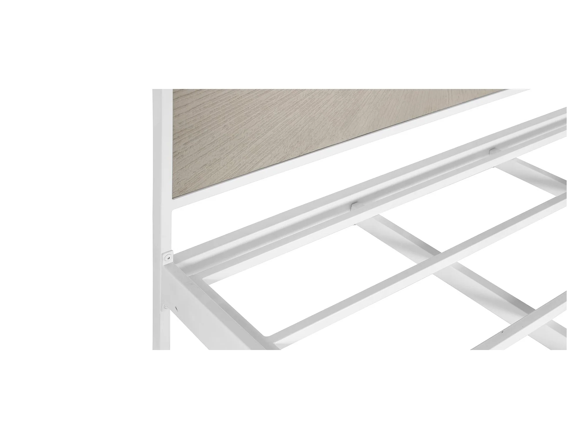 Łóżko z białego i beżowego metalu i żywicy
