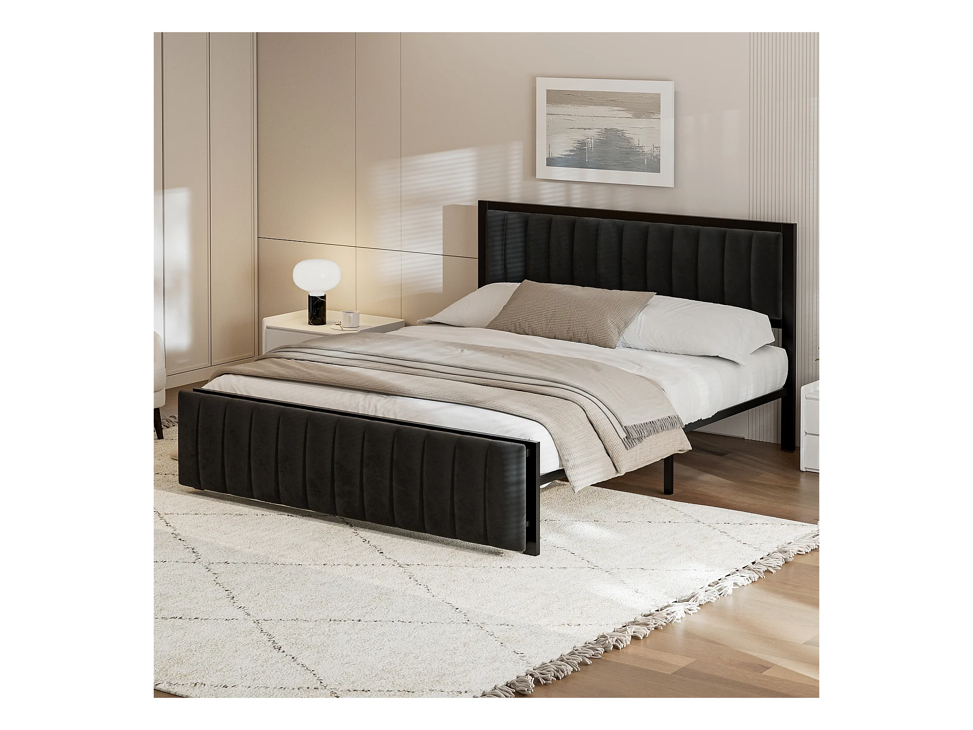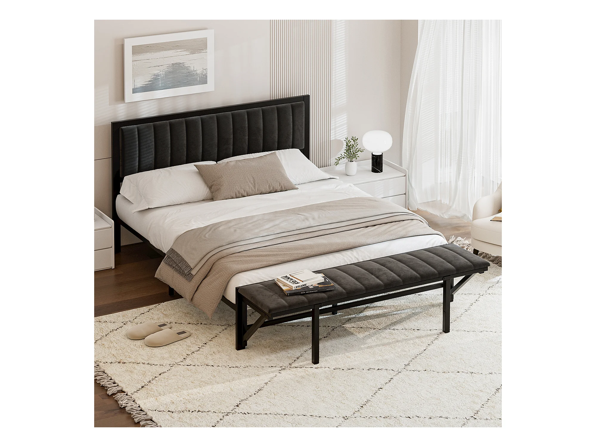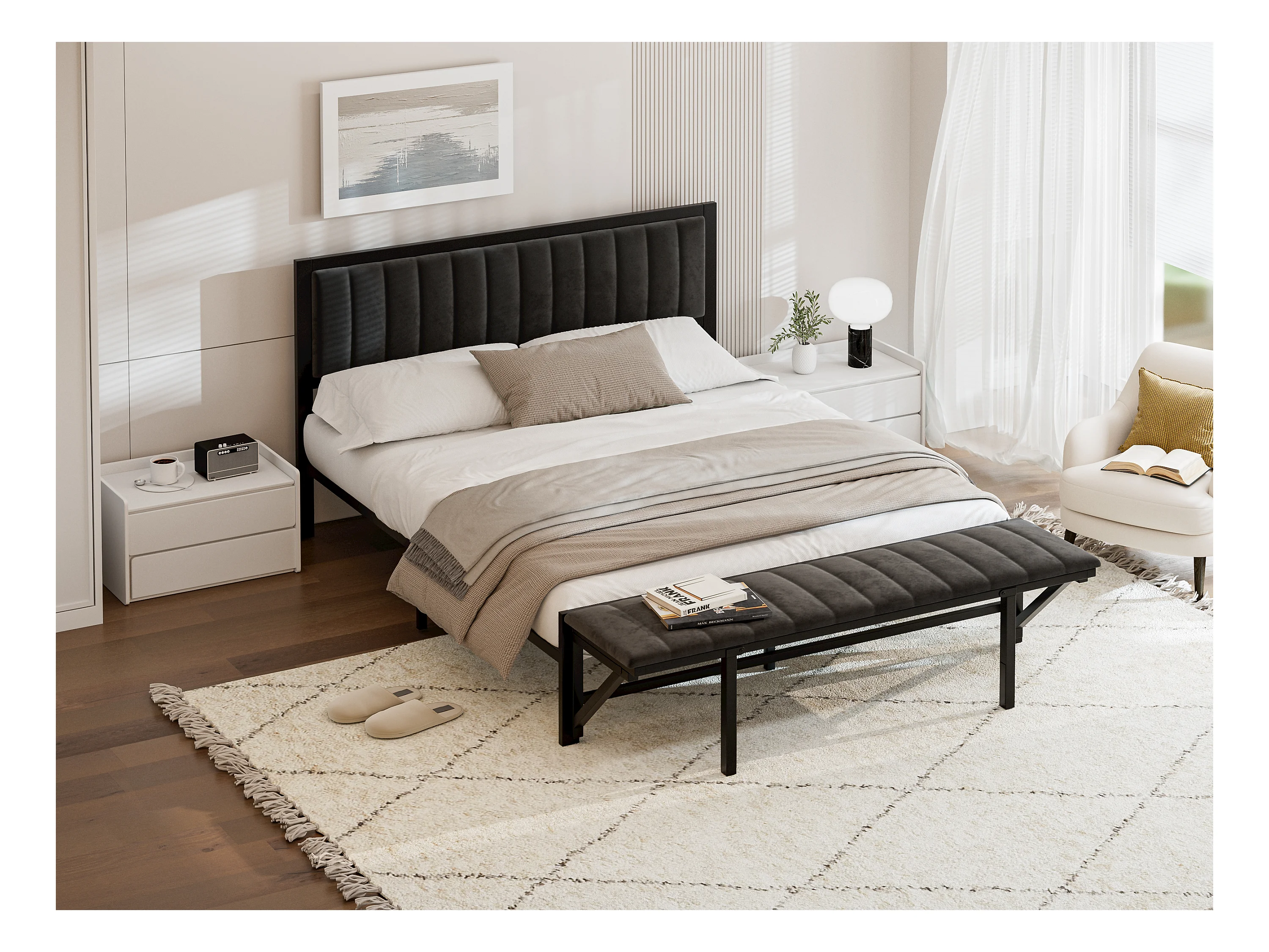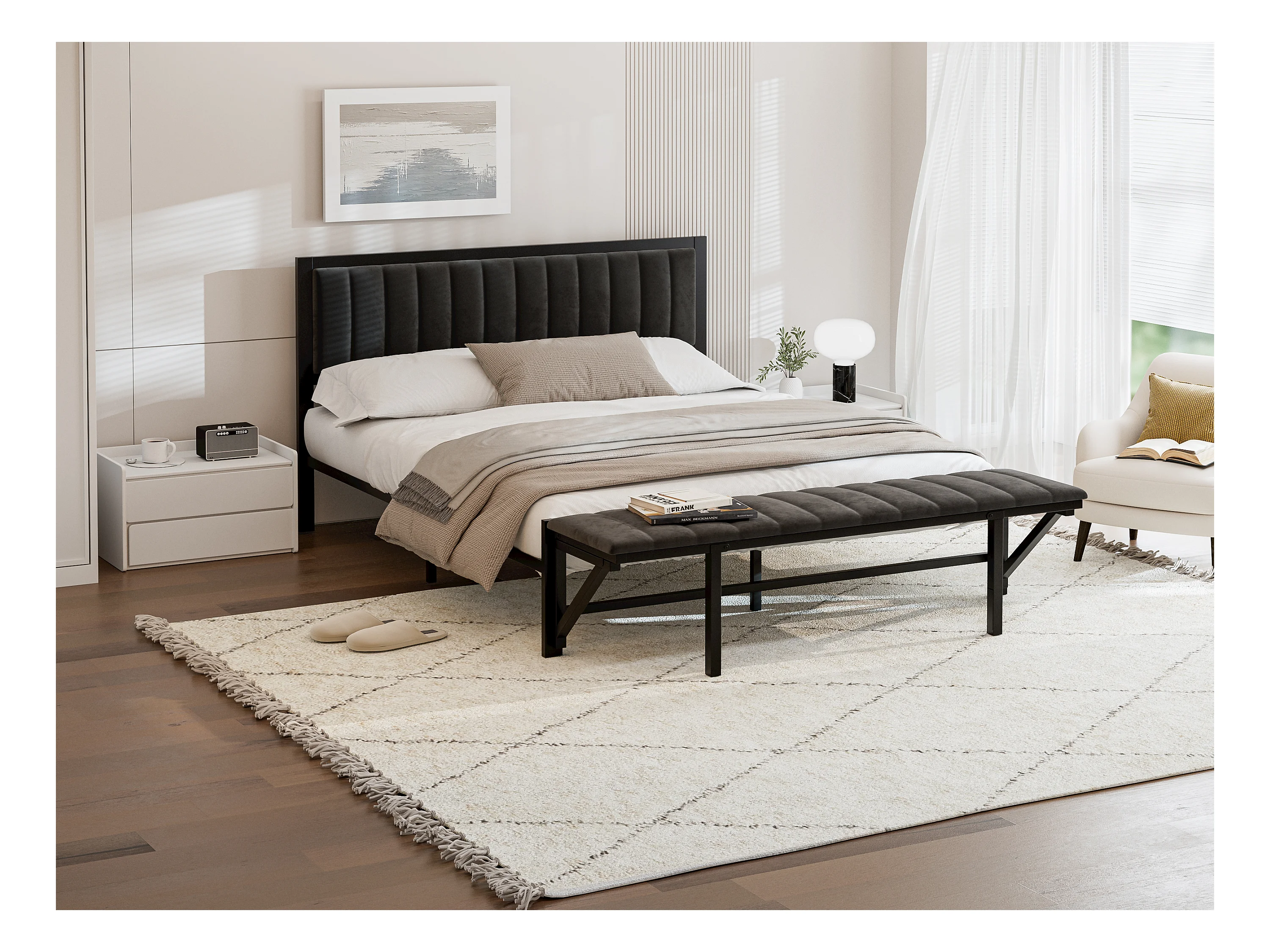 Łóżko z ławką składaną - 140 x 200 cm - rama łóżka z żelaza z pojemnikiem - aksamit - czarne