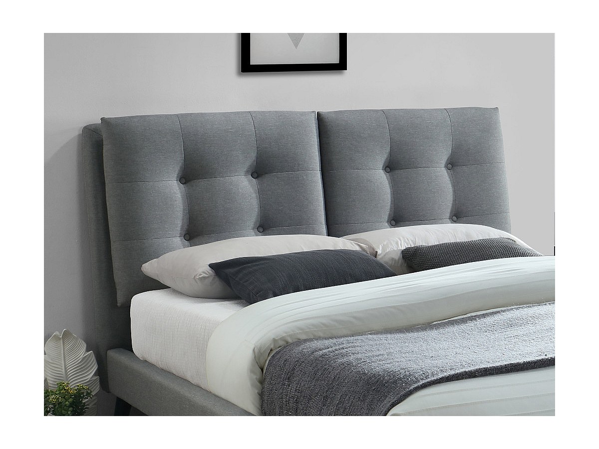 Łóżko z pikowanym zagłówkiem i stelażem PILLOW — tkanina — 160 × 200 cm — szare