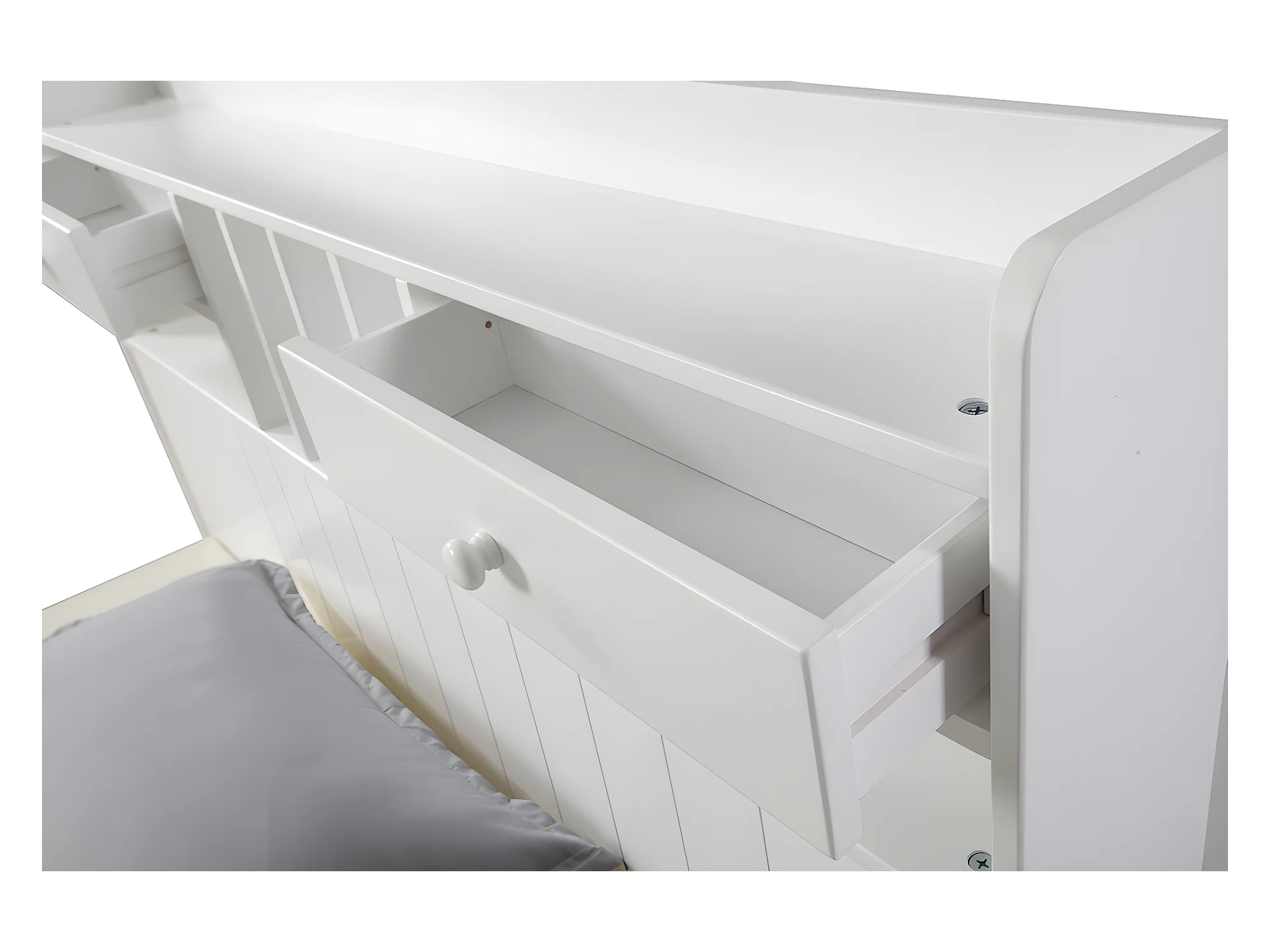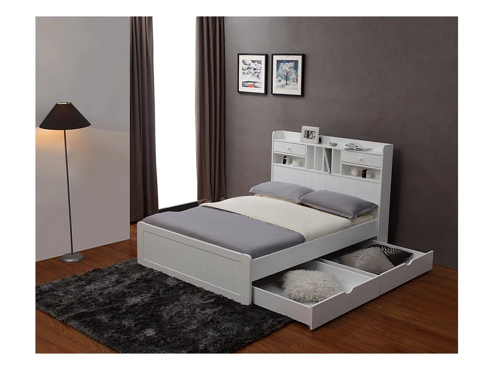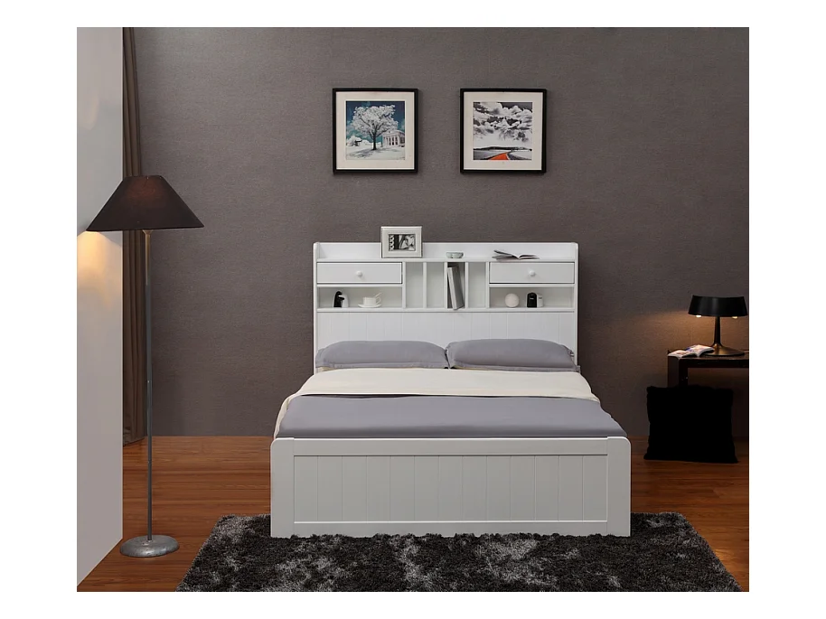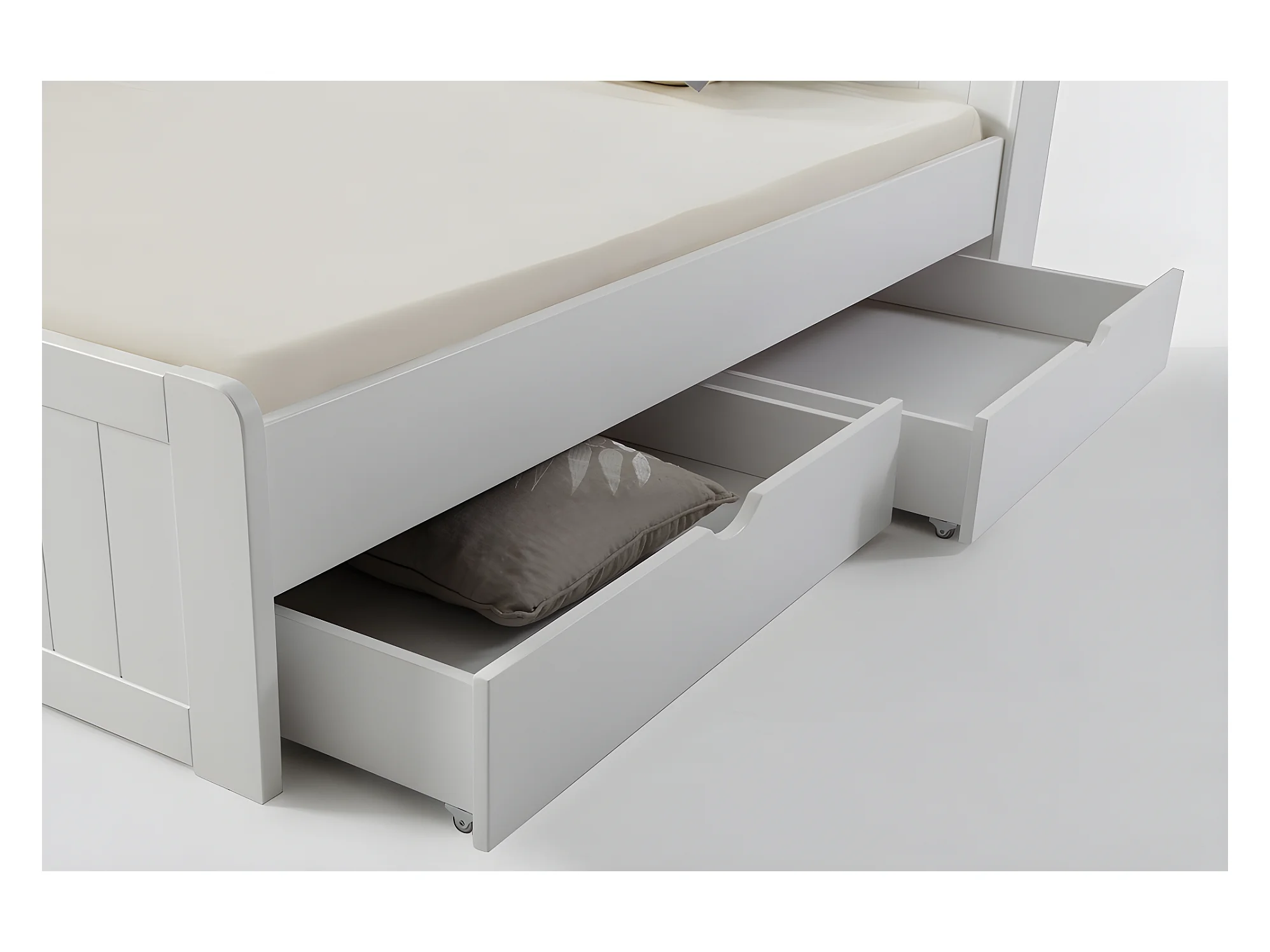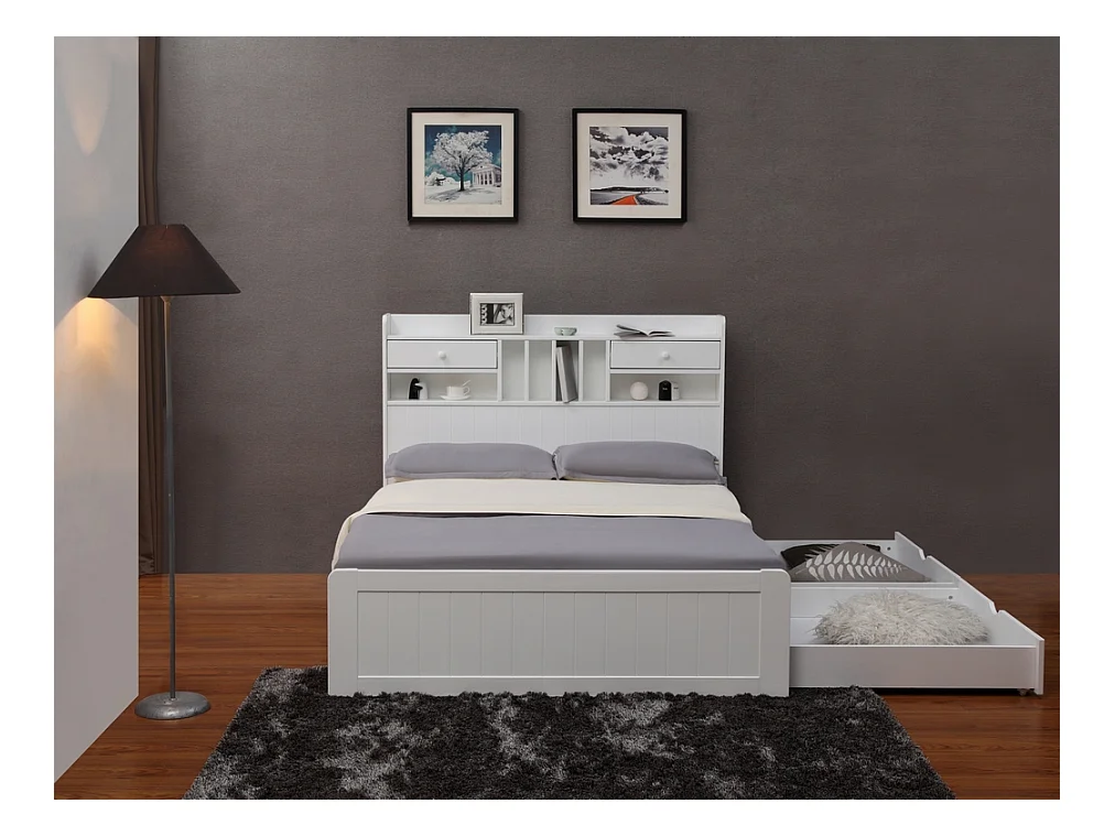 Łóżko ze skrzynią 140 x 190 cm - Sosna - Biały + Stelaż - MEDERICK