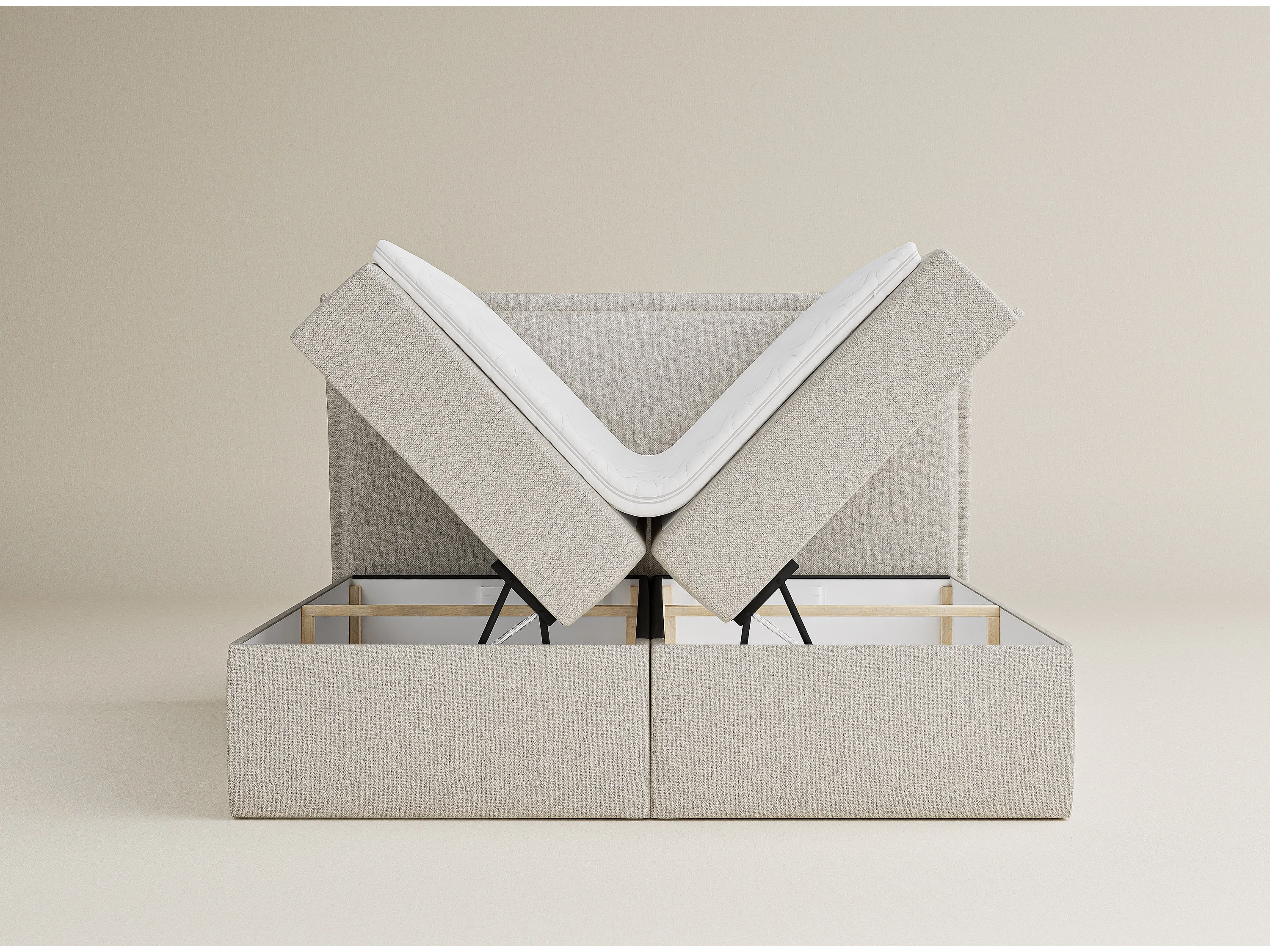 Łóżko z pojemnikiem 140 x 200 cm - z wezgłowiem - pleciona tkanina - niebieskoszary - SAFFRON