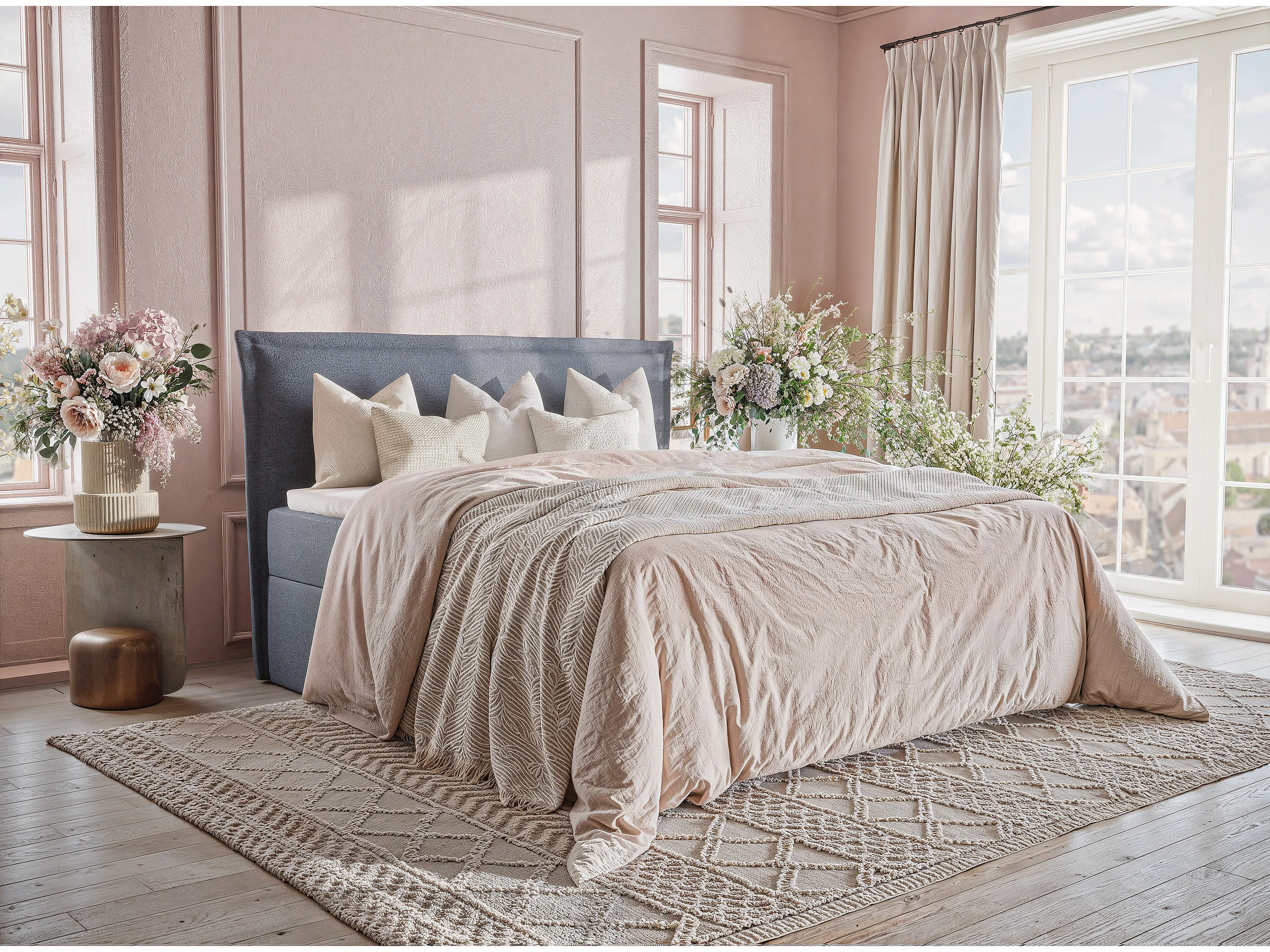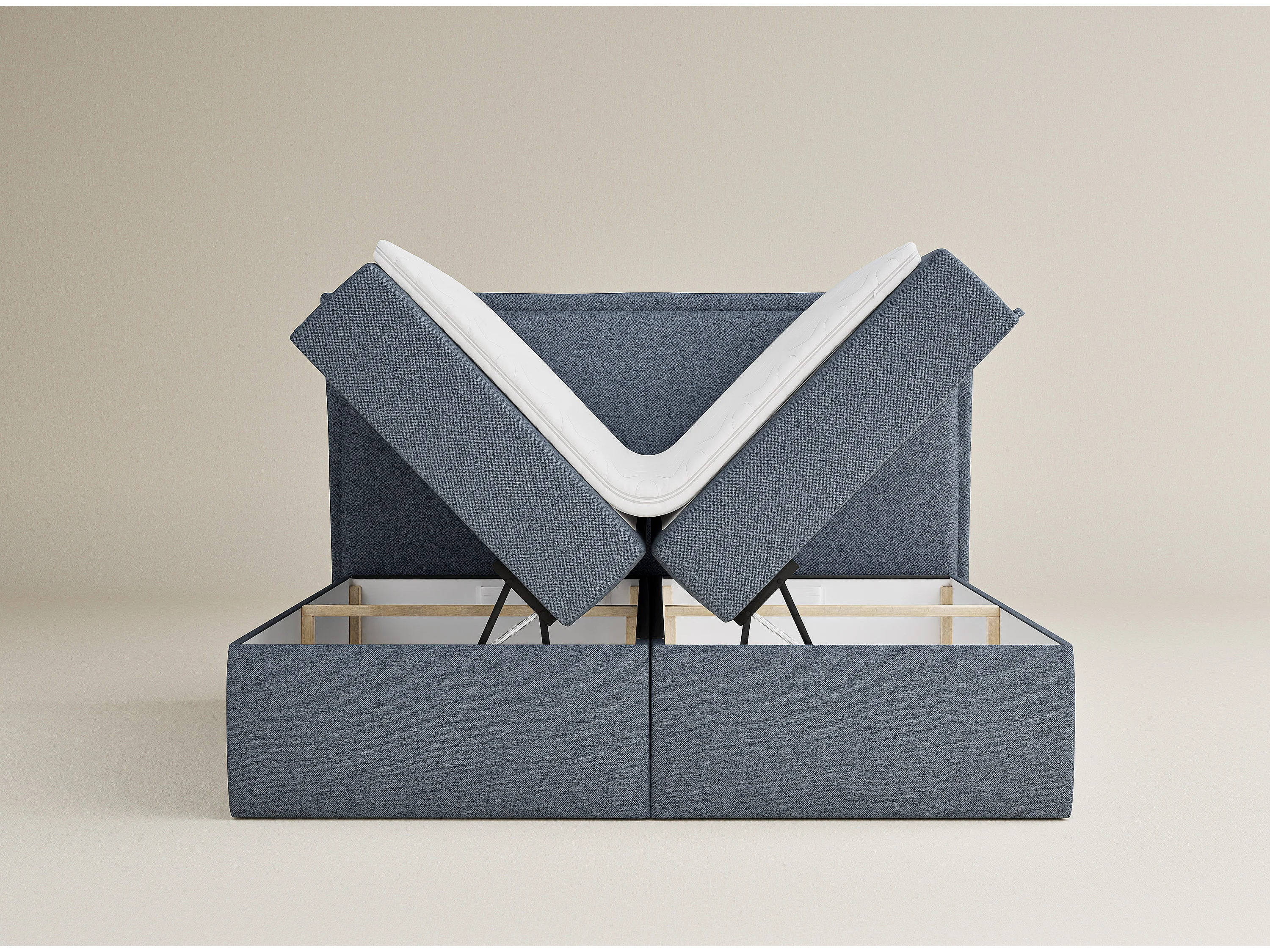 Łóżko z pojemnikiem 180 x 200 cm - z wezgłowiem - pleciona tkanina - jasnobeżowy - SAFFRON
