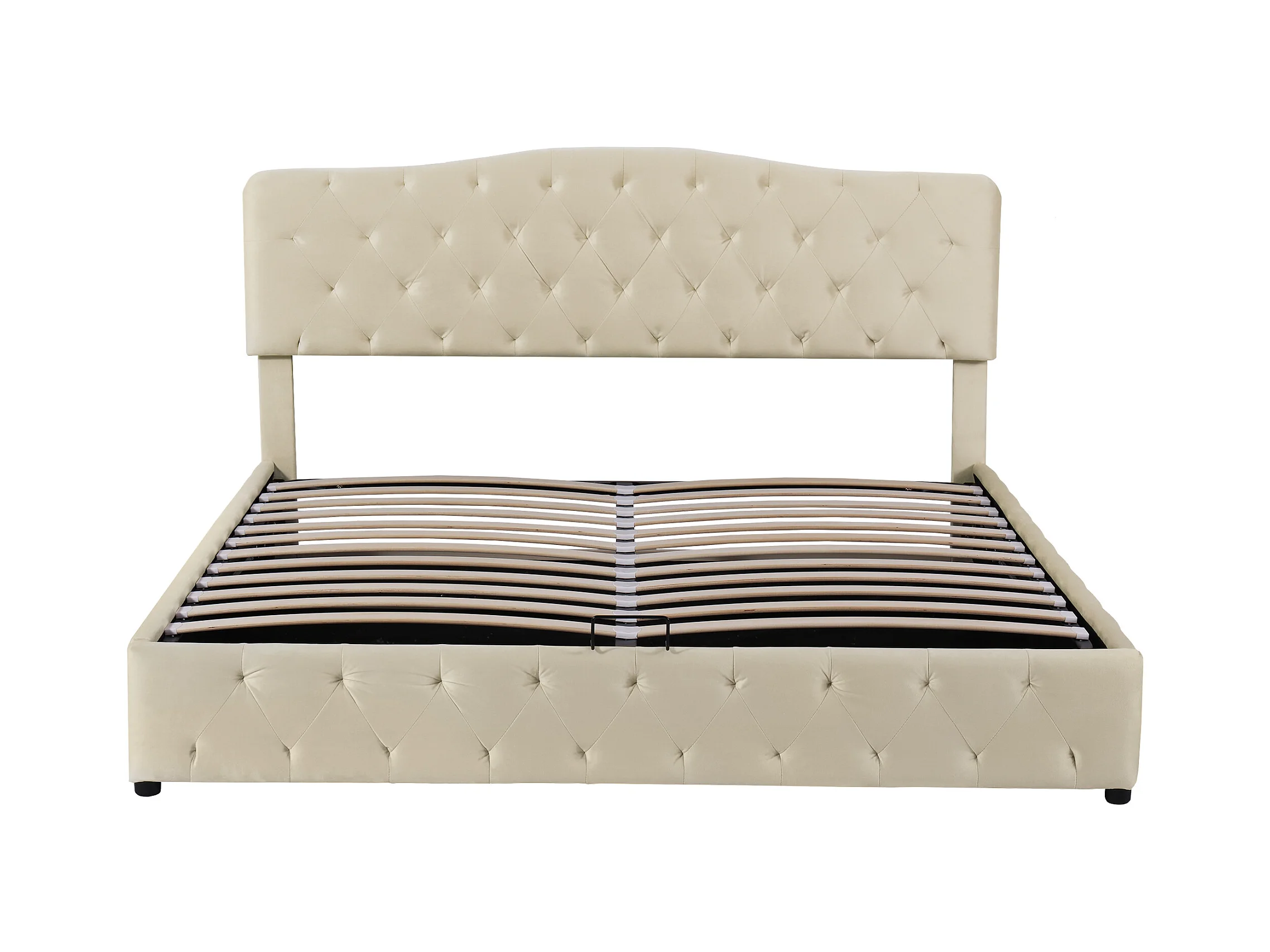 Tapicerowane łóżko z pojemnikiem 220 x 240 - Aksamit - Jasny beż - KAHU