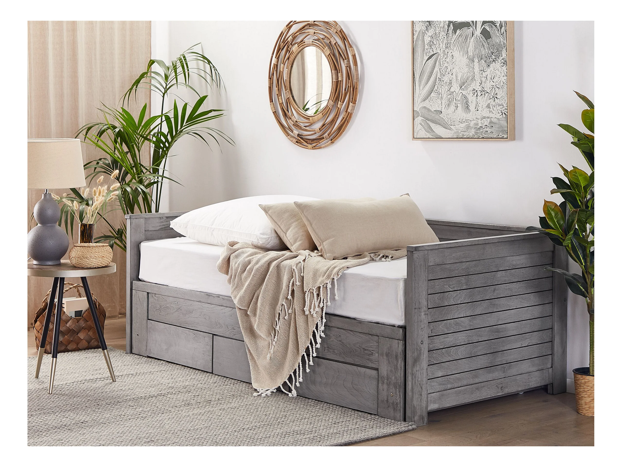 Łóżko banquette 90x200cm - z 2 szufladami - z litego drewna - Szare