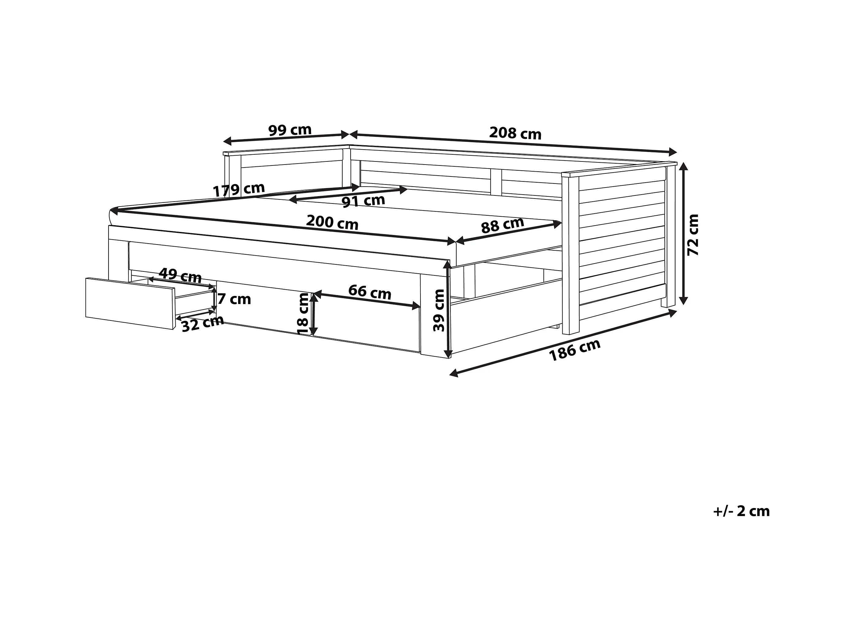 Sofa rozkładana 90x200 cm - z 2 szufladami - z kilkoma półkami - z listwowym stelażem - szary (materac nie jest w zestawie)