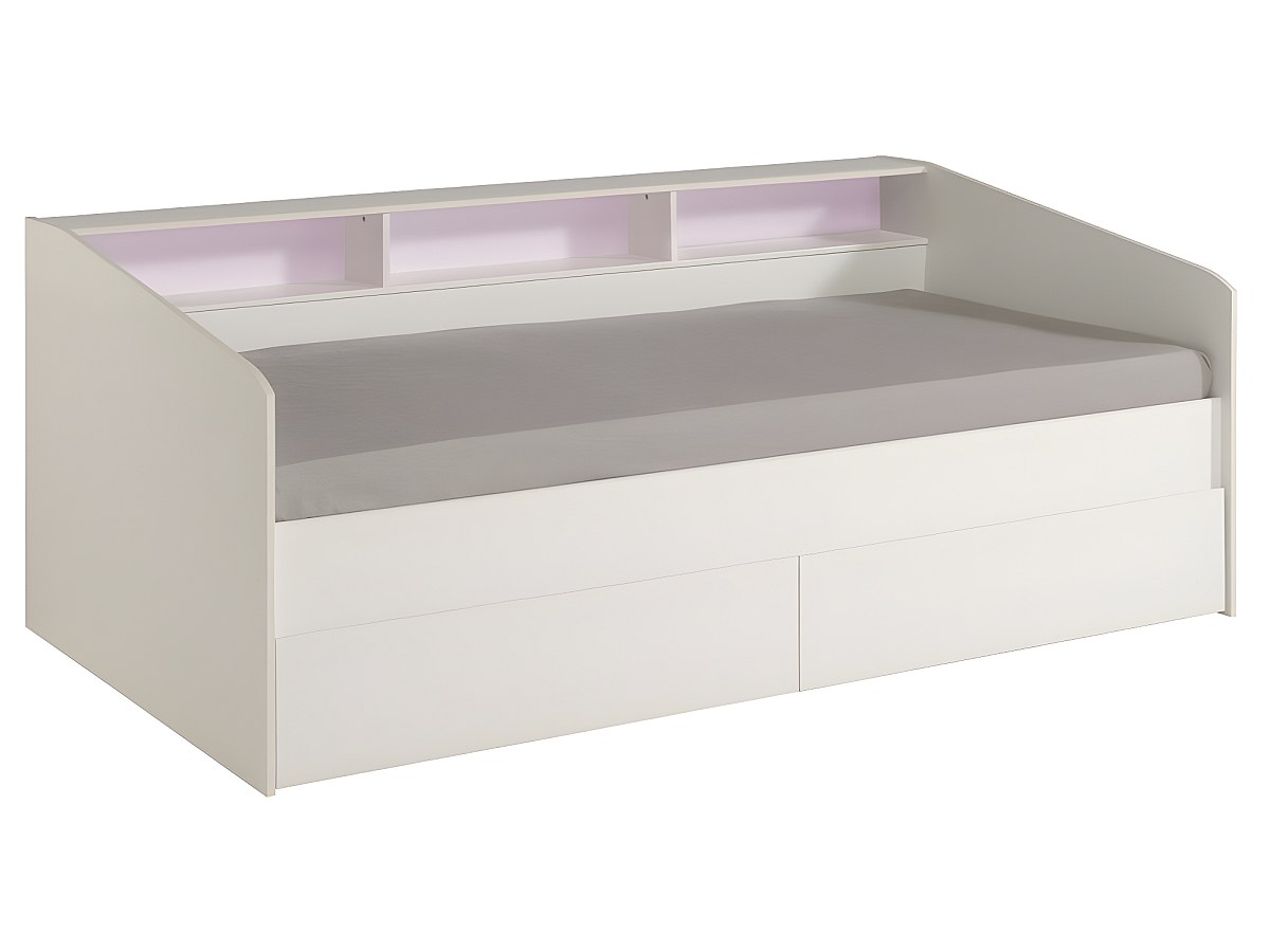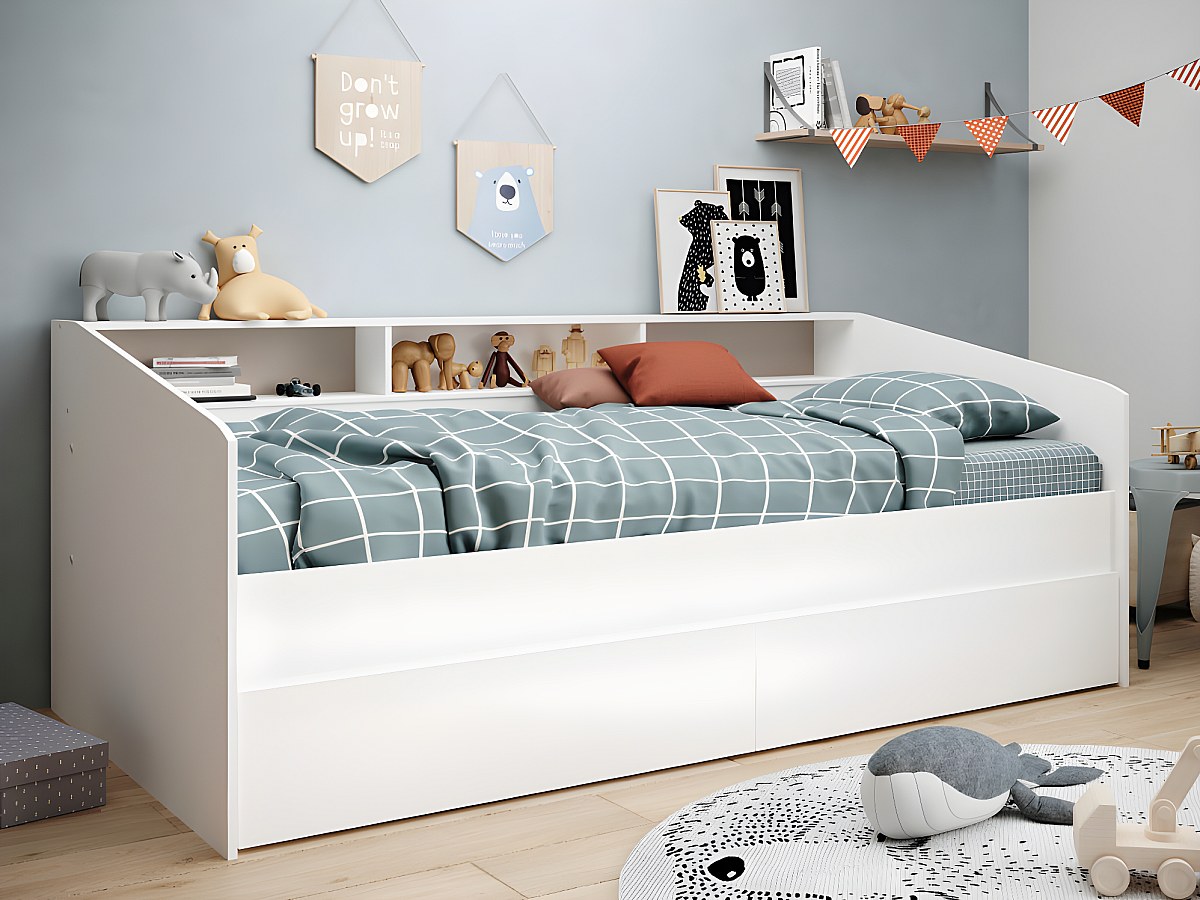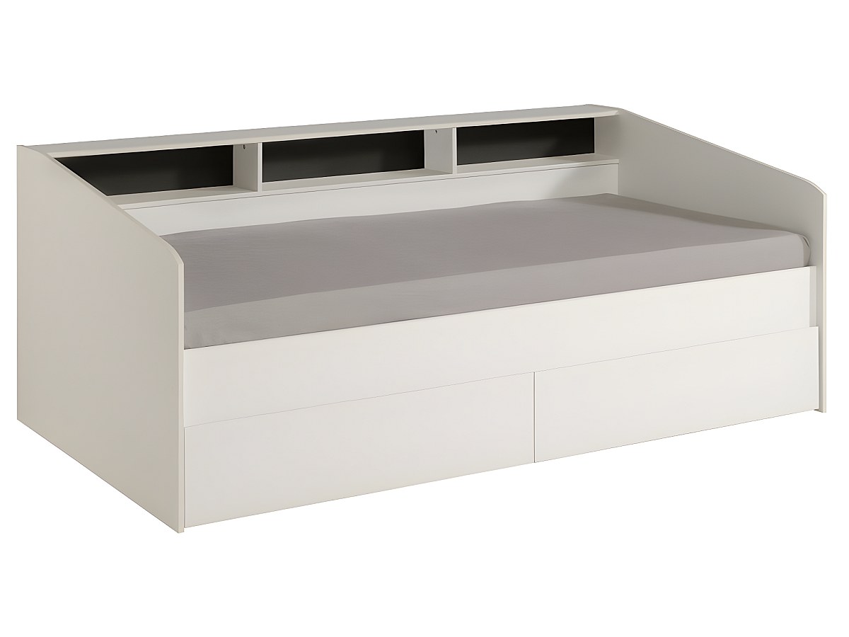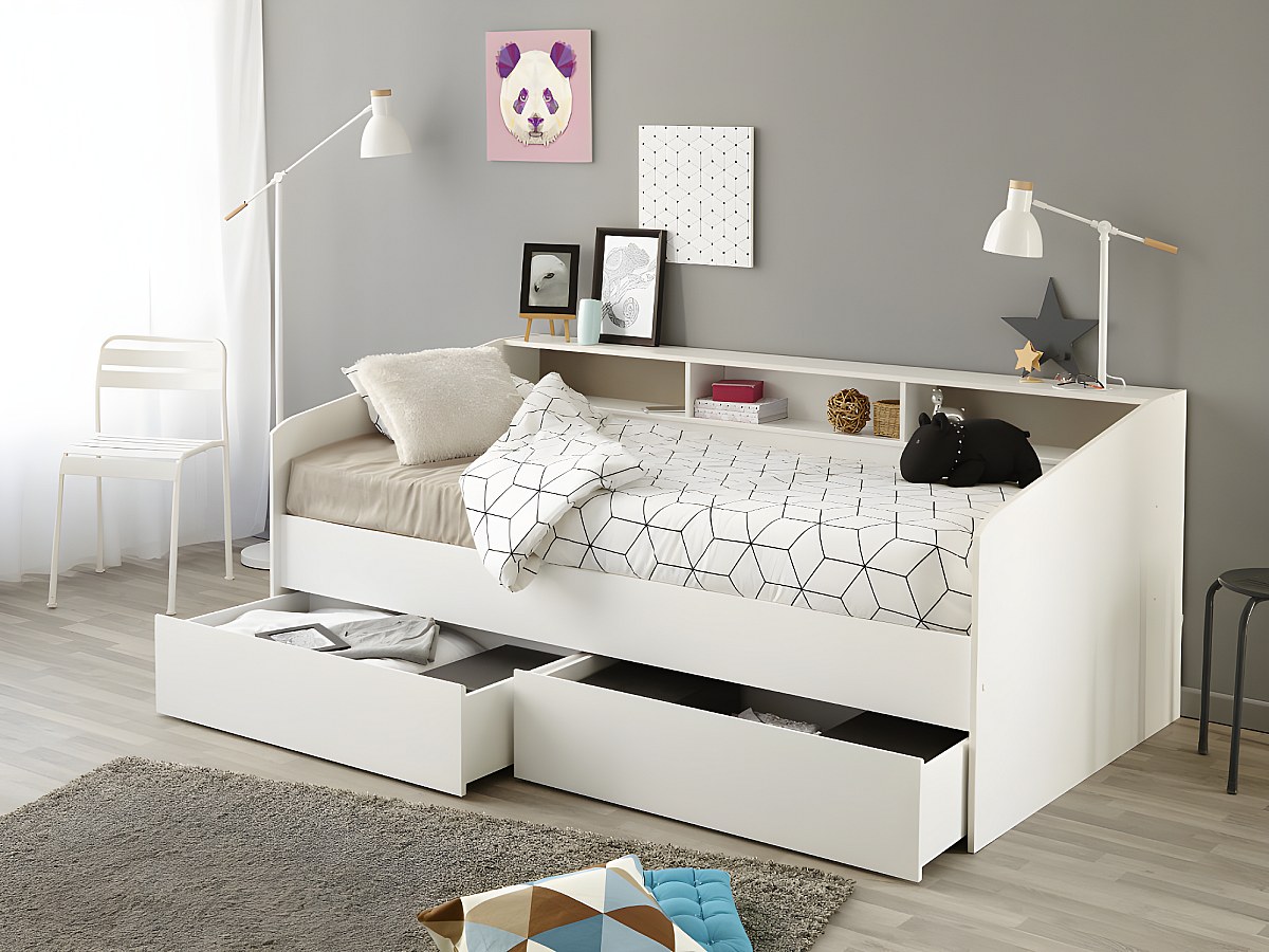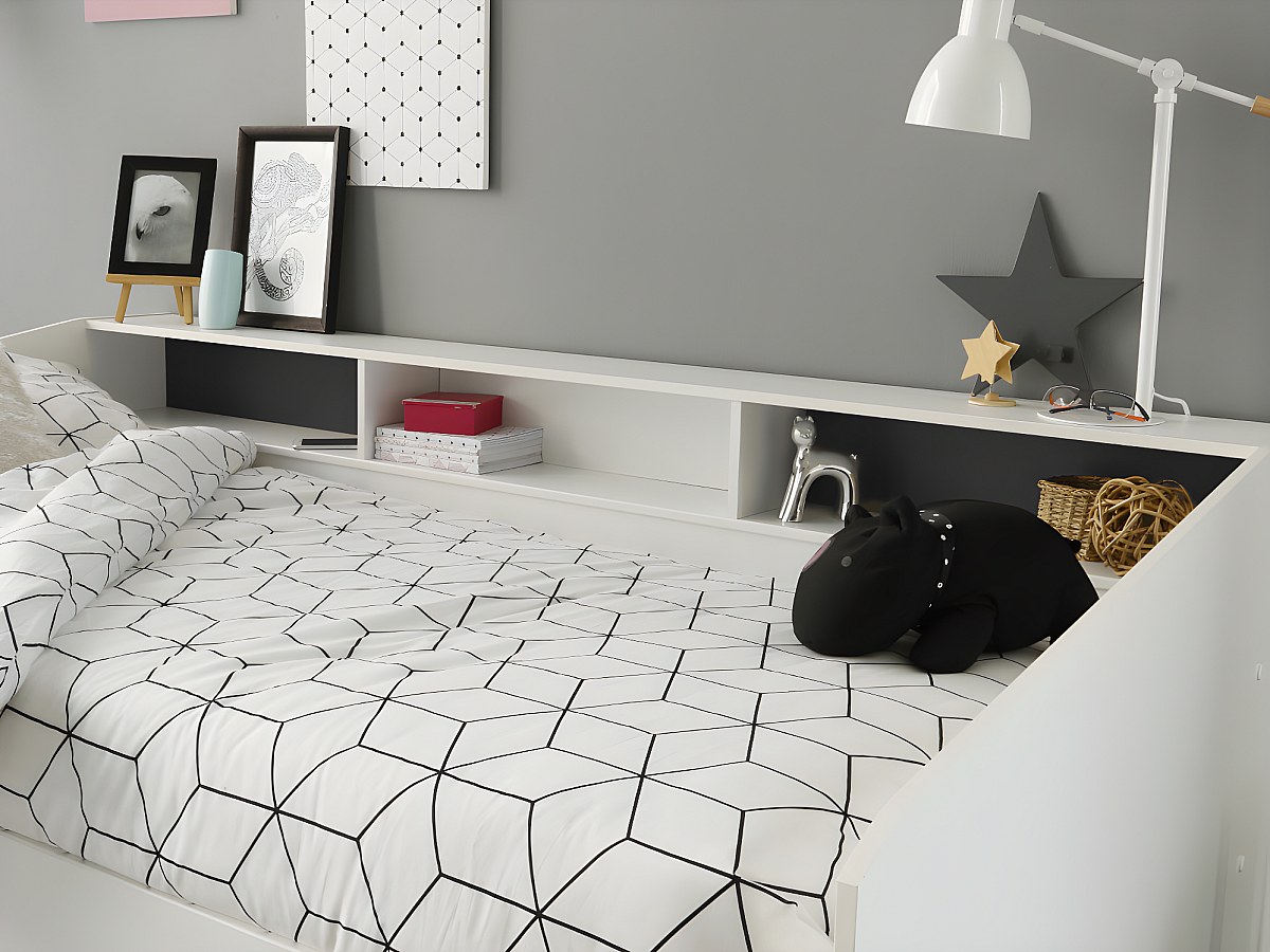 Łóżko z szufladami i półkami PAULETTE - 90x200 cm - Kolor biały