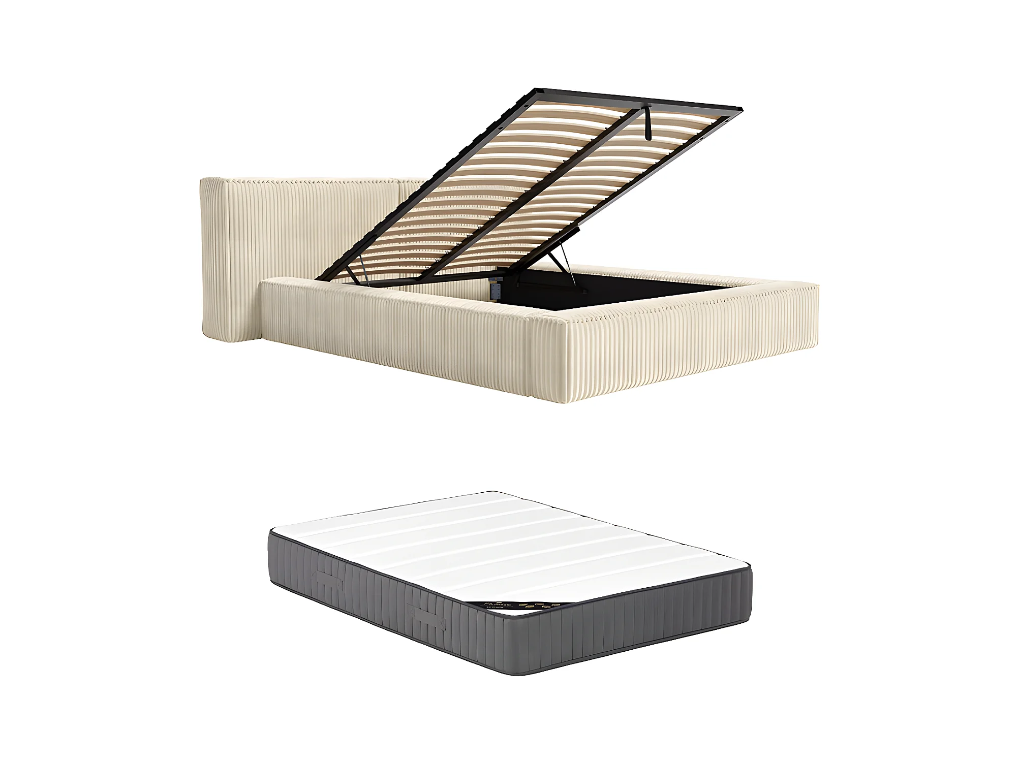 Łóżko ze skrzynią 140 x 190 cm - Szeroko prążkowany sztruks - Beżowy + Materac - TIMANO marki Pascal Morabito