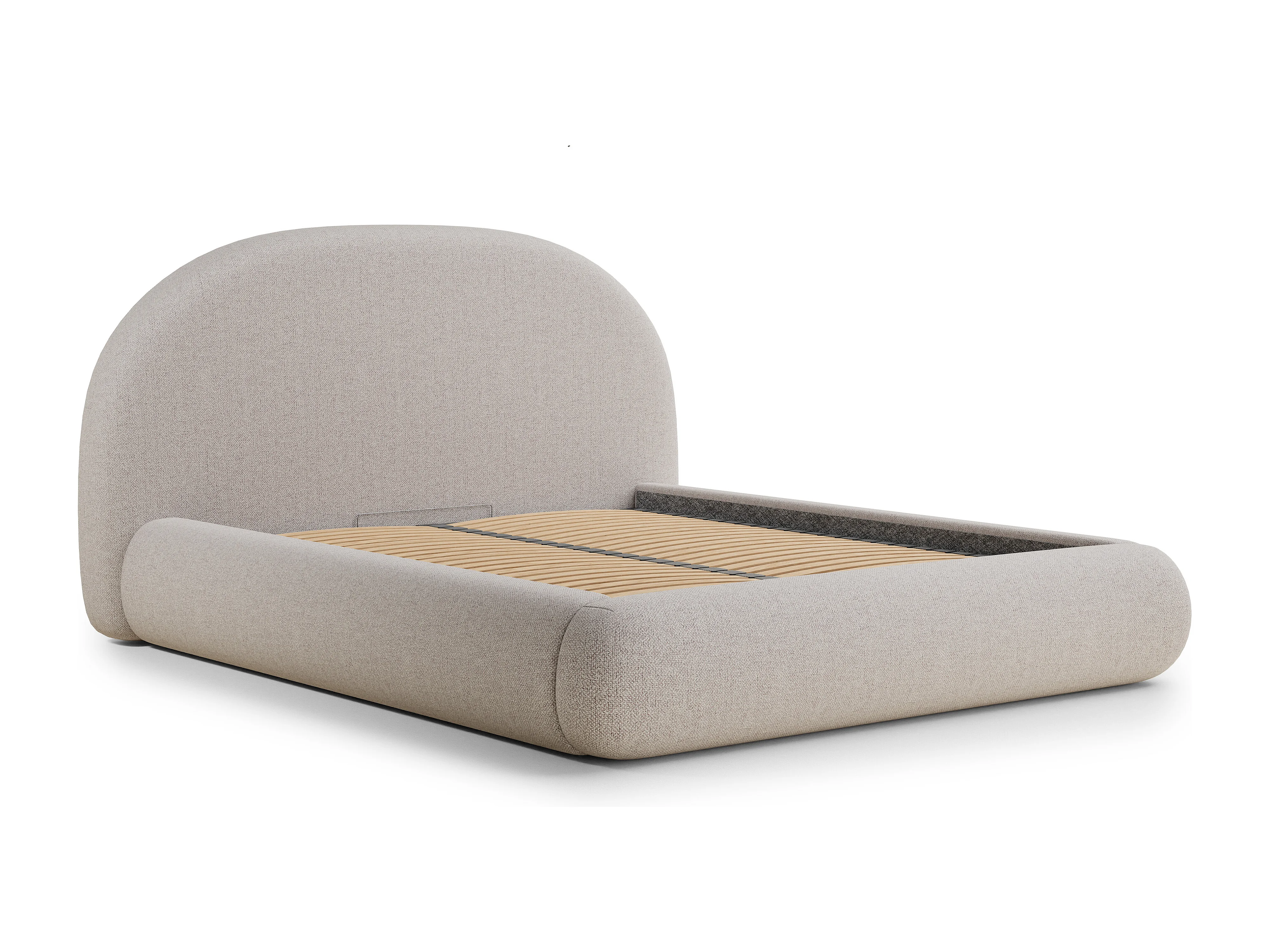 Łóżko ze skrzynią 140 x 200 cm - tkanina pleciona - beżowy - MAUMERE