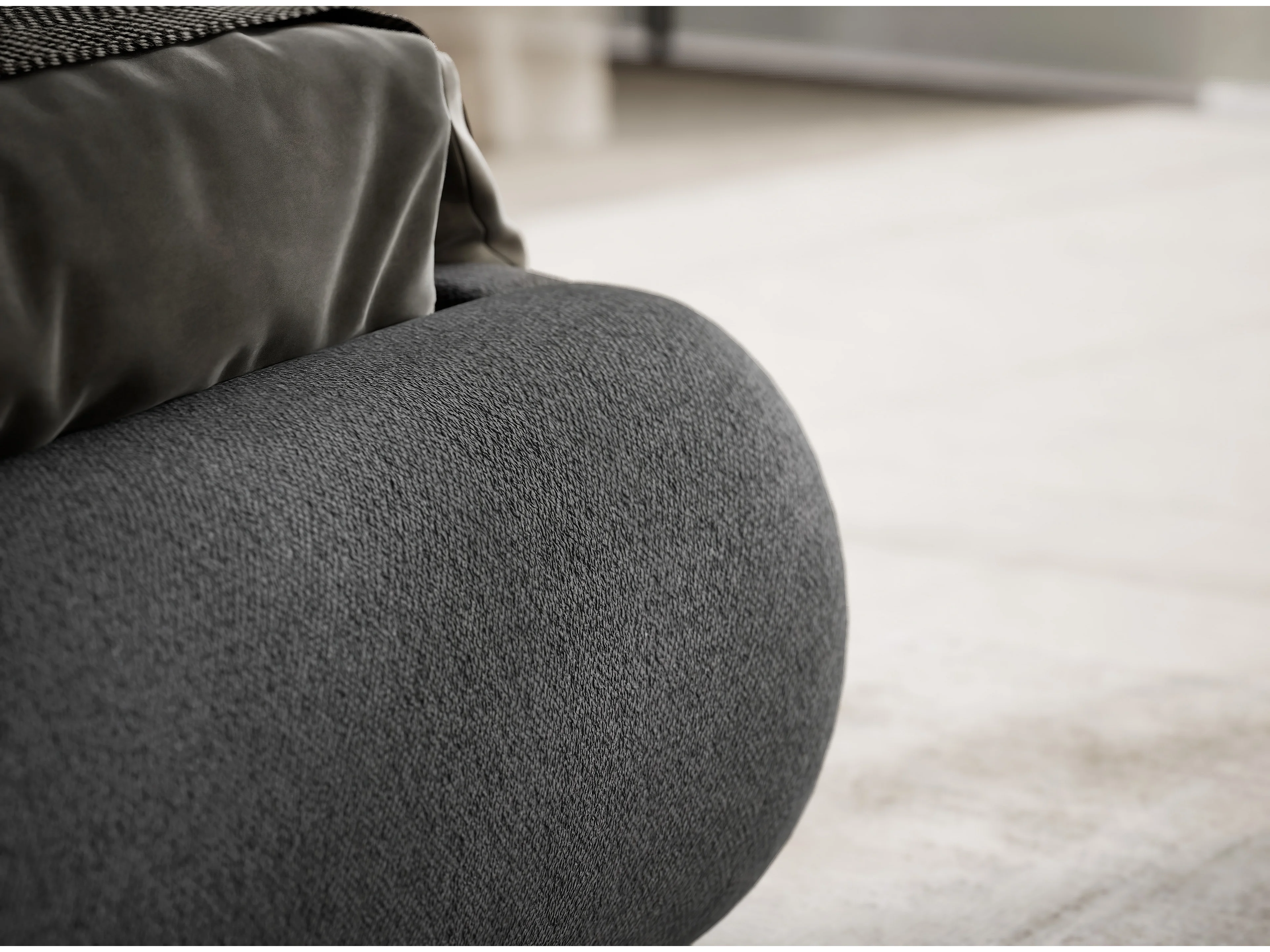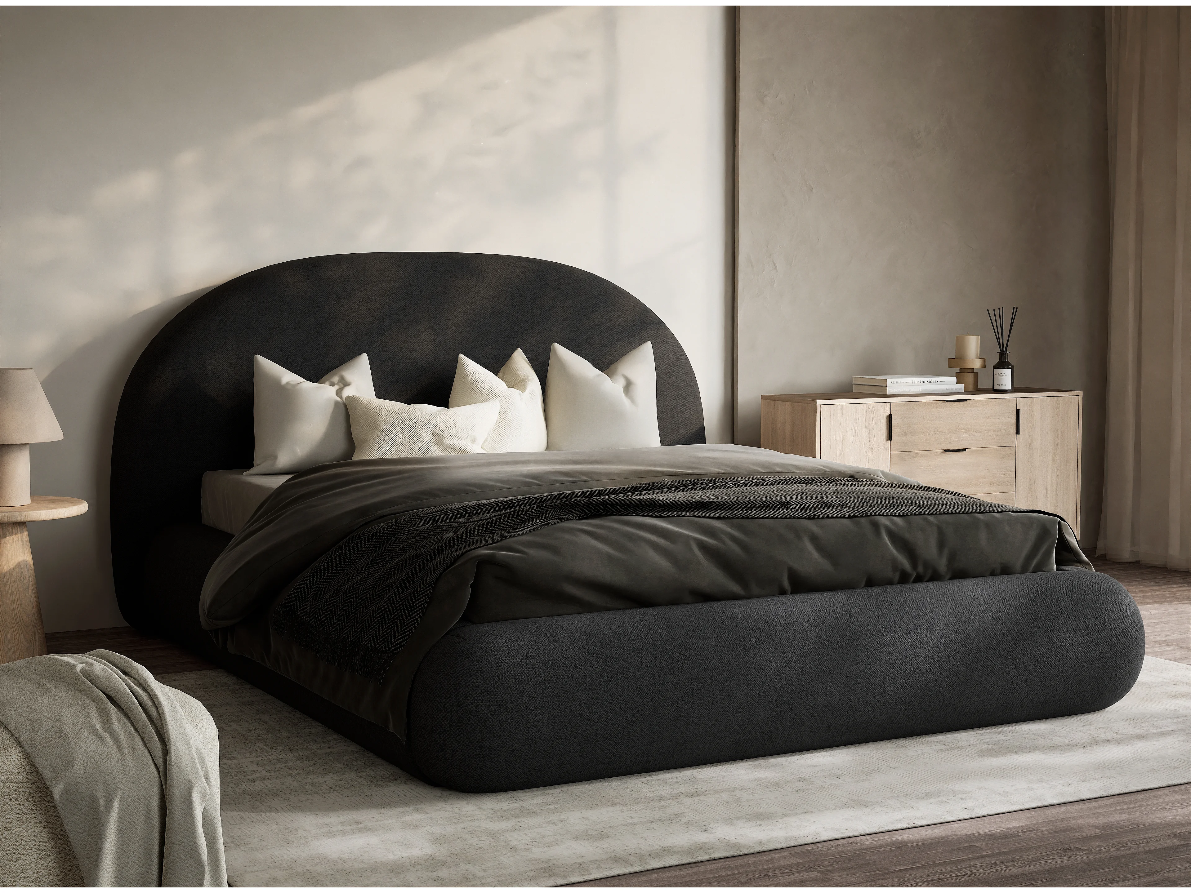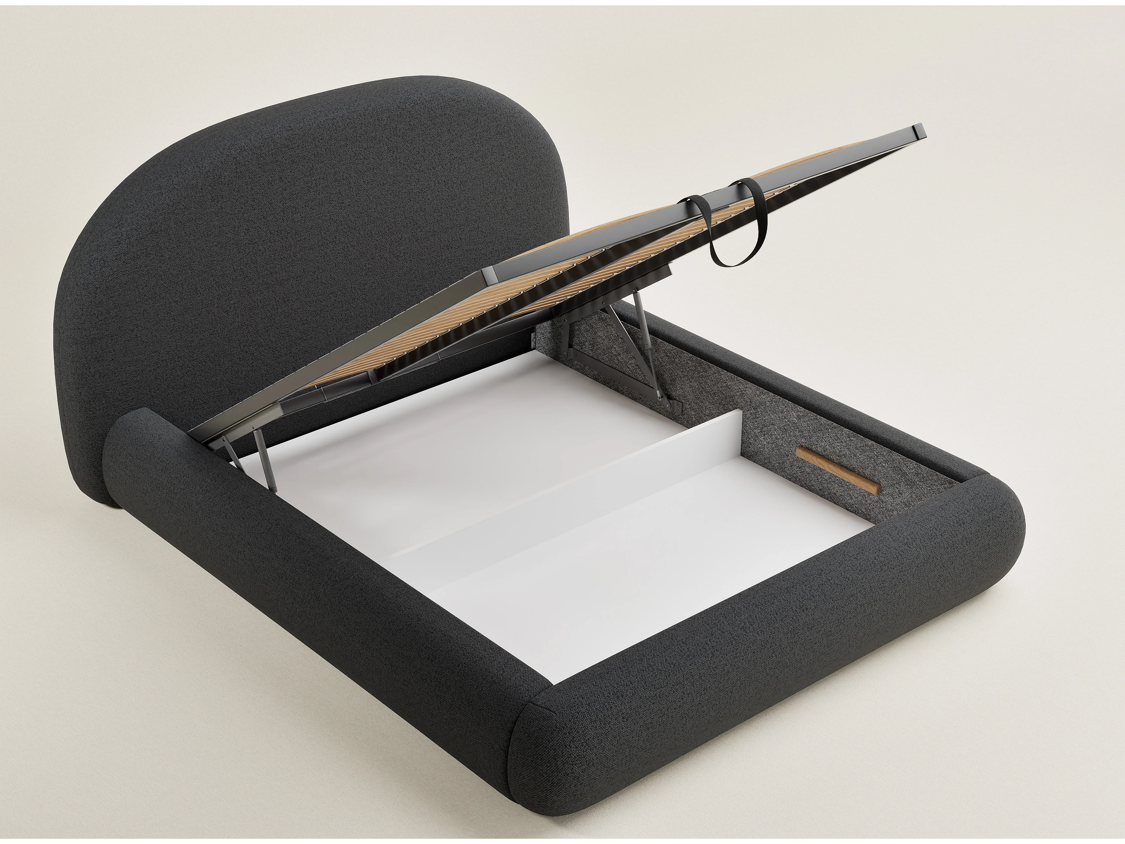 Łóżko ze skrzynią 140 x 200 cm - tkanina pleciona - grafitowy - MAUMERE