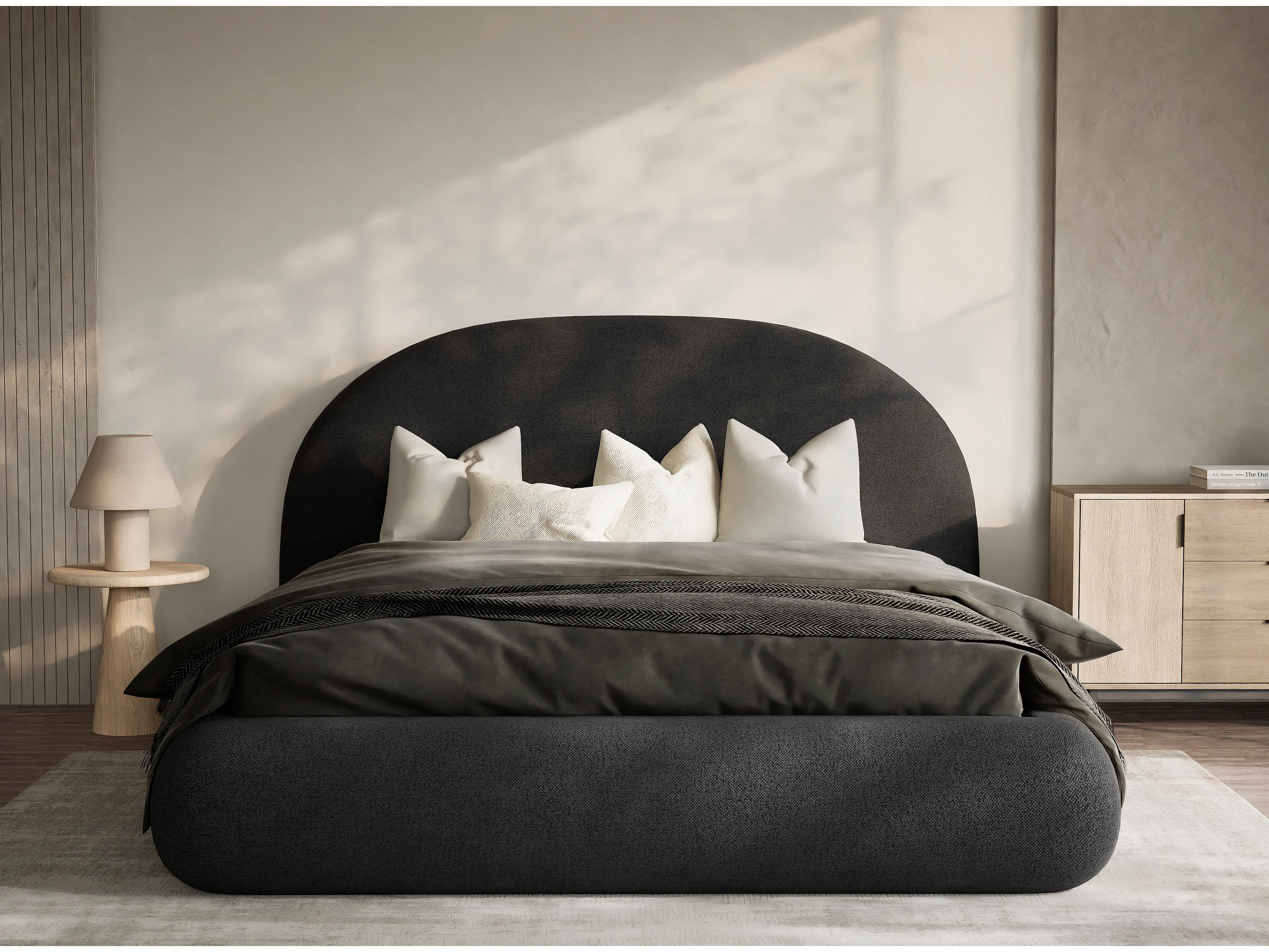 Łóżko ze skrzynią 160 x 200 cm - tkanina pleciona - grafitowy - MAUMERE