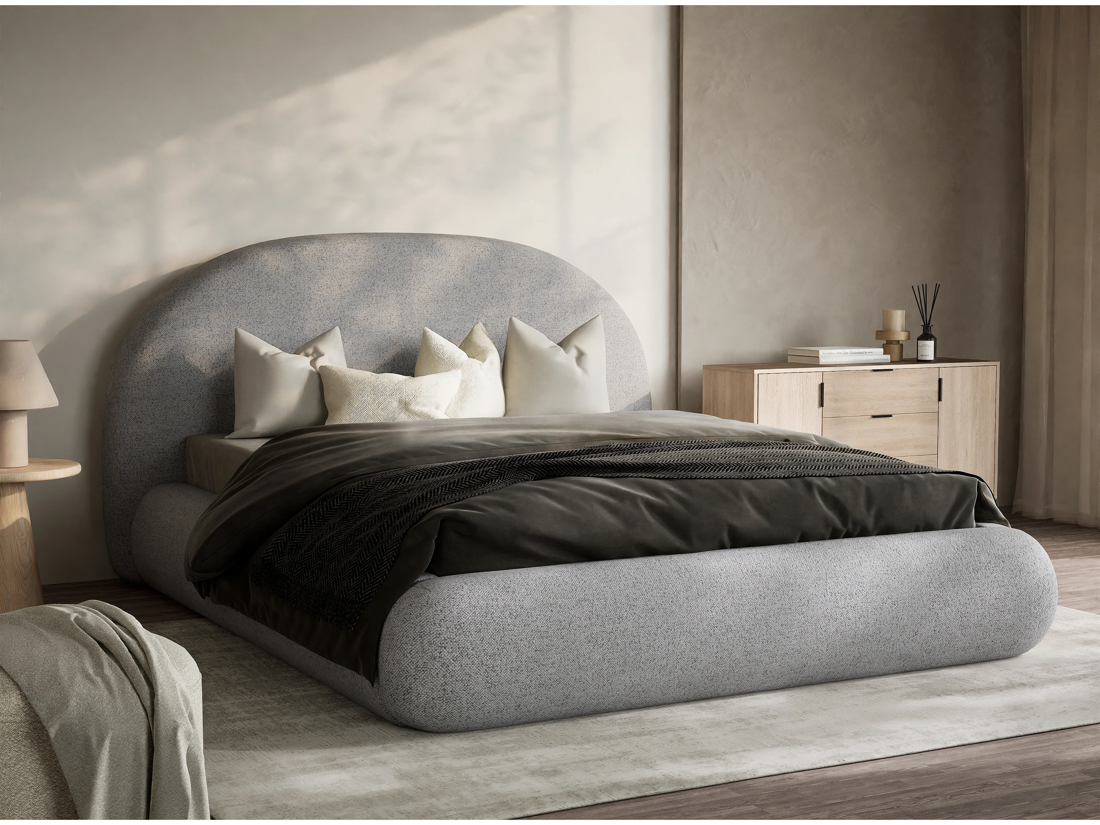 Łóżko ze skrzynią 160 x 200 cm - tkanina pleciona - jasnoszary - MAUMERE