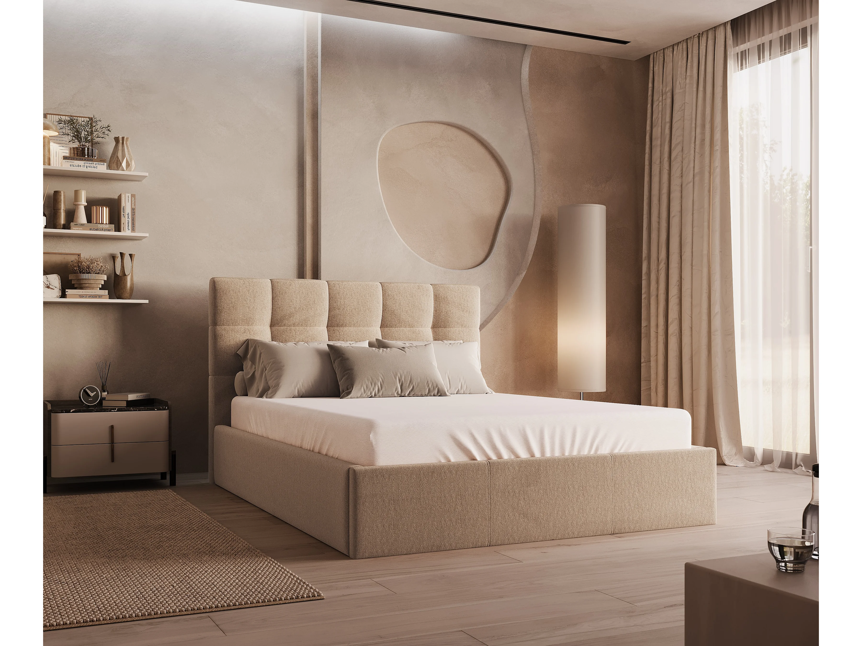 Łóżko ze skrzynią 160 x 200 cm - Welur - Beżowy - MIRDAL Pascala Morabito