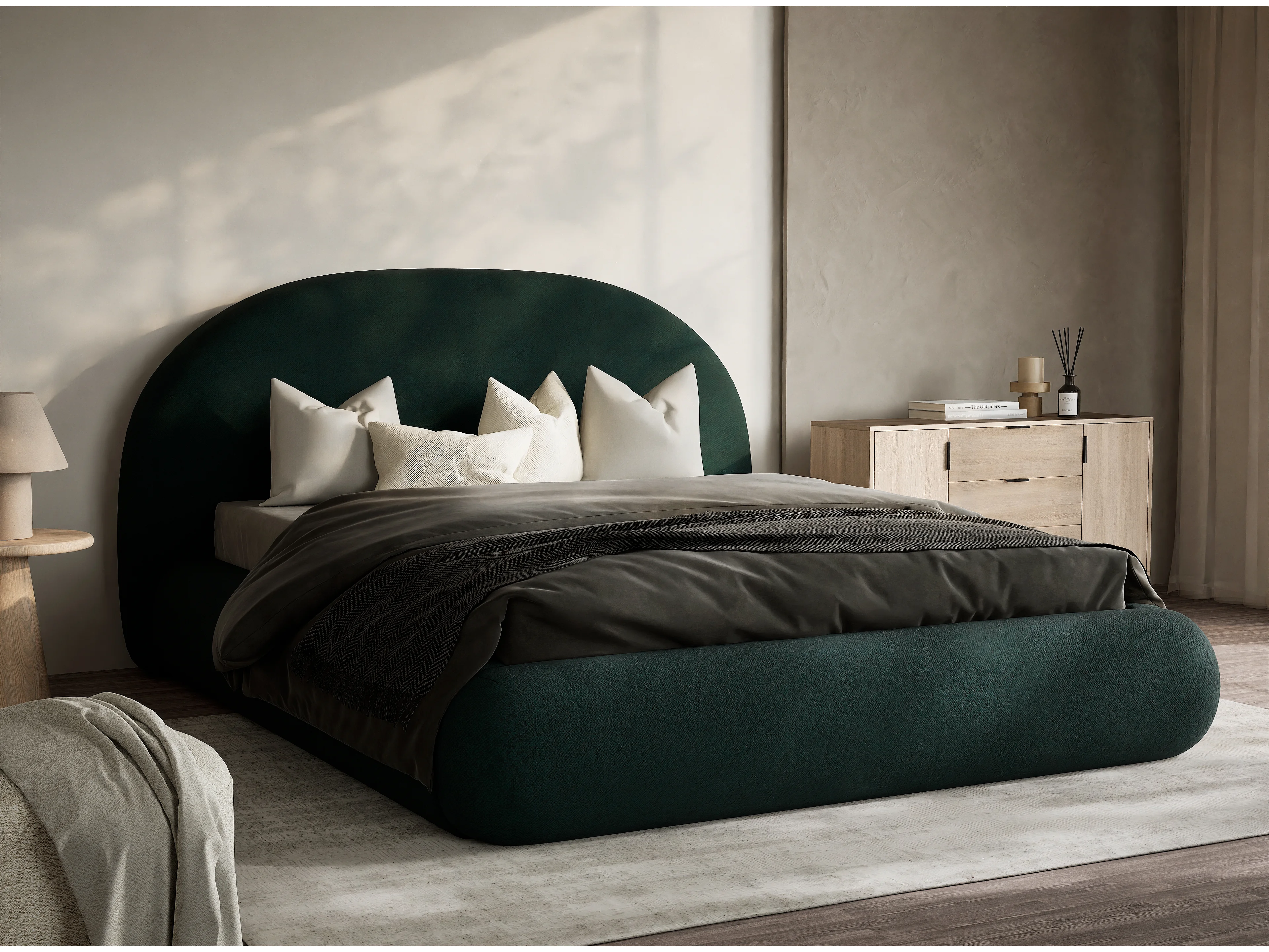 Łóżko ze skrzynią 180 x 200 cm - tkanina pleciona - ciemnozielony - MAUMERE