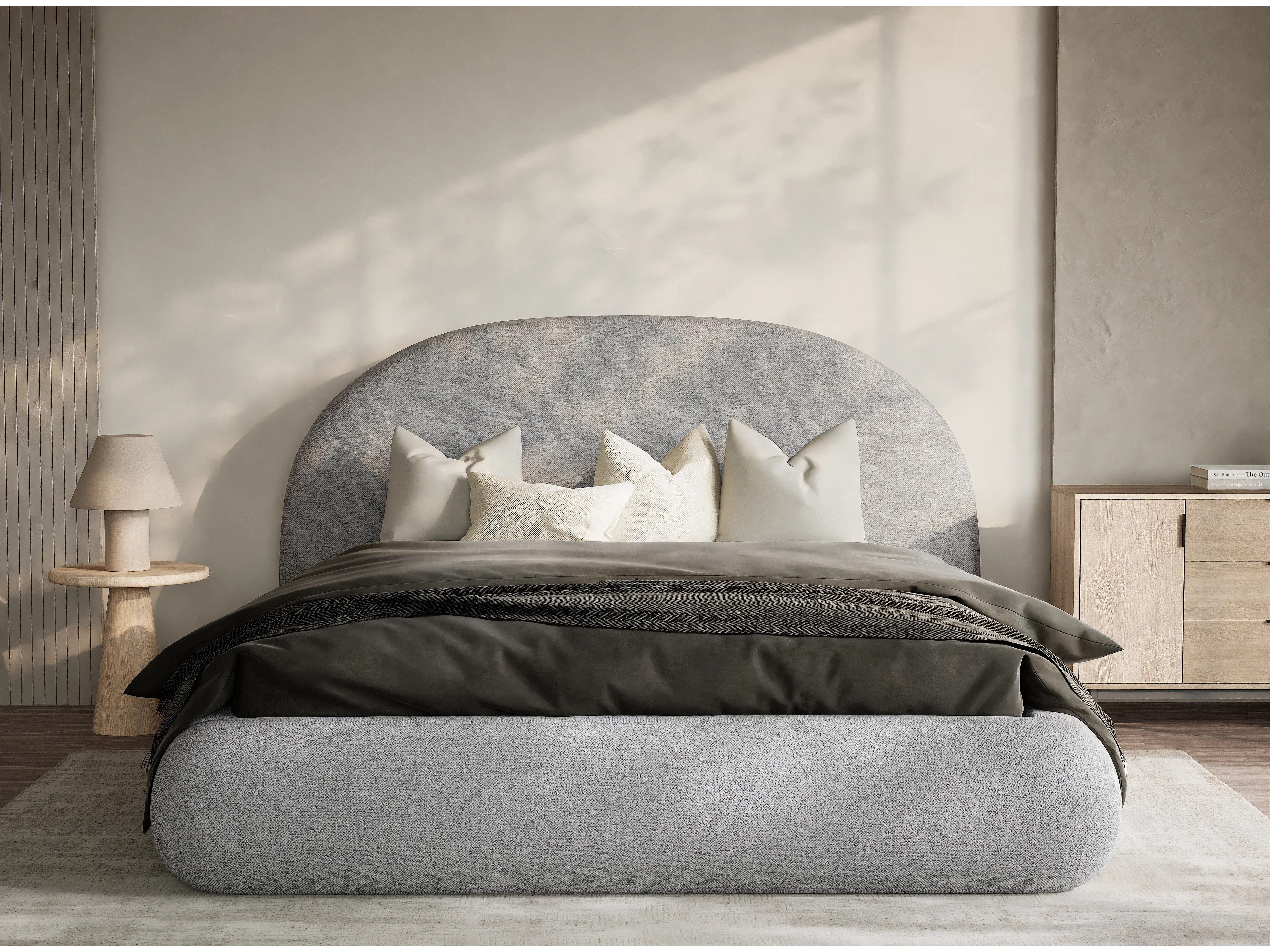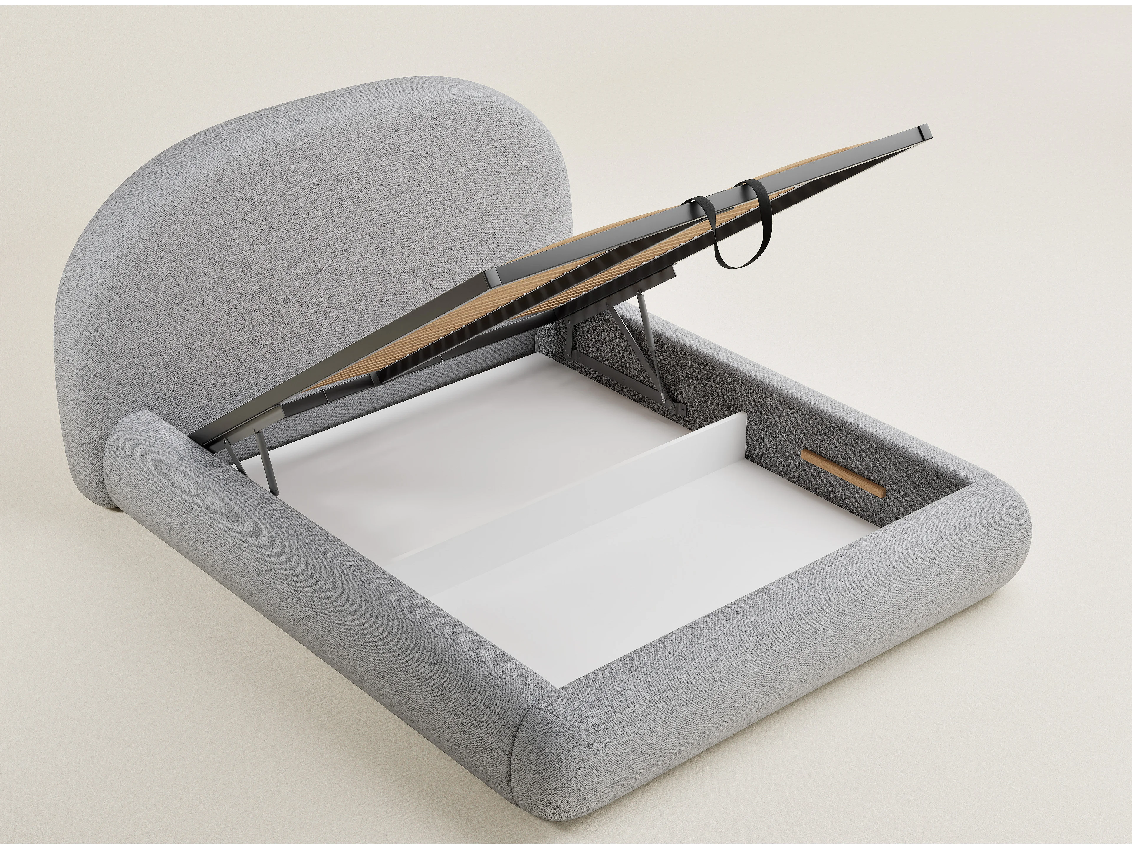 Łóżko ze skrzynią 180 x 200 cm - tkanina pleciona - jasnoszary - MAUMERE
