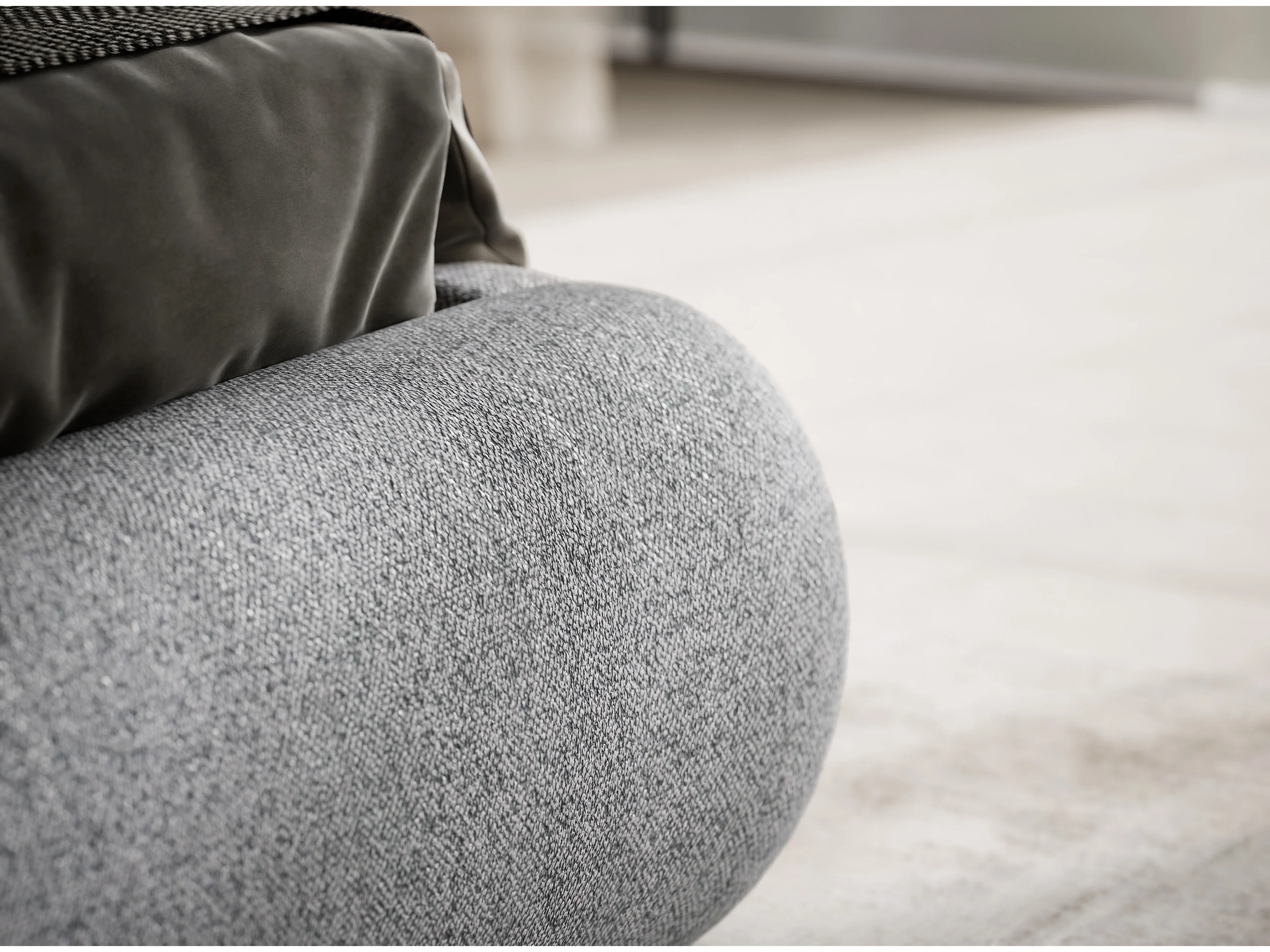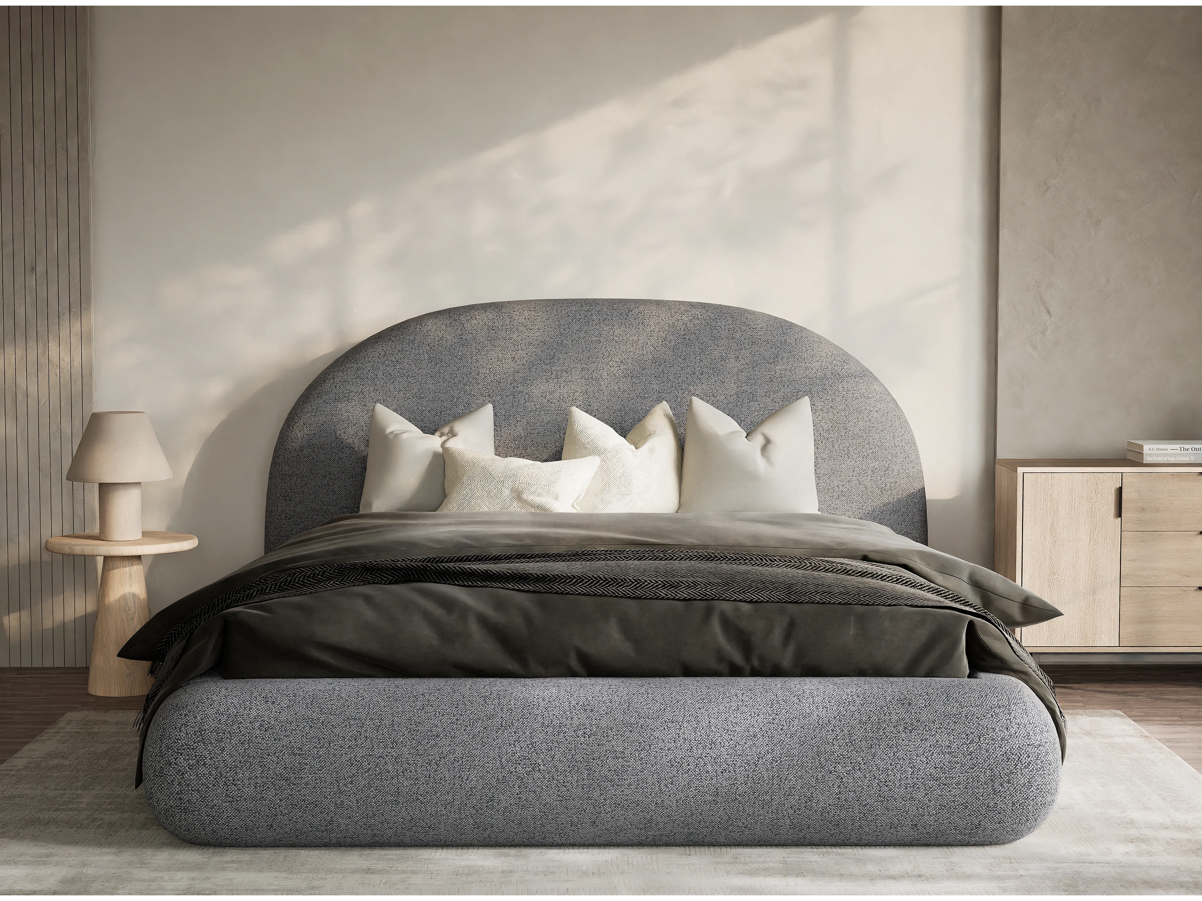 Łóżko ze skrzynią 180 x 200 cm - tkanina pleciona - szary - MAUMERE