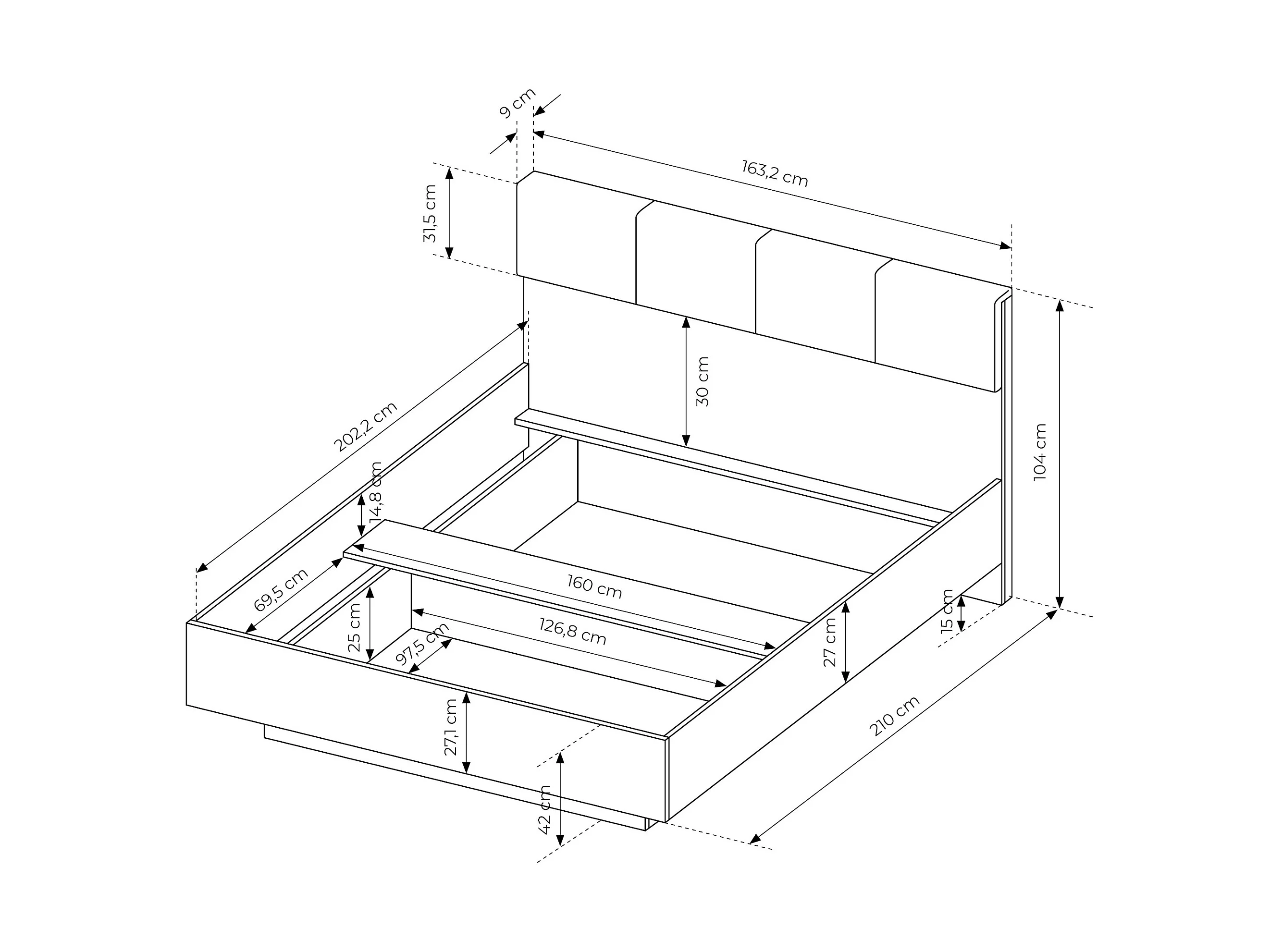 Łóżko ze skrzynią i szafkami nocnymi 160 x 200 cm - Z diodami LED - Kolory: Naturalny i czarny - ARIADA