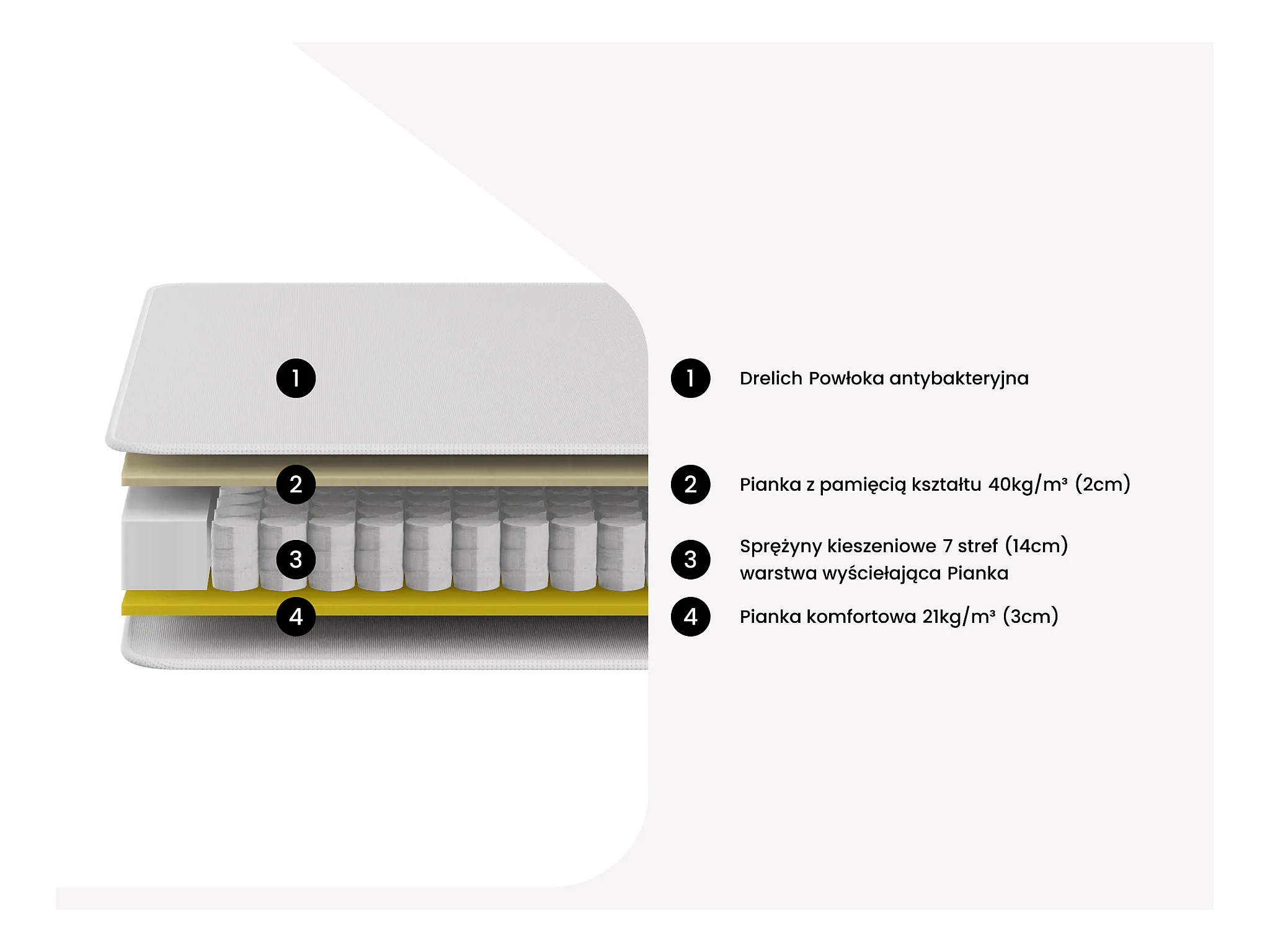 Materac 180 x 200 cm z 7-strefowymi sprężynami kieszeniowymi i pianką memory o grubości 22 cm – LUREAN od YSMÉE
