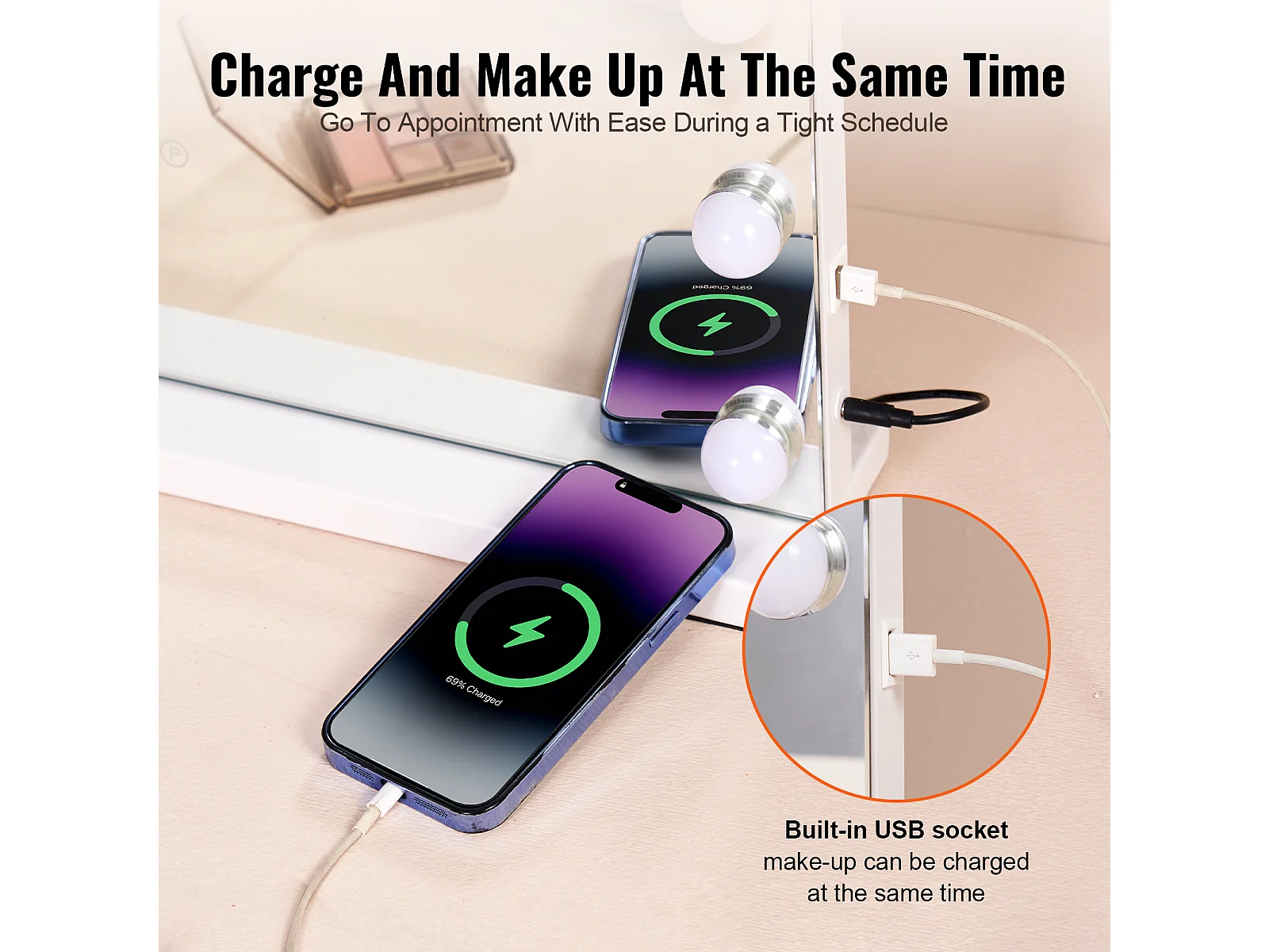 Lustro do Makijażu SucceBuy 58 x 46 cm, Biały, Zerkalo Hołenderskiego stylu Hollywood z Lampami