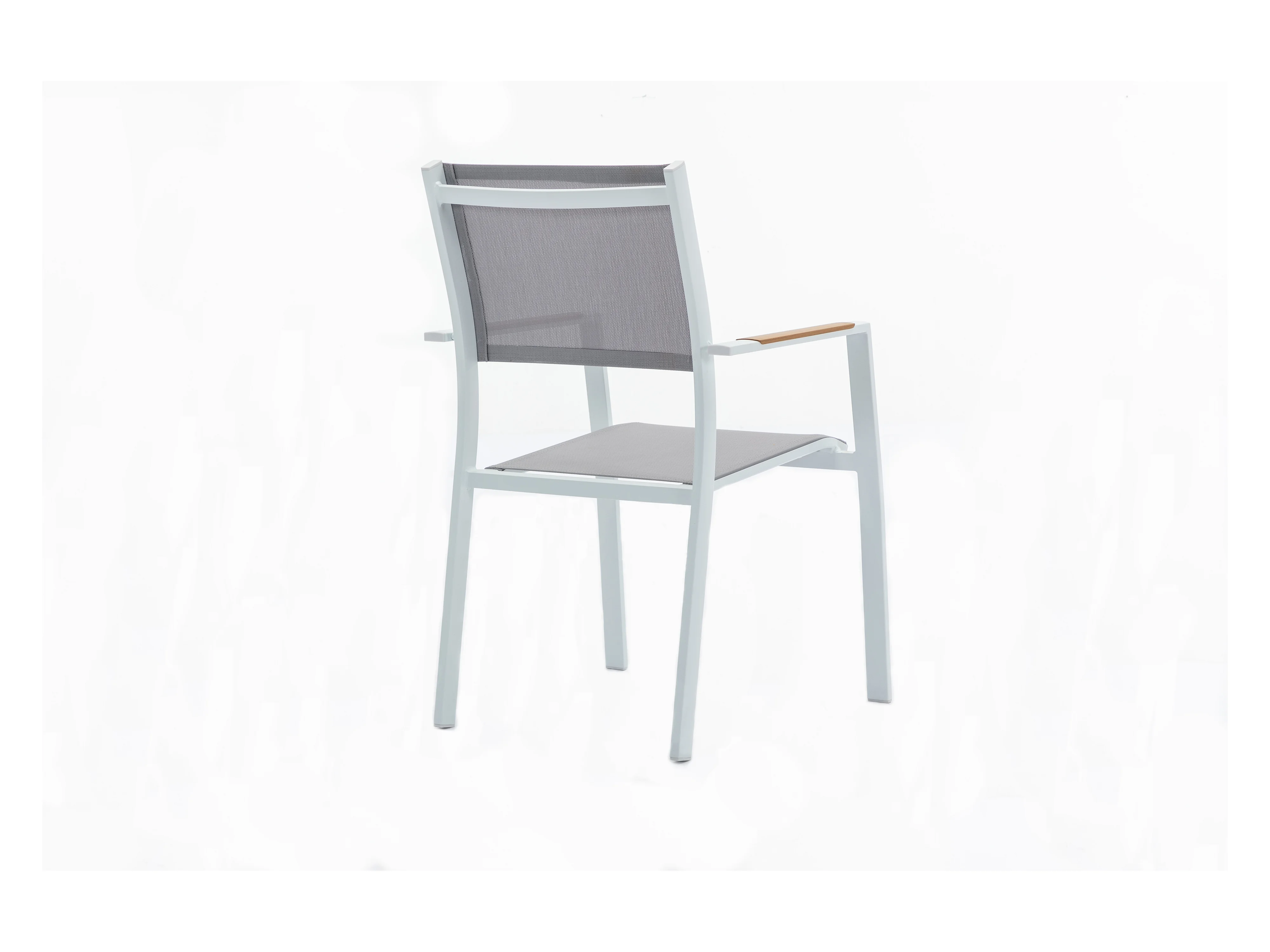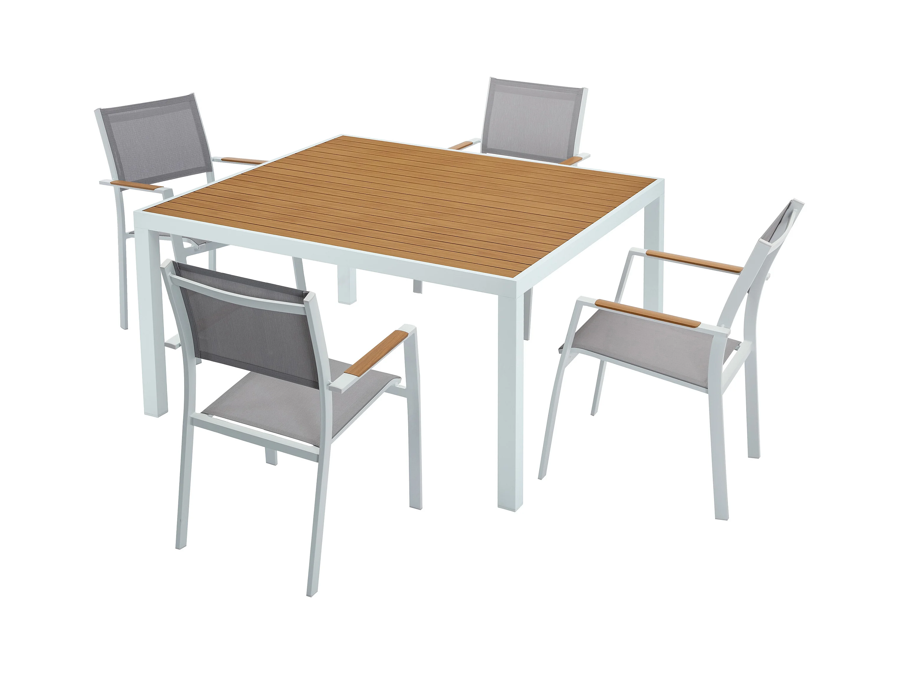 Zestaw mebli ogrodowych jadalnianych z aluminium: kwadratowy stół dł. 140 cm i 4 sztaplowane fotele - Naturalny jasny i szary - MACILA marki MYLIA
