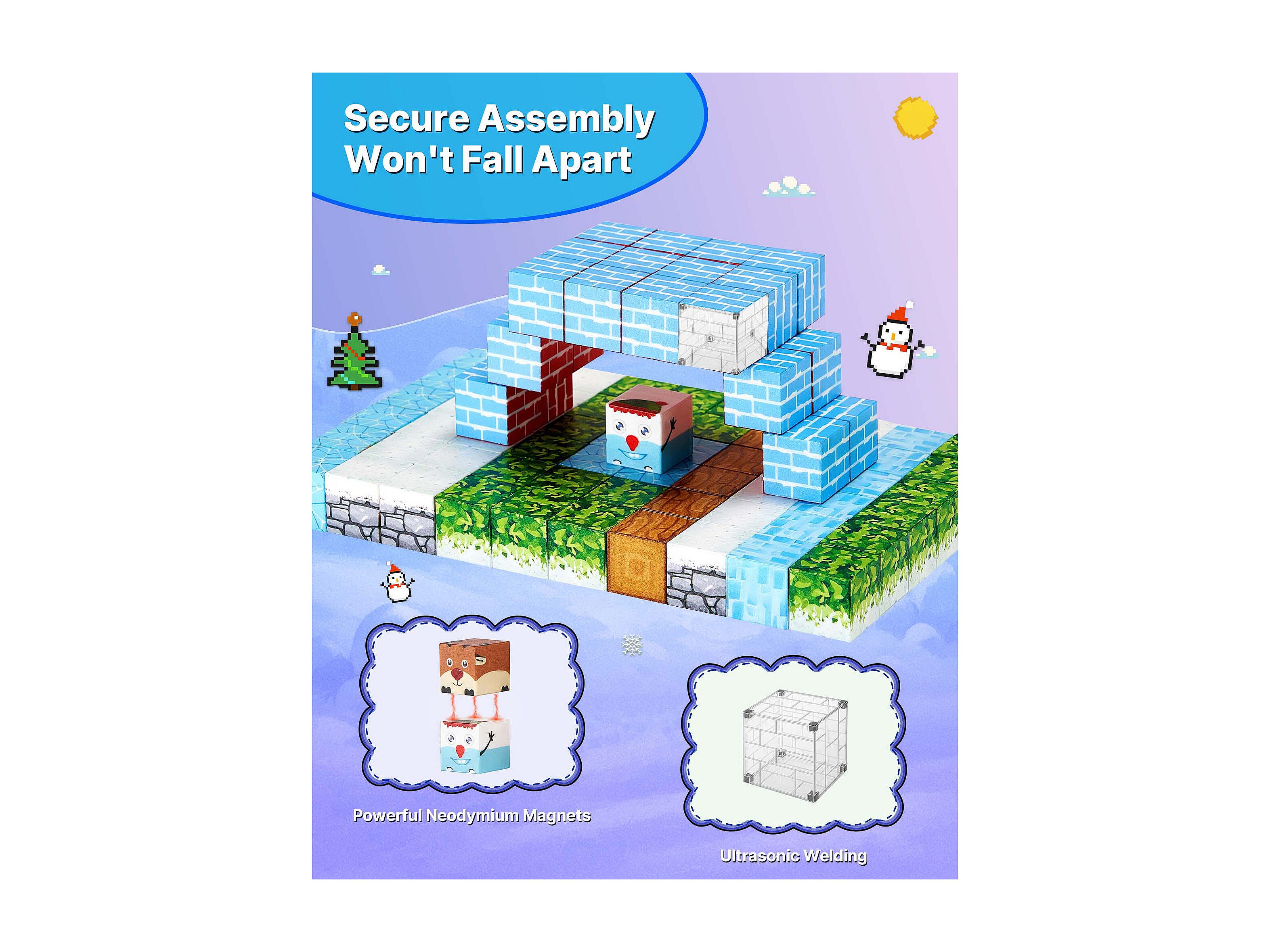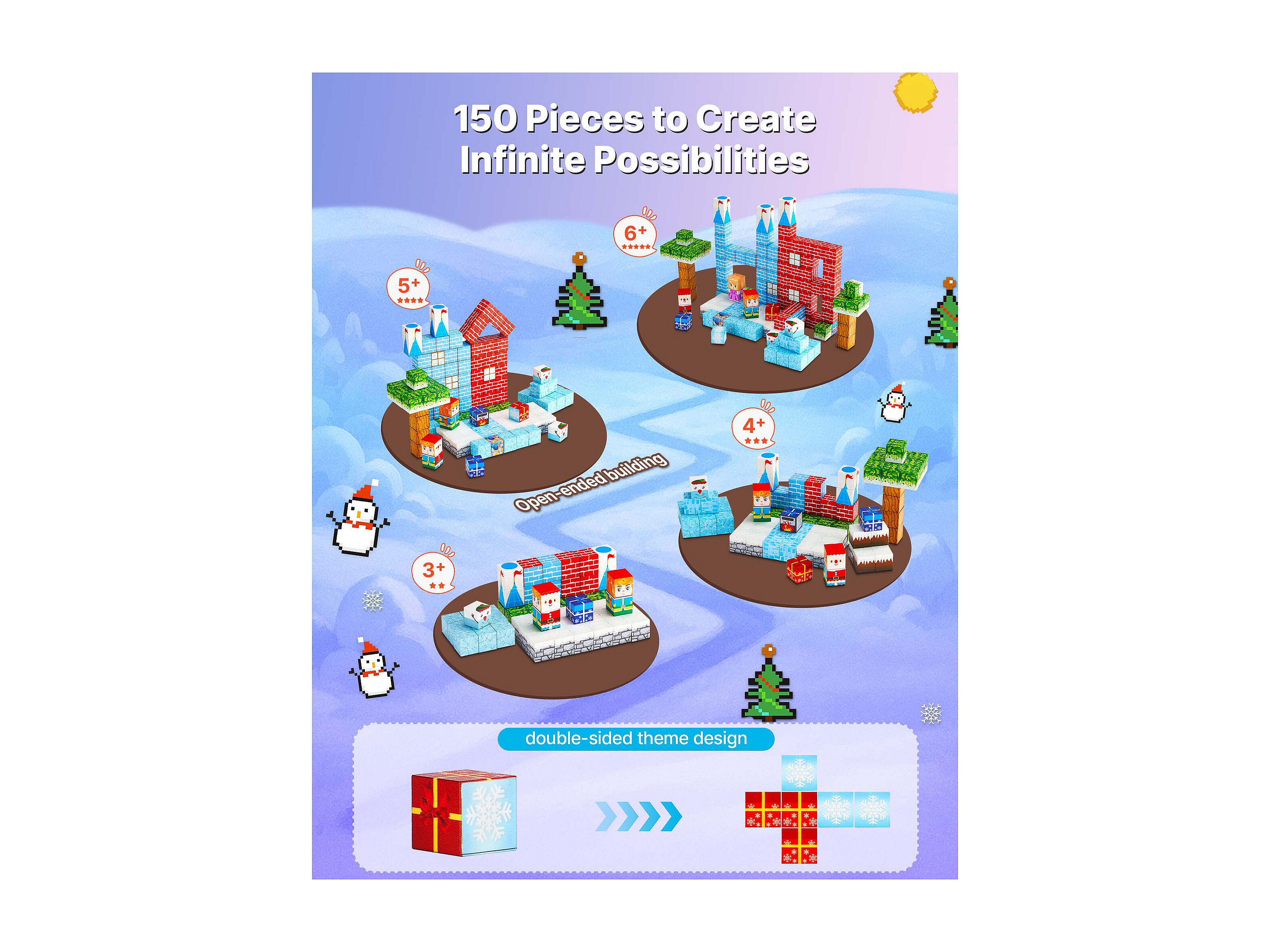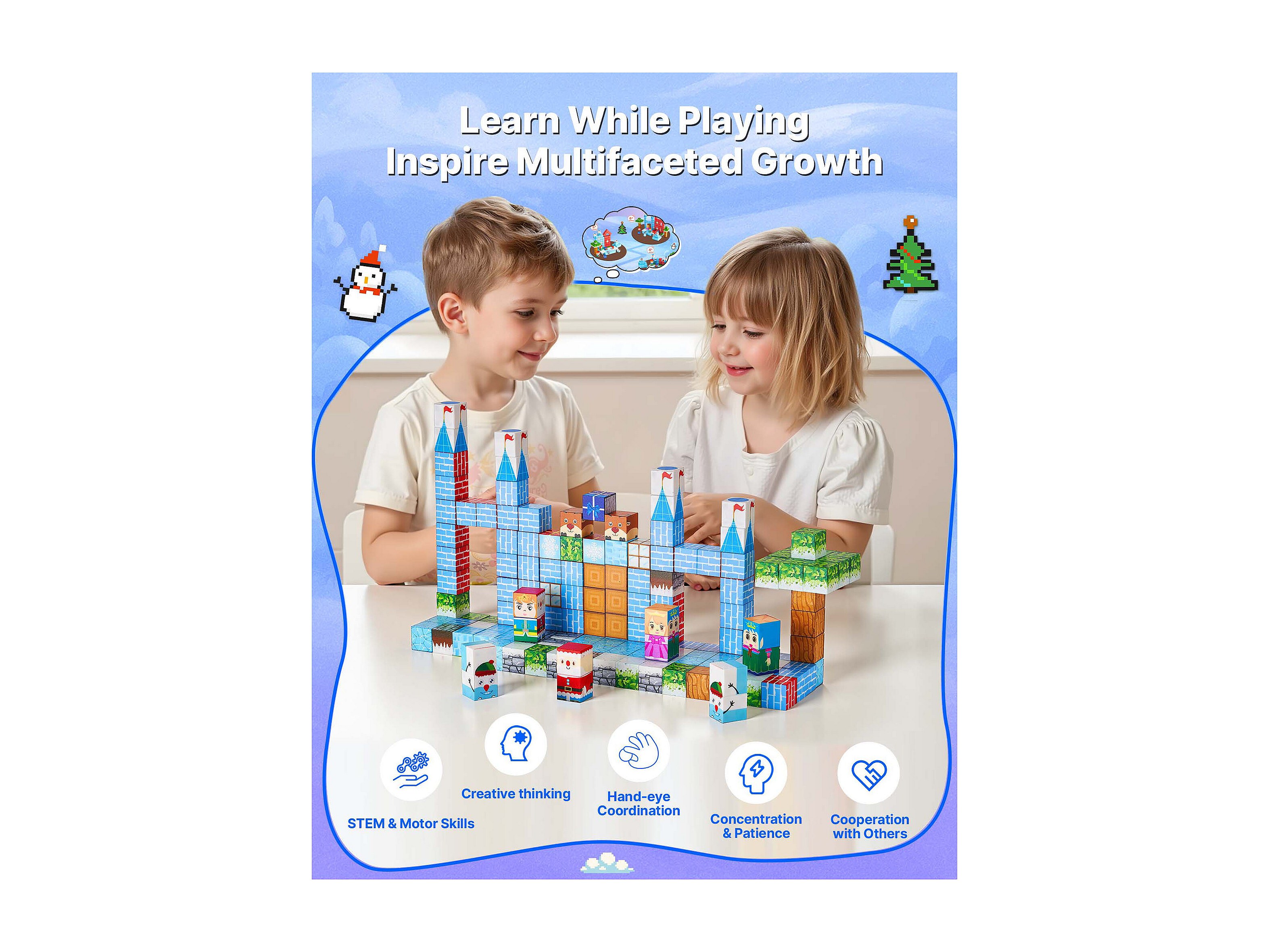Magnetyczne Klocki dla Dzieci SucceBuy, 150 Sztuk Magnetycznych Klocków, Zamek Lodowy, na Urodziny, dla Chłopców i Dziewczynek w Wieku od 3 Lat