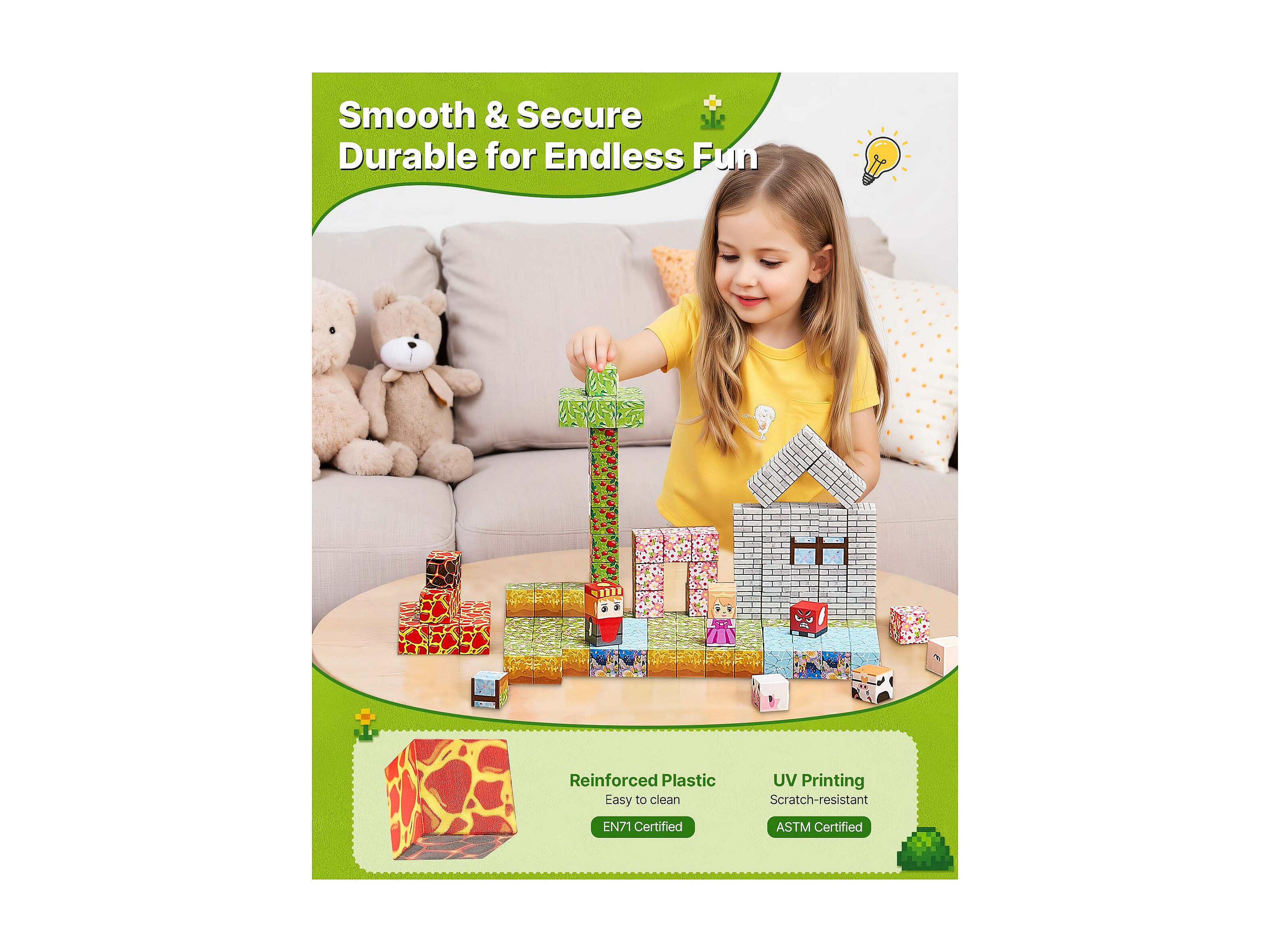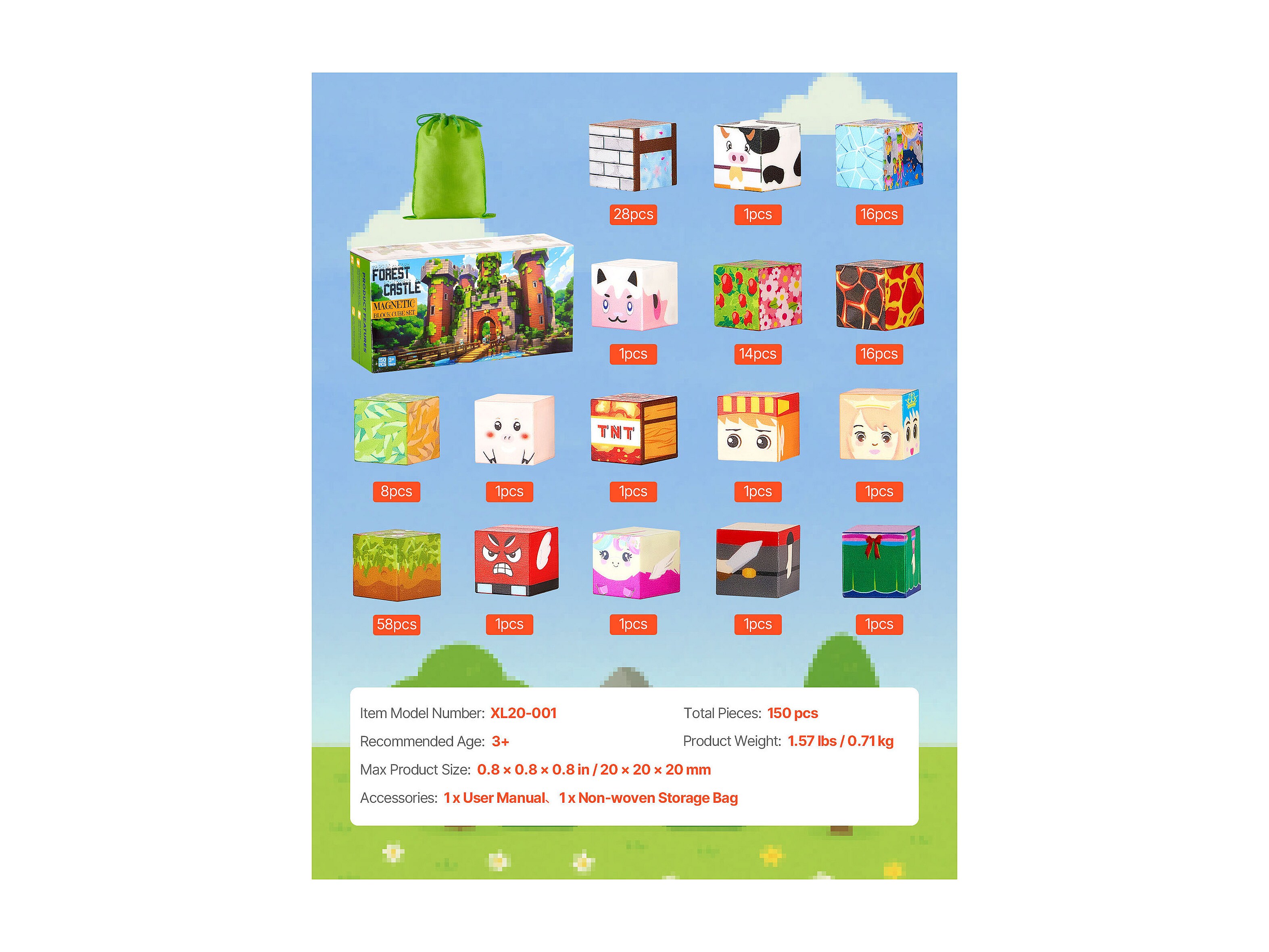 Magnetyczne Klocki dla Dzieci SucceBuy, 150 Sztuk Magnetycznych Klocków, Zamek w Lesie, na Urodziny, dla Chłopców i Dziewczynek w Wieku od 3 Lat