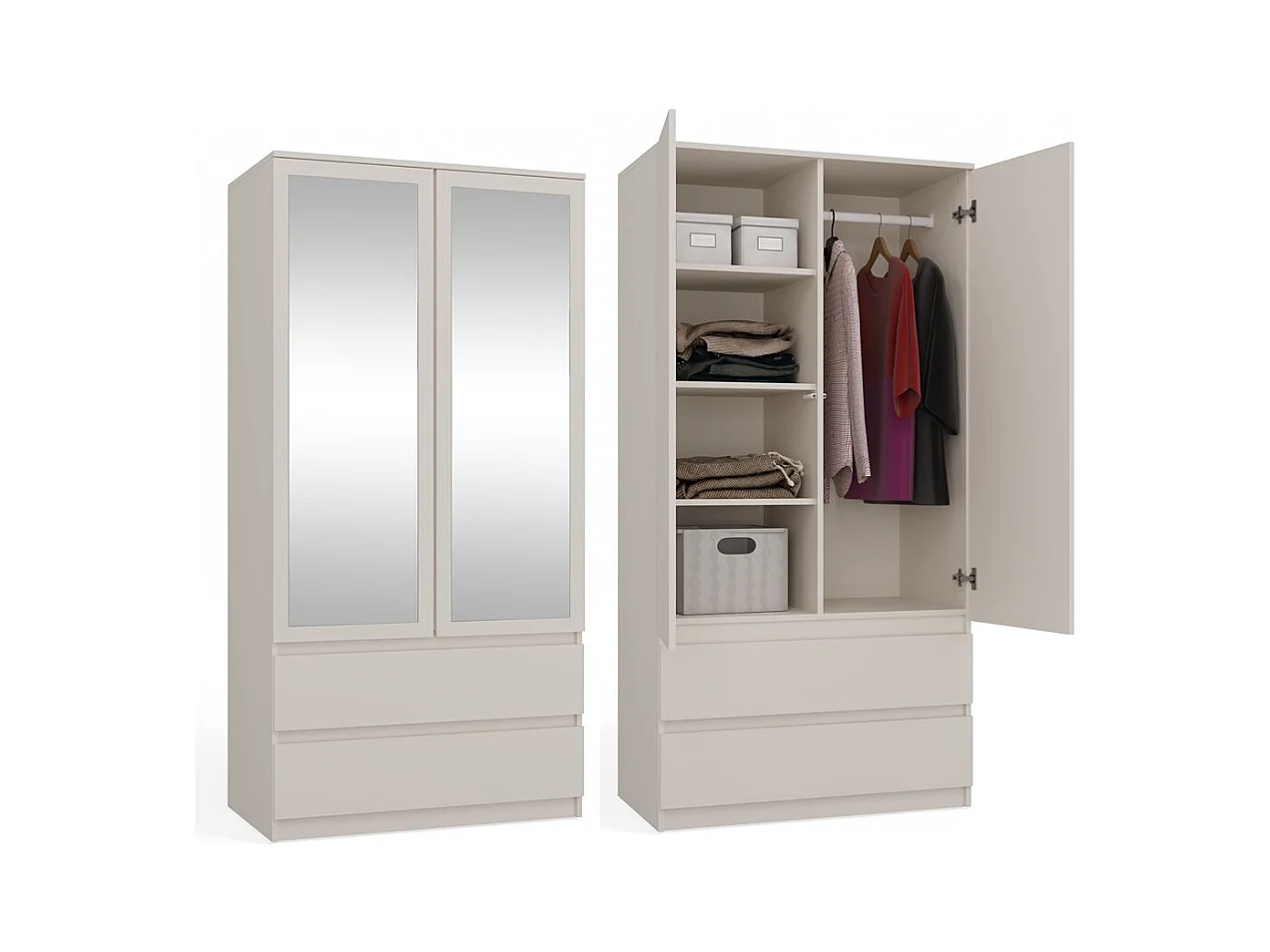 Malwa Szafa SS-90L | Kaszmir | 90x50x180 cm| Szafa Lustra 2 Szuflady