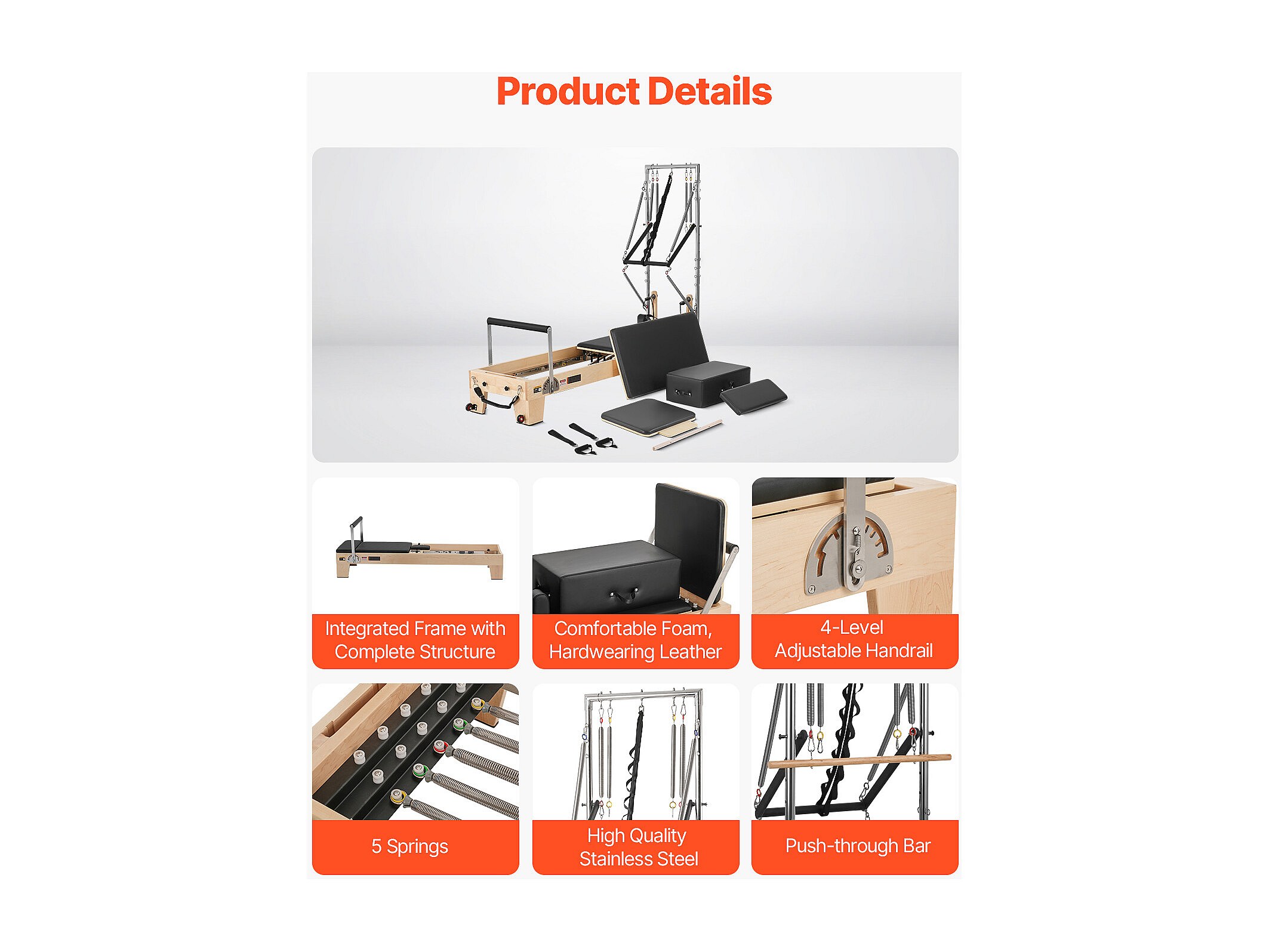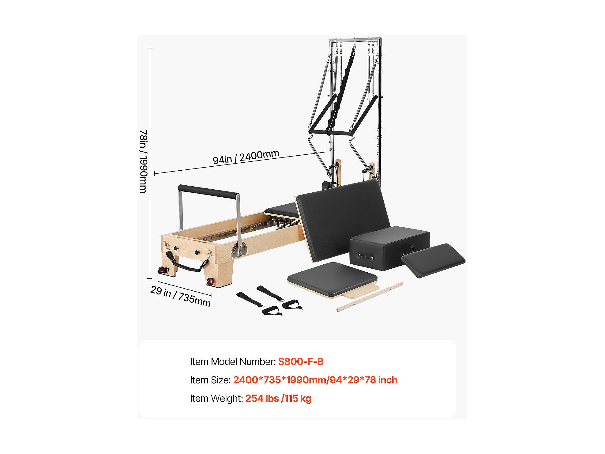 Maszyna do Pilatesu SucceBuy Pilates Reformer Drewniana Maszyna do Pilatesa z Oporem do Siłowni Domowej