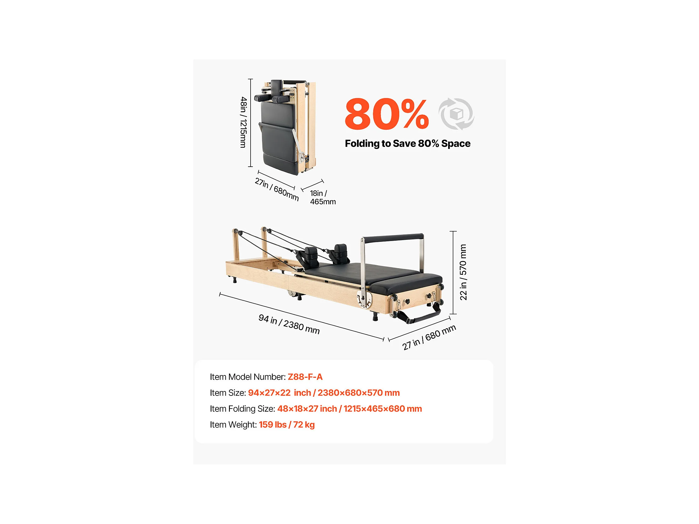 Maszyna do Pilatesu SucceBuy Pilates Reformer, Składany, Drewniany Sprzęt do Pilatesu do Domowej Siłowni