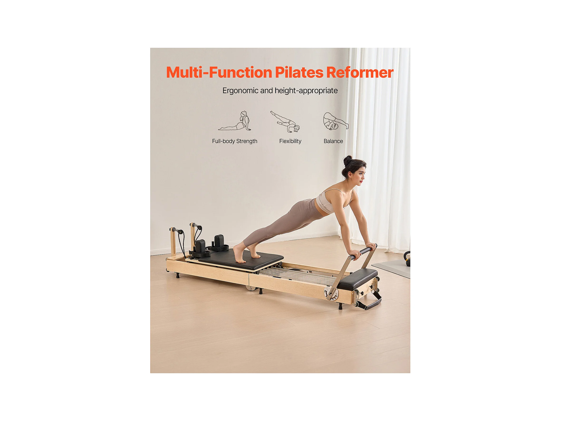 Maszyna do Pilatesu SucceBuy Pilates Reformer, Drewniany Sprzęt do Jogi do Domowej Siłowni