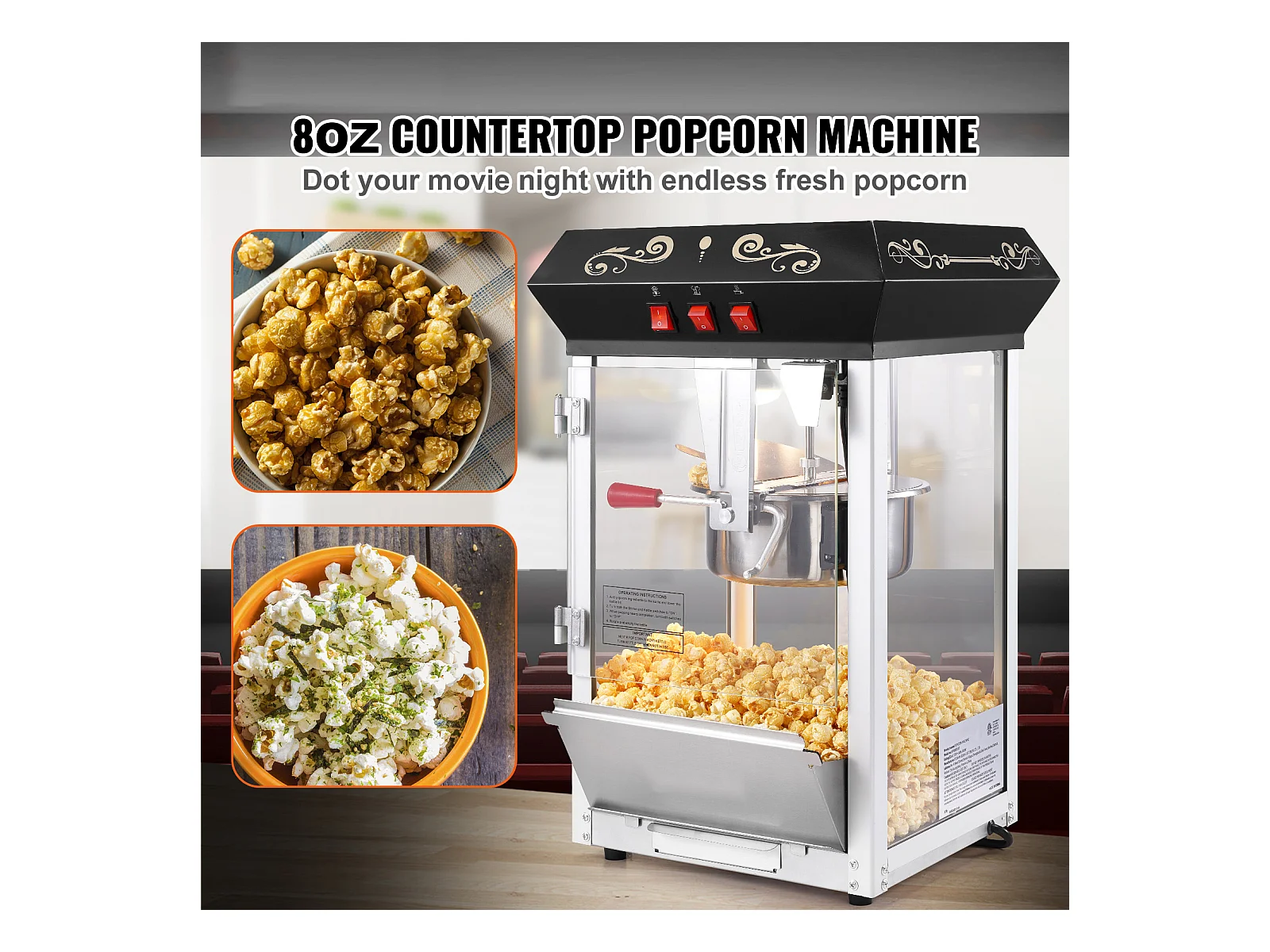 Maszyna Do Popcornu SucceBuy 850 W, Czajnik 227 ml, 48 Kubków na Partię, Maszyna Stołowa ze Szkłem Hartowanym, W Zestawie 4 Łyżki, Czarny