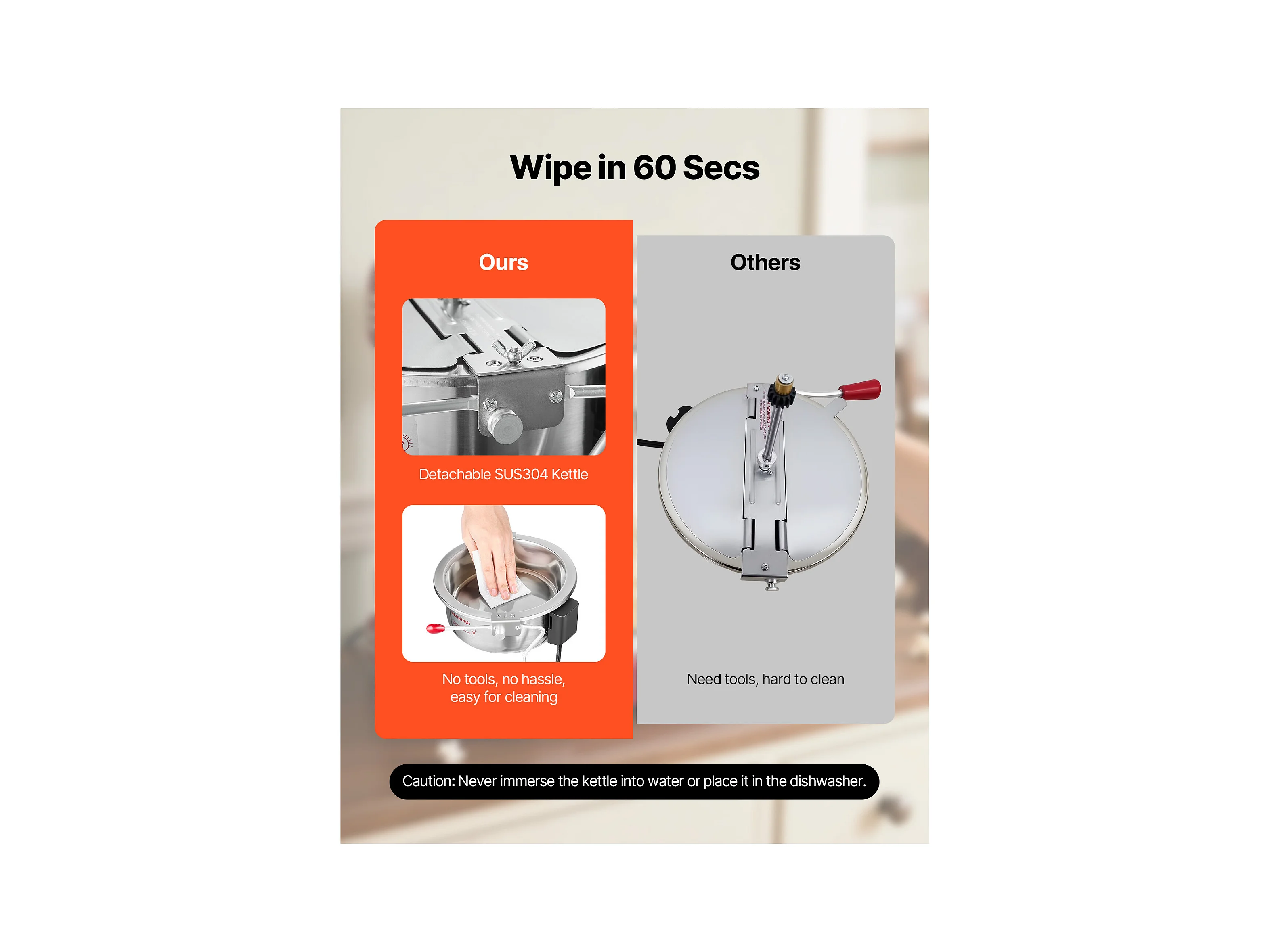 Maszyna do Popcornu SucceBuy Blatowa, Eksplodująca do Kukurydzy 800 W, Duża Miska ze Stali Nierdzewnej 0,2 kg, 48 Filiżanek na Partię, Ściana Szklana