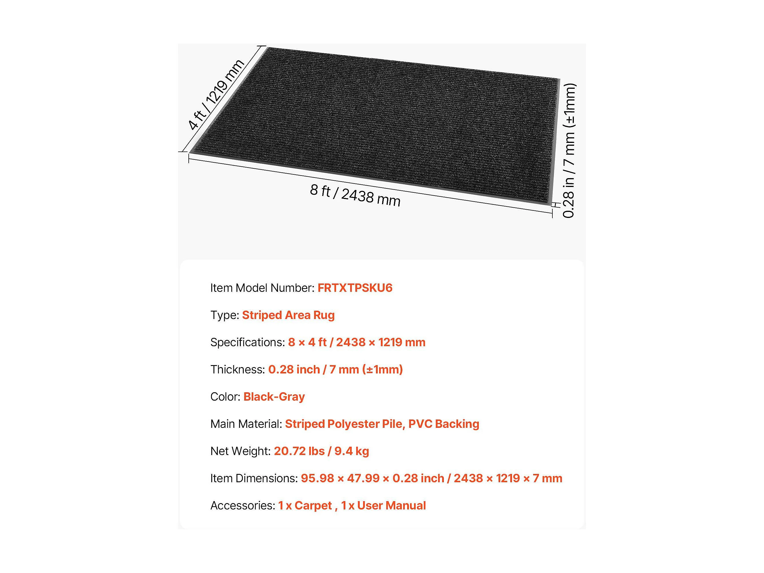 Mata Wejściowa SucceBuy, 244 x 122 cm, Wycieraczka Zewnętrzna Wewnętrzna Elegancka W Paski, z Antypoślizgowym Spodem PVC, Trwała Zmywalna, Łapie Pył, Szary